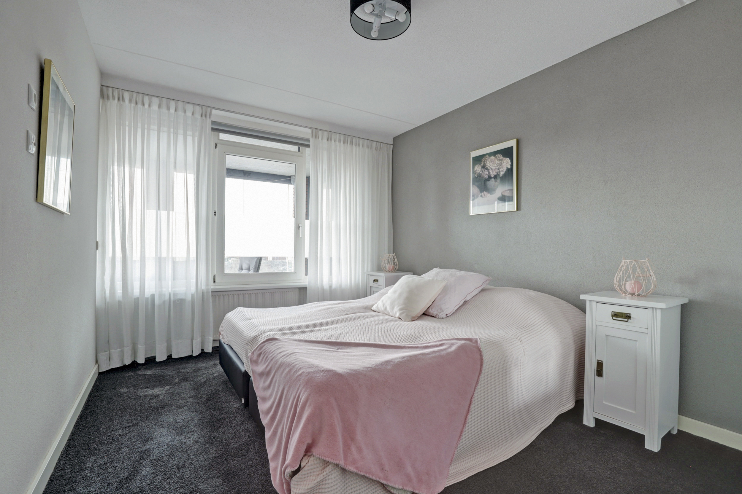 Verder beschikt het appartement over twee comfortabele slaapkamers. De hoofdslaapkamer is ruim opgezet en biedt voldoende plaats voor een tweepersoonsbed en kastruimte. De tweede slaapkamer is eveneens goed van formaat en kan uitstekend dienen als logeerkamer, werkkamer of hobbyruimte.