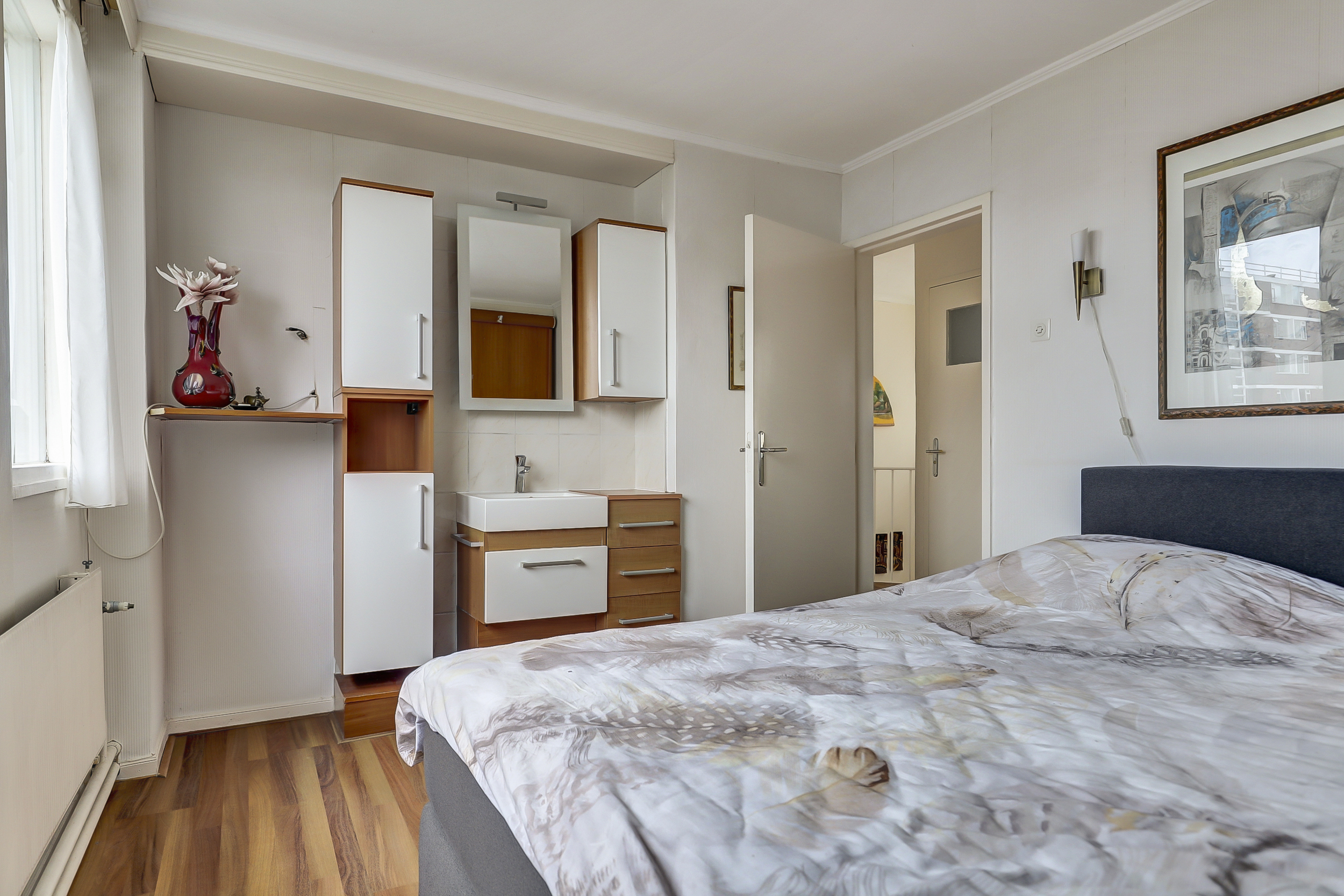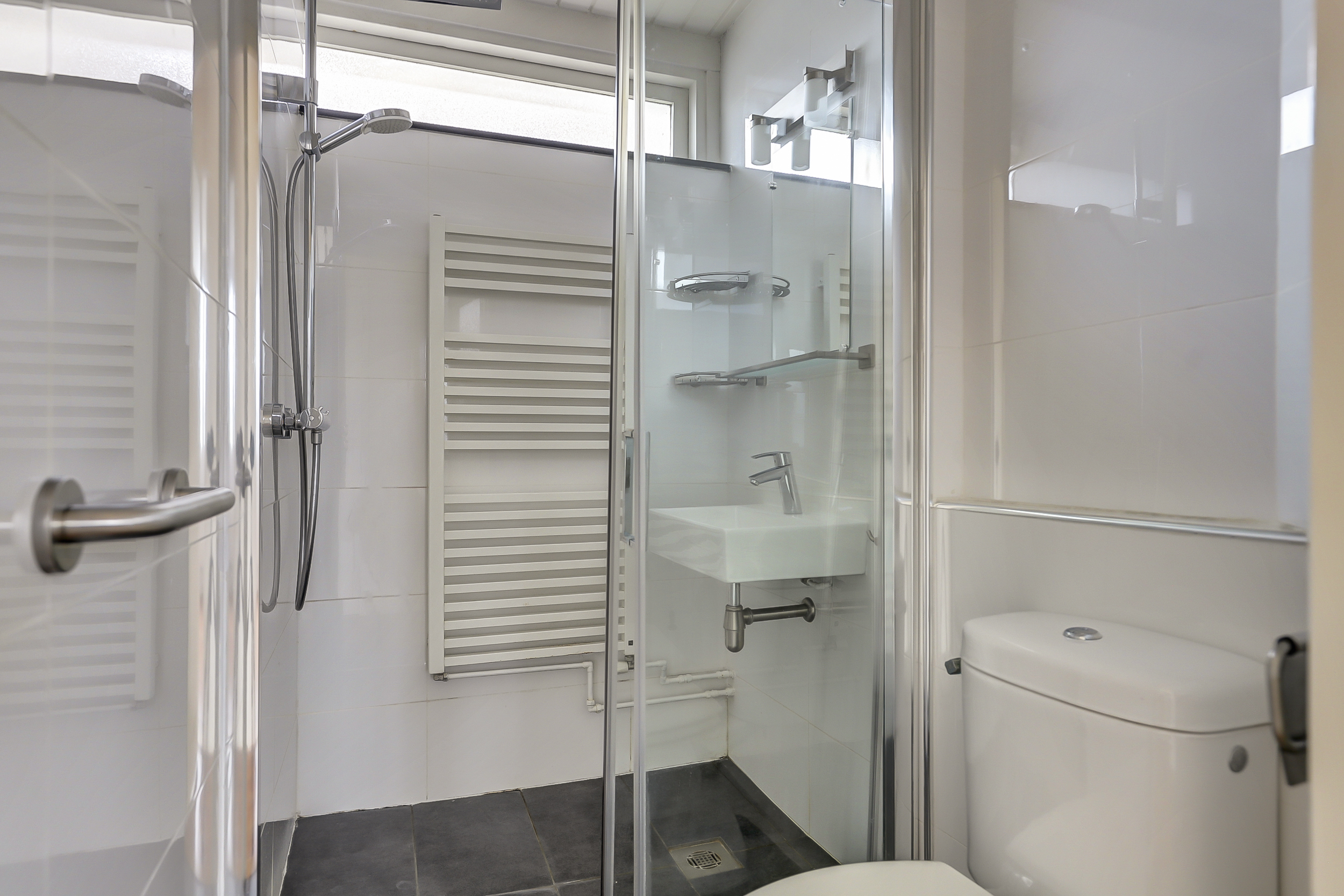 De badkamer is centraal gelegen en voorzien van een douche, wastafel en toilet. De ruimte is functioneel ingericht en beschikt over daglicht en ventilatie.