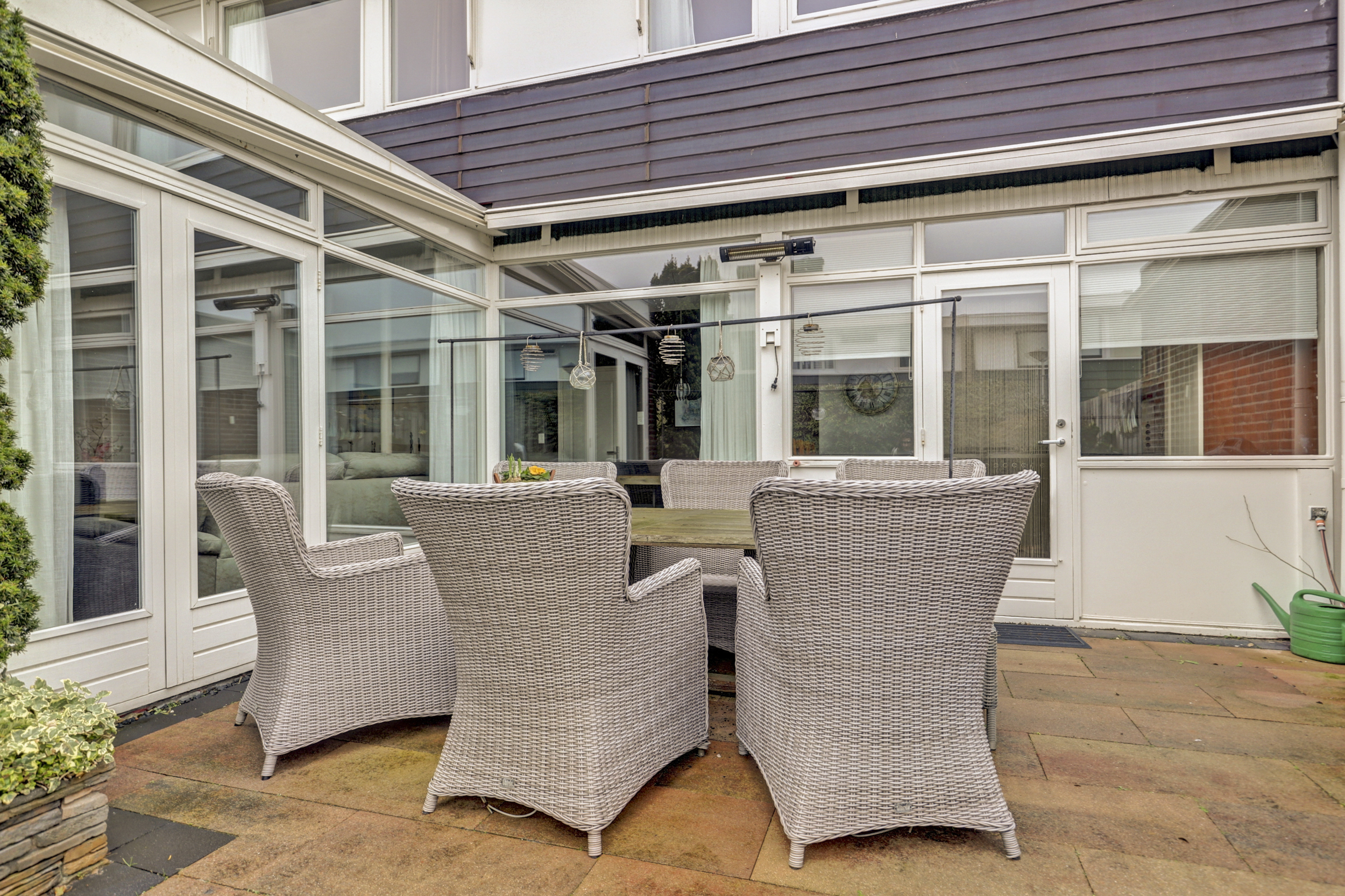 De woning beschikt over een zeer royale tuin, gelegen rondom de woning. De tuin is groen aangelegd met gazon, beplanting en meerdere terrassen, waardoor er altijd een fijne plek in de zon of schaduw te vinden is. Dankzij de ruime afmetingen biedt de tuin volop privacy en mogelijkheden voor ontspanning, spelen of tuinieren. De overkapping maakt het buitenleven compleet.
