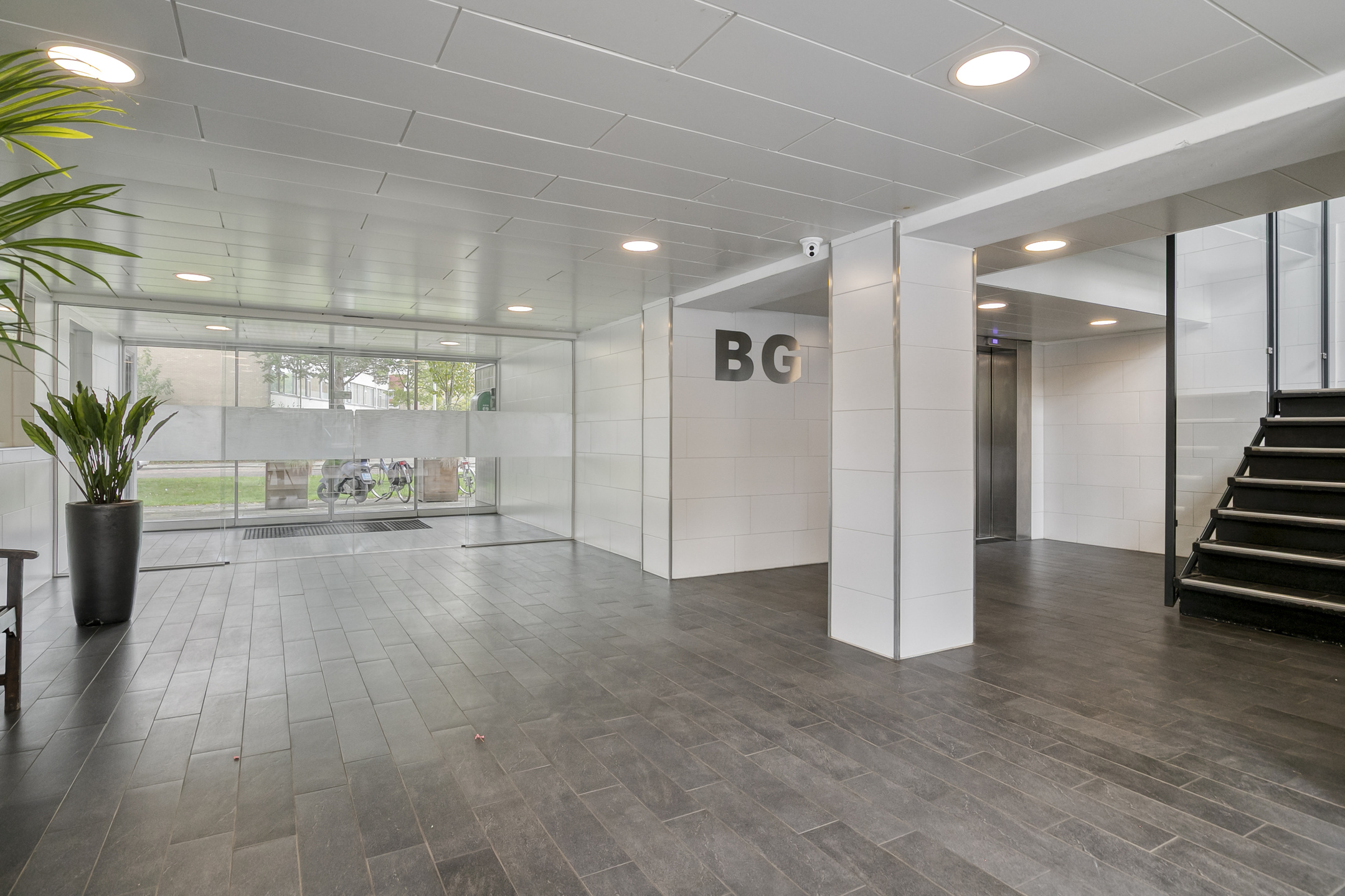 Gemeenschappelijke entree met brievenbussen, bellentableau, lift, trappenhuis en toegang tot de eigen berging.