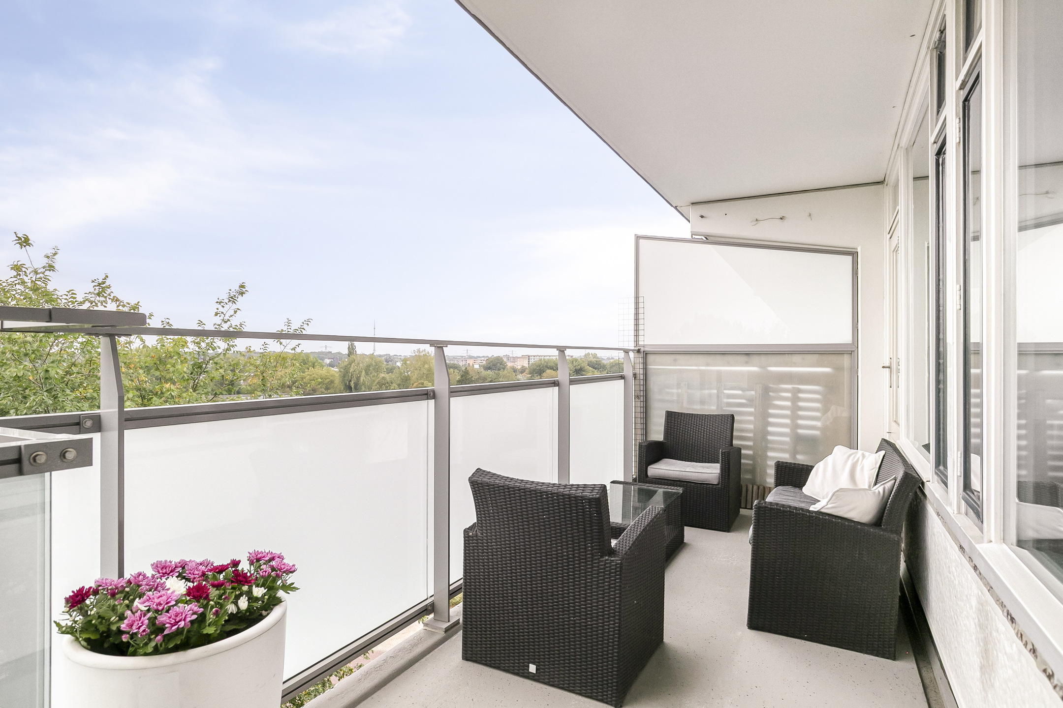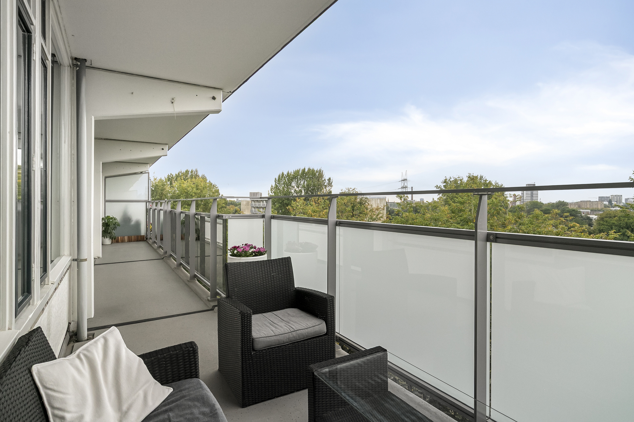 Het appartement beschikt over een geweldig royaal en zonnig balkon gelegen op het zuidwesten met fantastisch uitzicht over de omgeving. Het balkon strekt zich uit over de volledige lengte van de woning en beslaat hierdoor een oppervlakte van maar liefst circa 25m². Hierdoor heeft u alle mogelijkheden voor het creëren van meerdere zitjes of het plaatsen van een eettafel. Dankzij het vele groen rondom het complex ervaart u hier zeer veel rust en privacy.