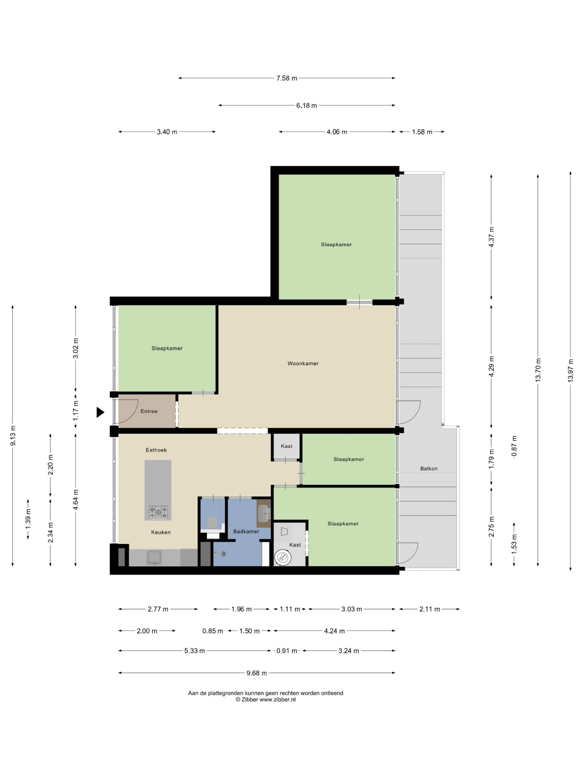 – riant zonnig balkon op het zuidwesten, gelegen over de gehele breedte van de woning;