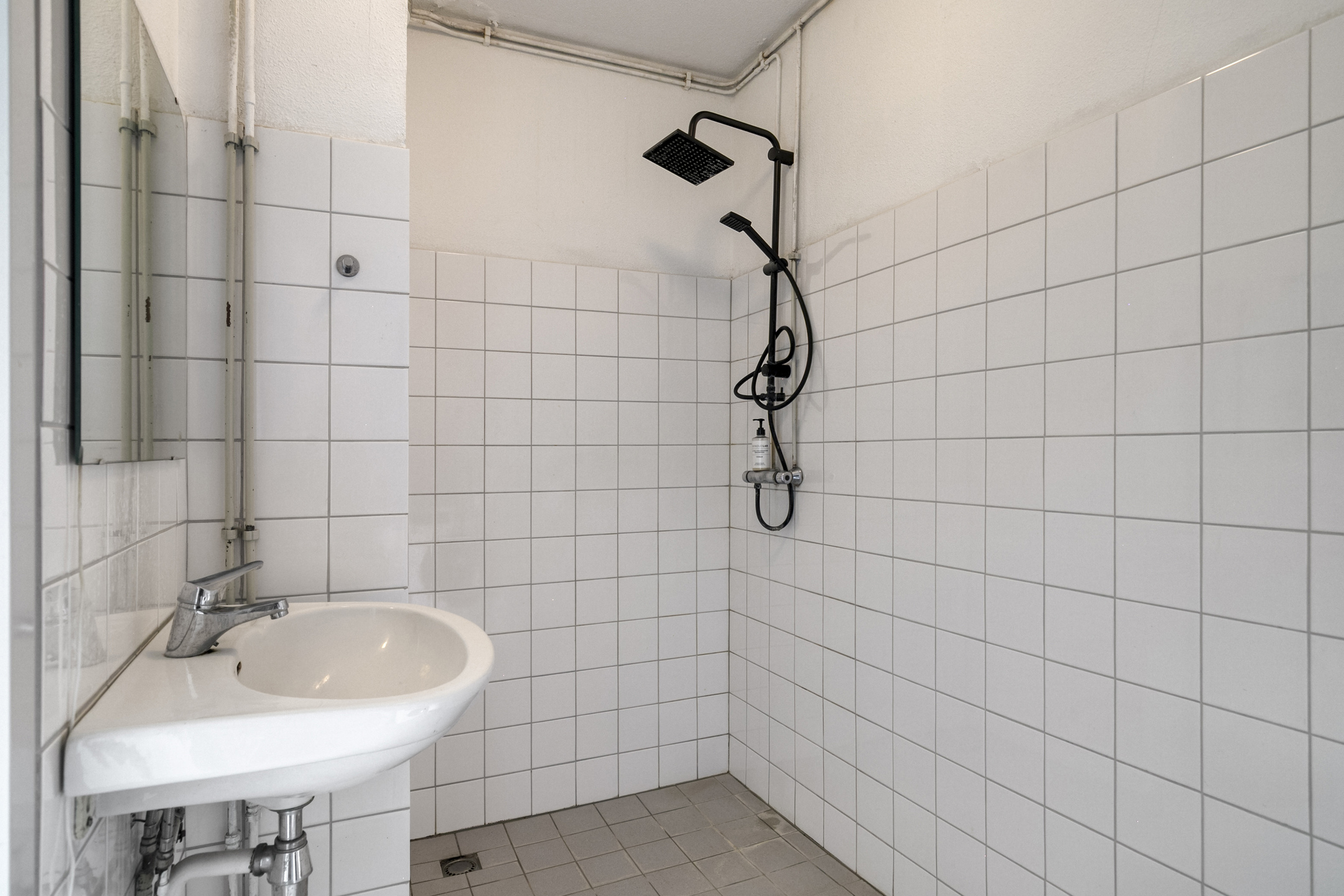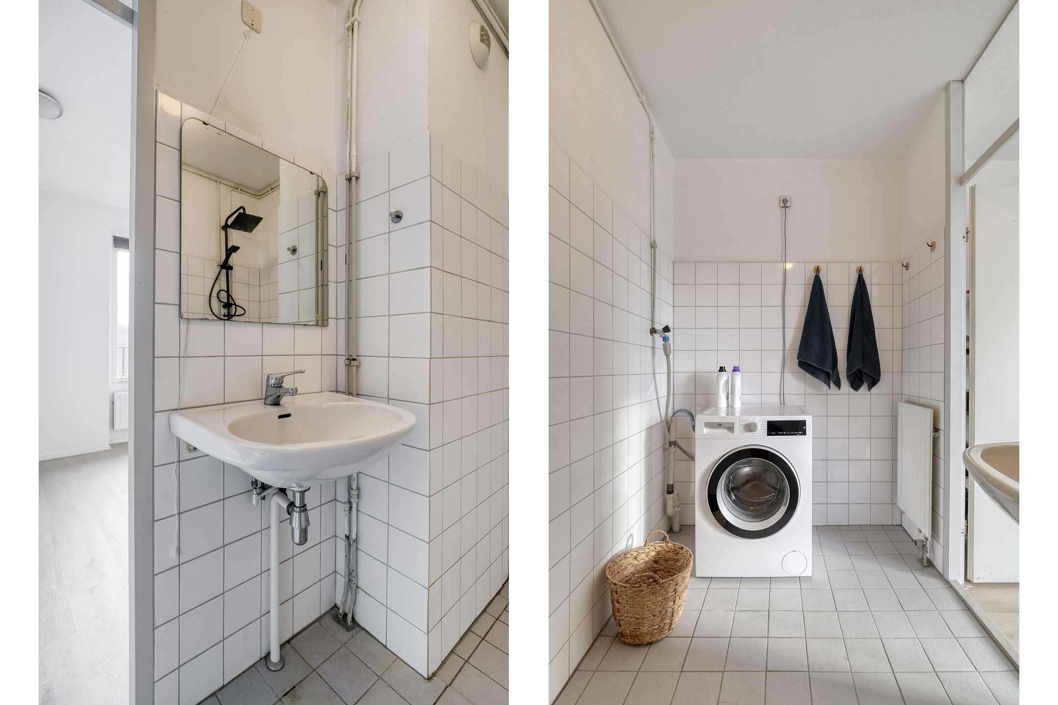 – badkamer met douche, wastafel op opstelplaats wasmachine;