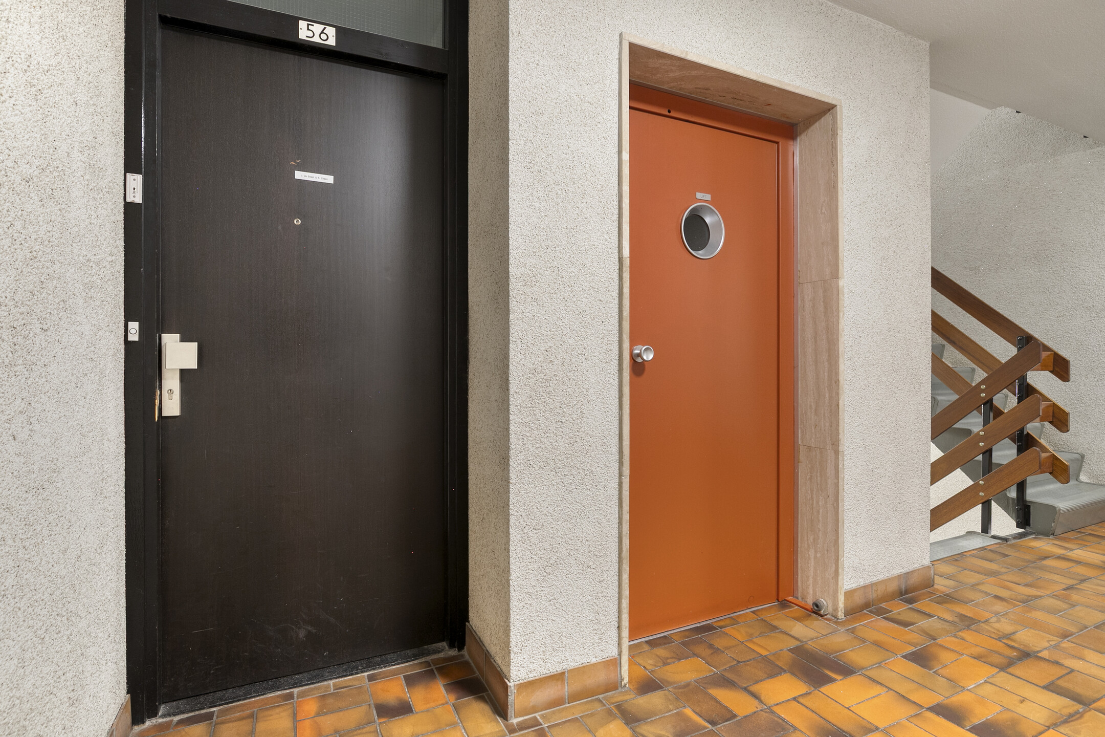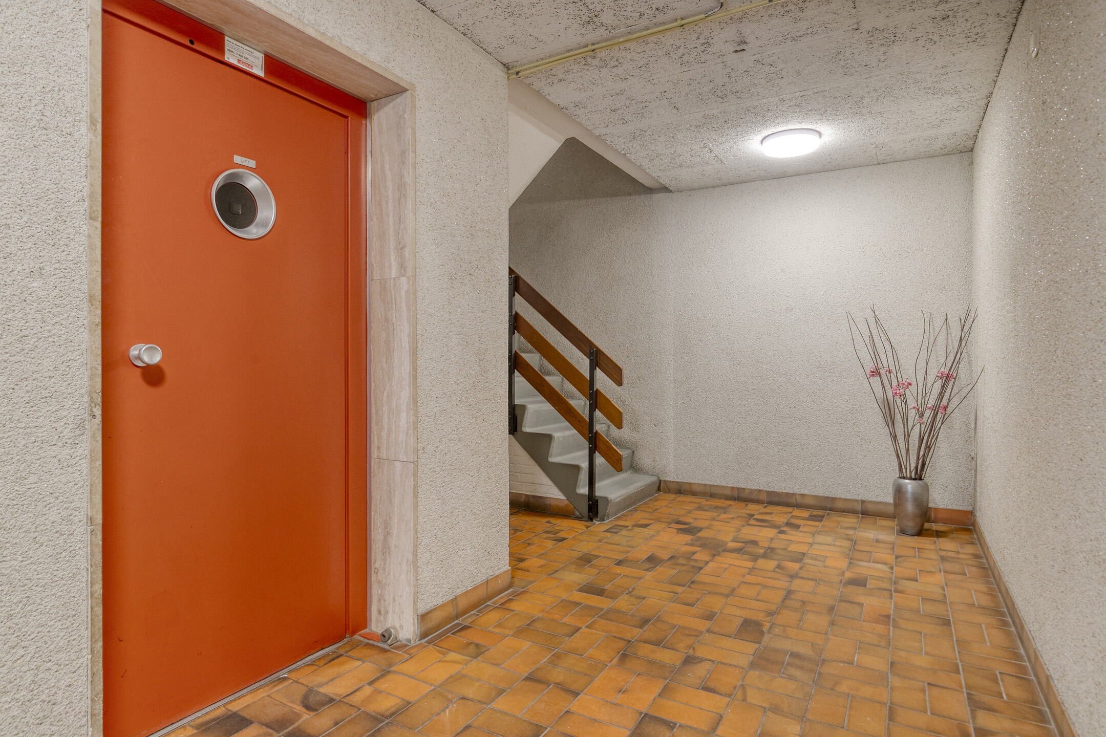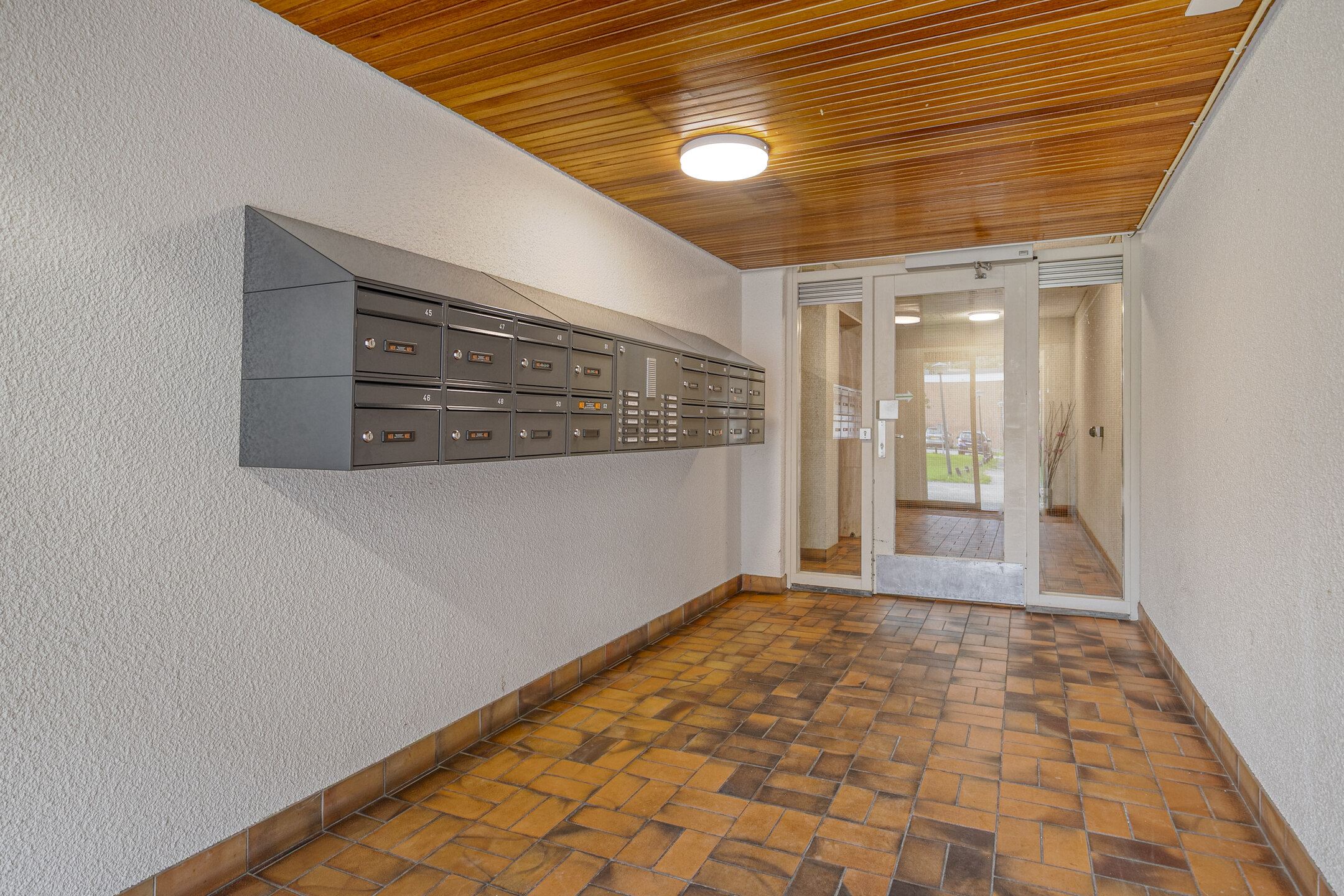 Gemeenschappelijke entree met bellentableau, lift, trappenhuis en toegang tot de bergingen. U bereikt dit appartement op de derde verdieping.