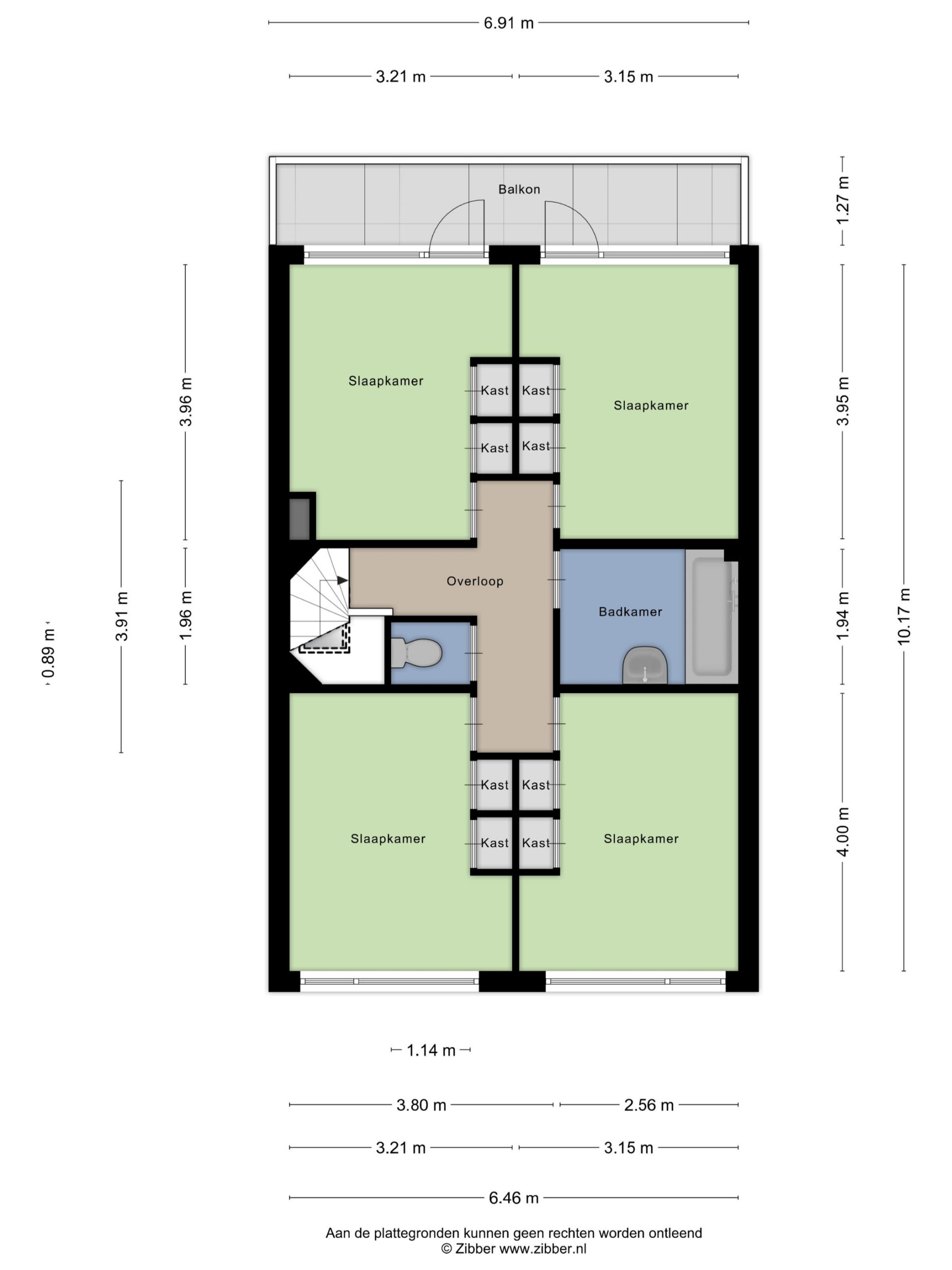 Overloop, apart toilet, badkamer met ligbad, wastafel en wasmachineaansluiting, 2 slaapkamers aan de voorzijde van de woning en nog eens 2 slaapkamers aan de achterzijde van de woning met toegang tot het balkon op het westen. Kortom veel ruimte en mogelijkheden!