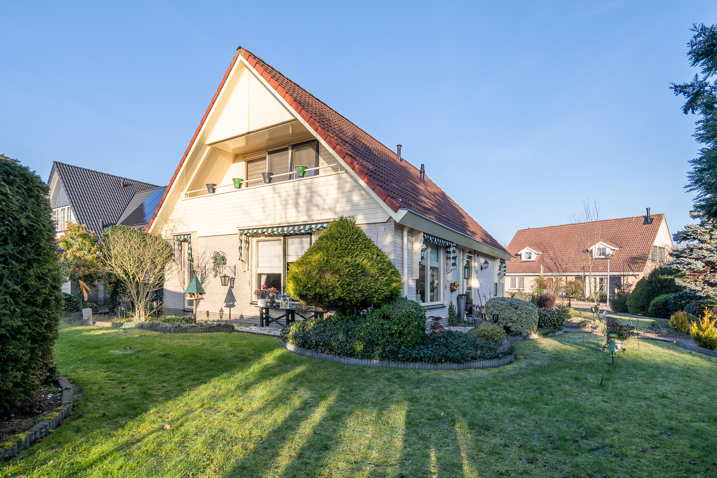 Deze vrijstaande woning in de Kruidenwijk combineert ruimte, rust en een prettige ligging met alle dagelijkse voorzieningen en natuur letterlijk om de hoek. Op loopafstand vind je rivier de Regge en het uitgestrekte natuurgebied het Wierdense Veld, ideaal voor een ochtendwandeling, een rondje hardlopen of gewoon om even te genieten van het buiten zijn. Binnen voelt het ruim en verzorgd aan. De L-vormige woonkamer met schuifpui, die het terras en de tuin op een natuurlijke manier bij de leefruimte betrekt. De woonkeuken vormt een fijne plek met een complete inrichting. Praktisch gemak is er in de bijkeuken, terwijl je binnendoor zo de garage bereikt. Op de begane grond is bovendien een extra kamer aanwezig die zich perfect leent als slaapkamer of als thuiskantoor, wat het huis ook levensloopbestendig maakt. Op de eerste verdieping bevinden zich nog 3 slaapkamers en een compleet ingerichte badkamer. Via een vlizotrap is de bergzolder bereikbaar, ideaal voor extra opslag. Rondom de woning ligt een mooi verzorgde tuin met meerdere zitplekken, een tuinhuis en een prieel. Waardoor je op elk moment van de dag een fijne plek in de zon of schaduw kunt vinden. Dankzij de goede isolatie, recente verbeteringen zoals het vernieuwde platte dak en het schilderwerk, en een energielabel B is dit een woning waar je zonder zorgen kunt gaan wonen. De locatie is ook ideaal met diverse scholen en een sporthal in de directe omgeving. Voor de dagelijkse boodschappen bevindt zich een wijkwinkelcentrum met o.a. een supermarkt op loopafstand. En het centrum van Nijverdal is eenvoudig per fiets bereikbaar en bovendien ligt de woning gunstig ten opzicht van uitvalswegen, waardoor omliggende plaatsen snel en comfortabel te bereiken zijn.