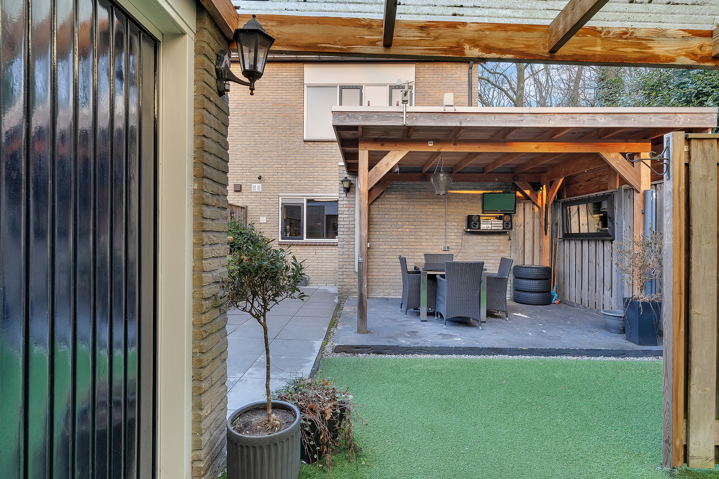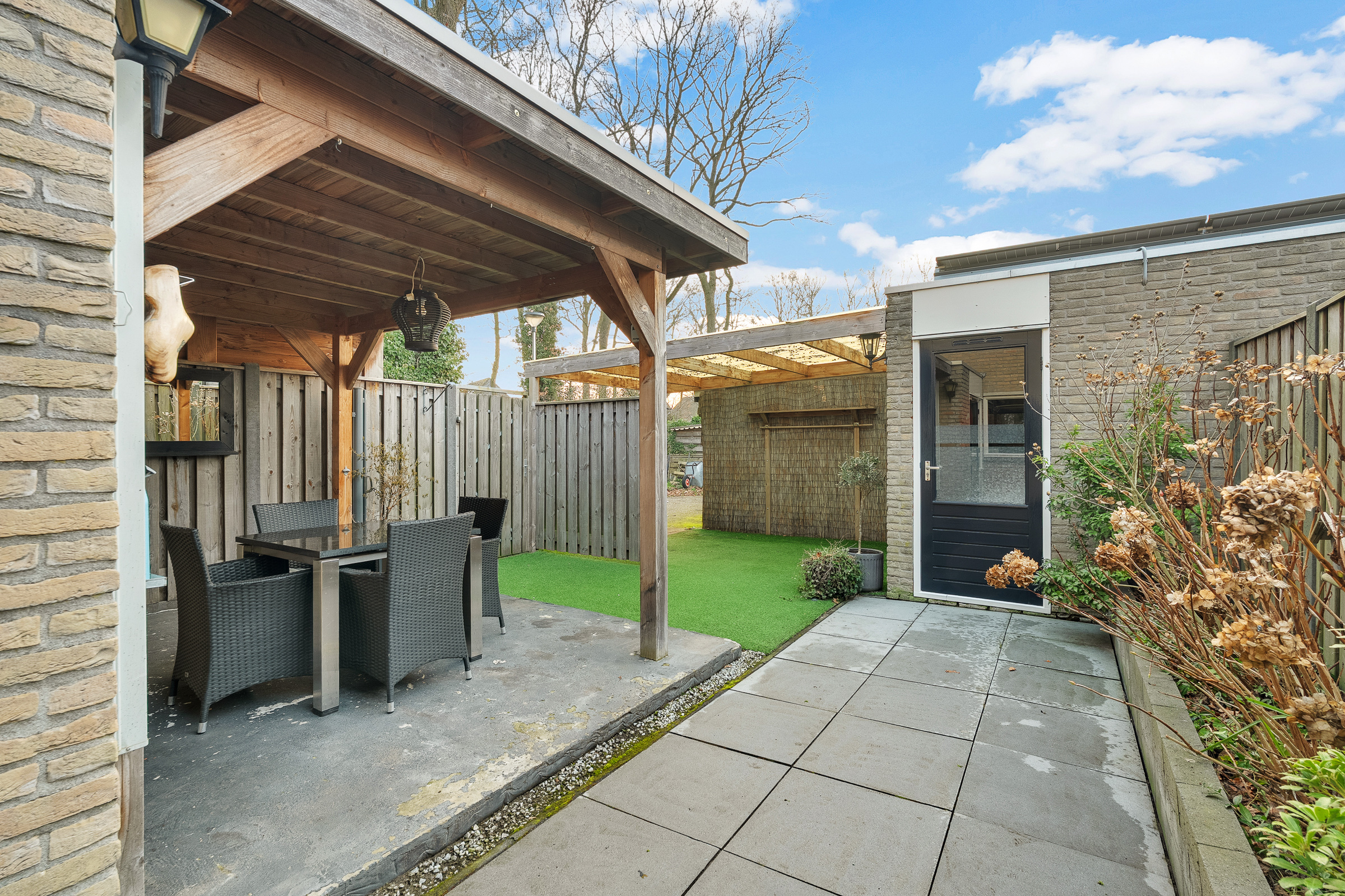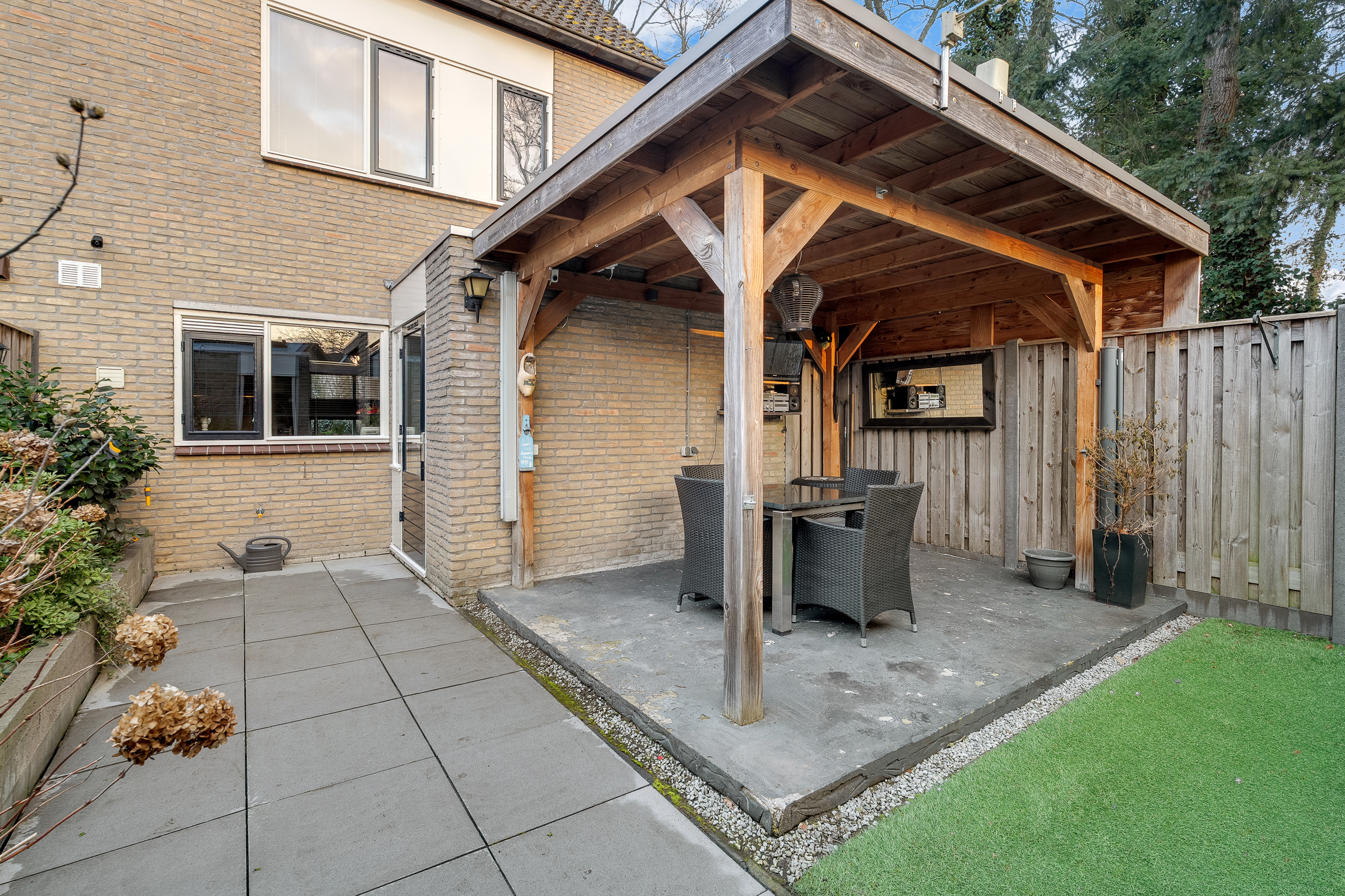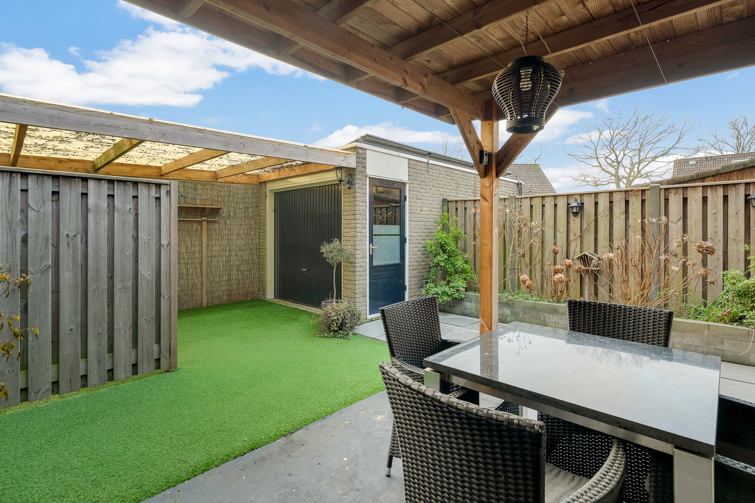 - Achtertuin 50 m2 (7.7 meter diep en 6.75 meter breed)