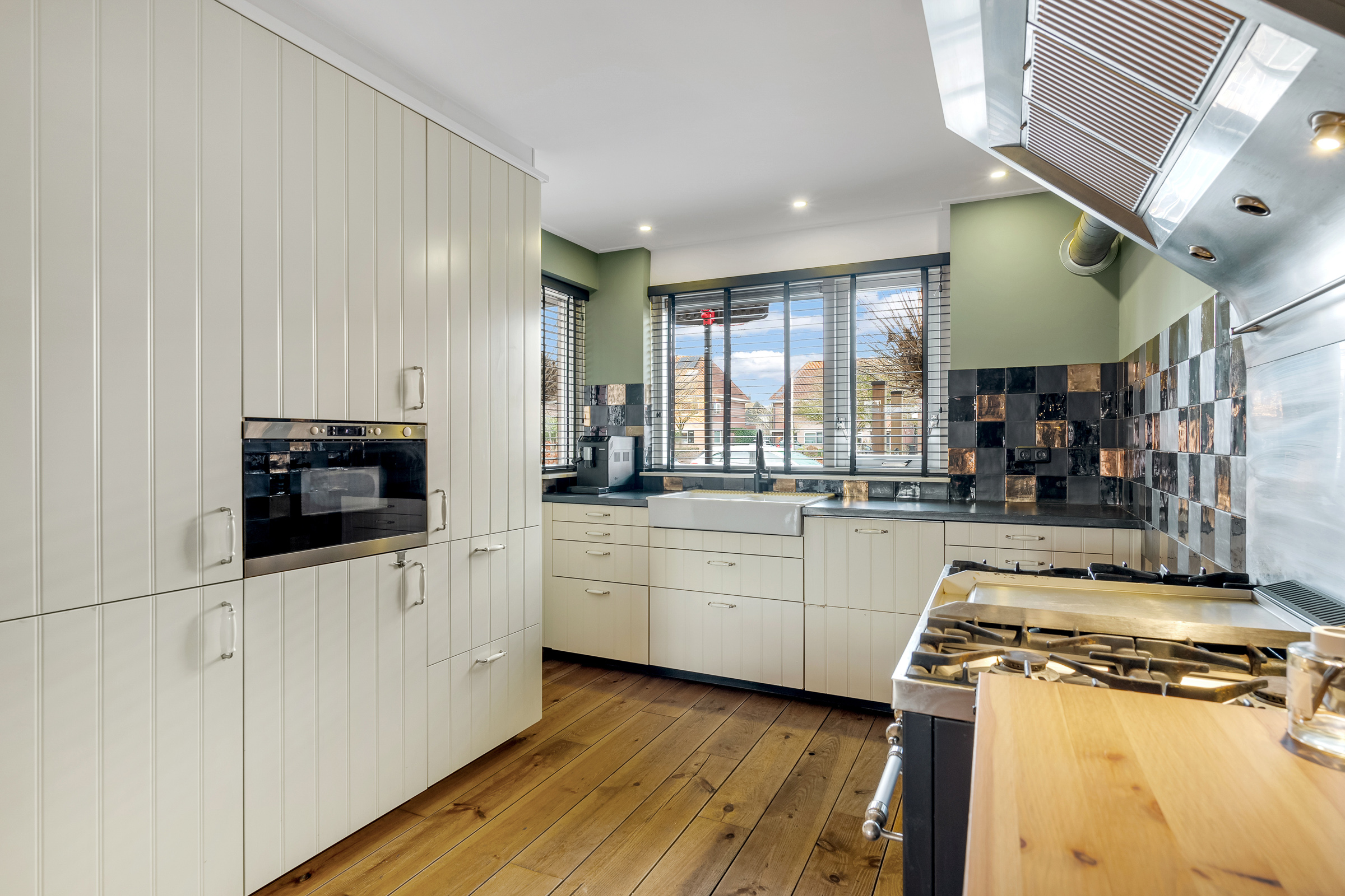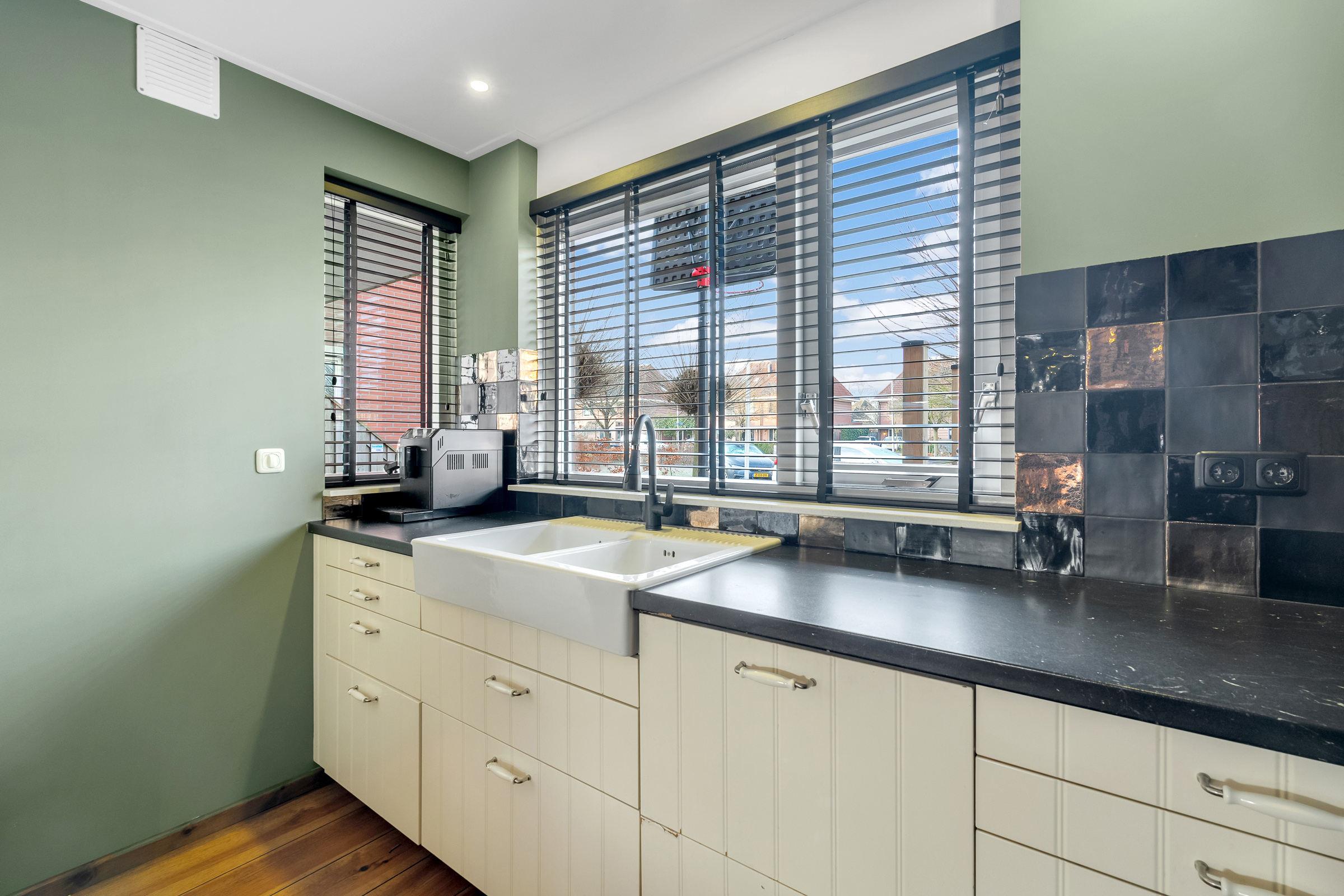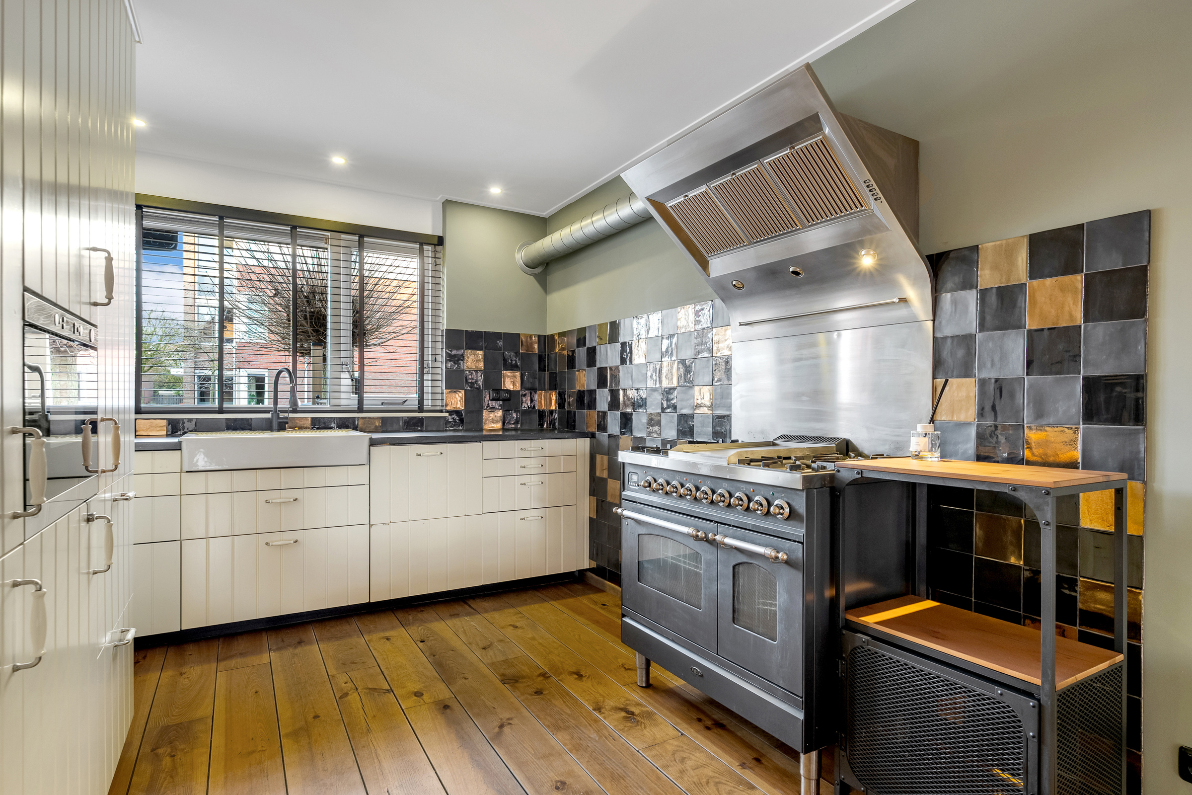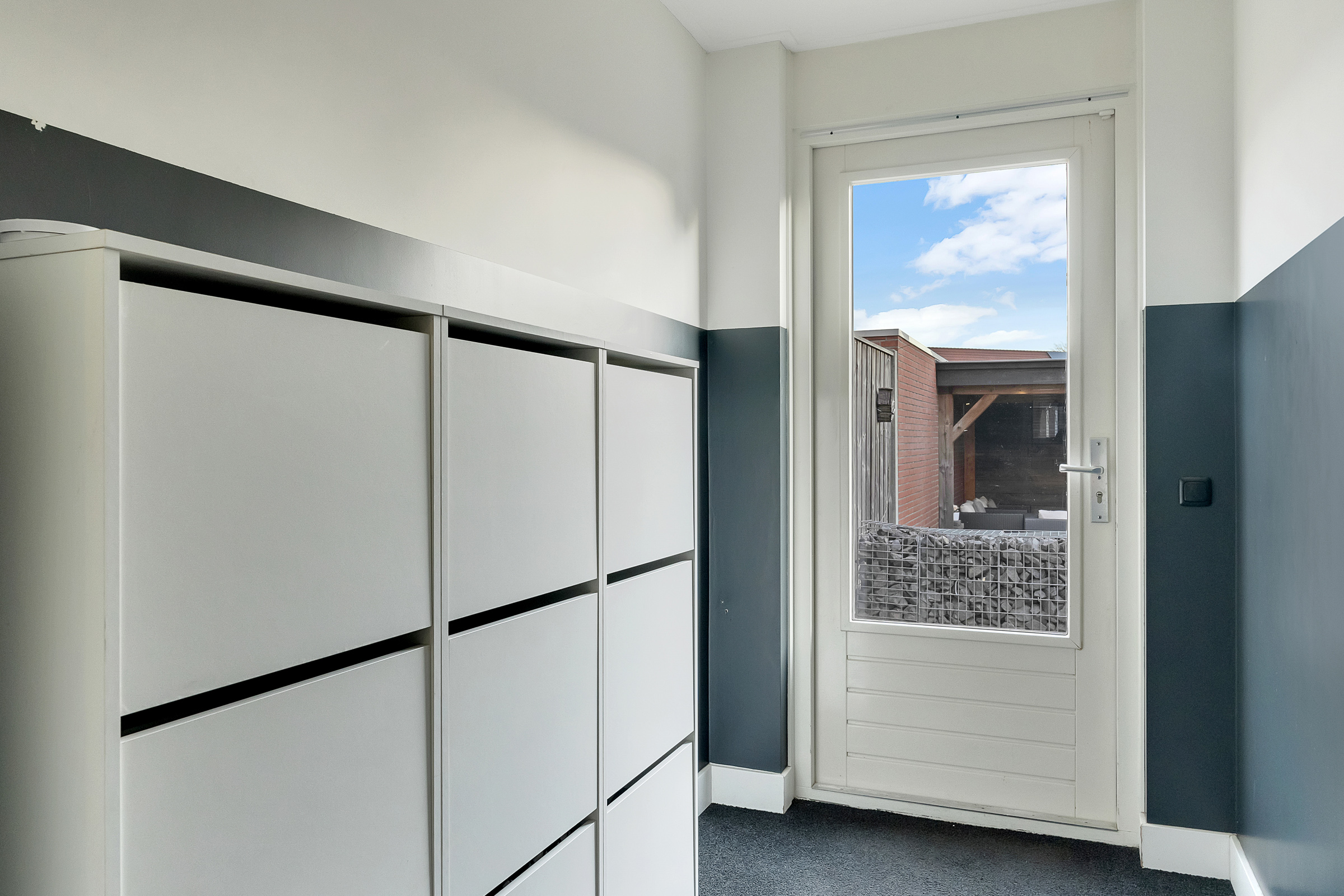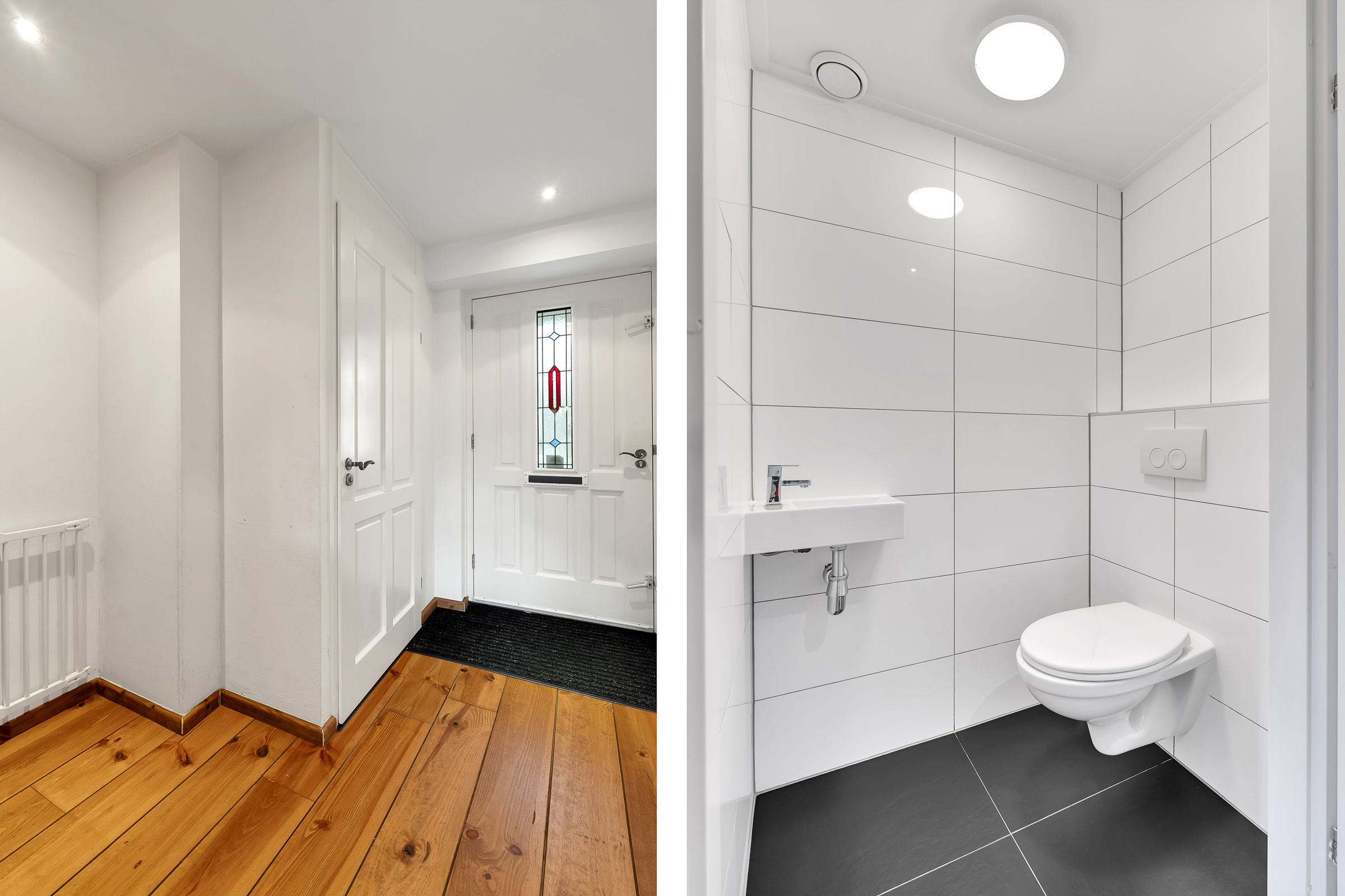 Via de bijkeuken kom je vanuit de tuin binnen, handig voor jassen en schoenen en prettig in het dagelijks gebruik.