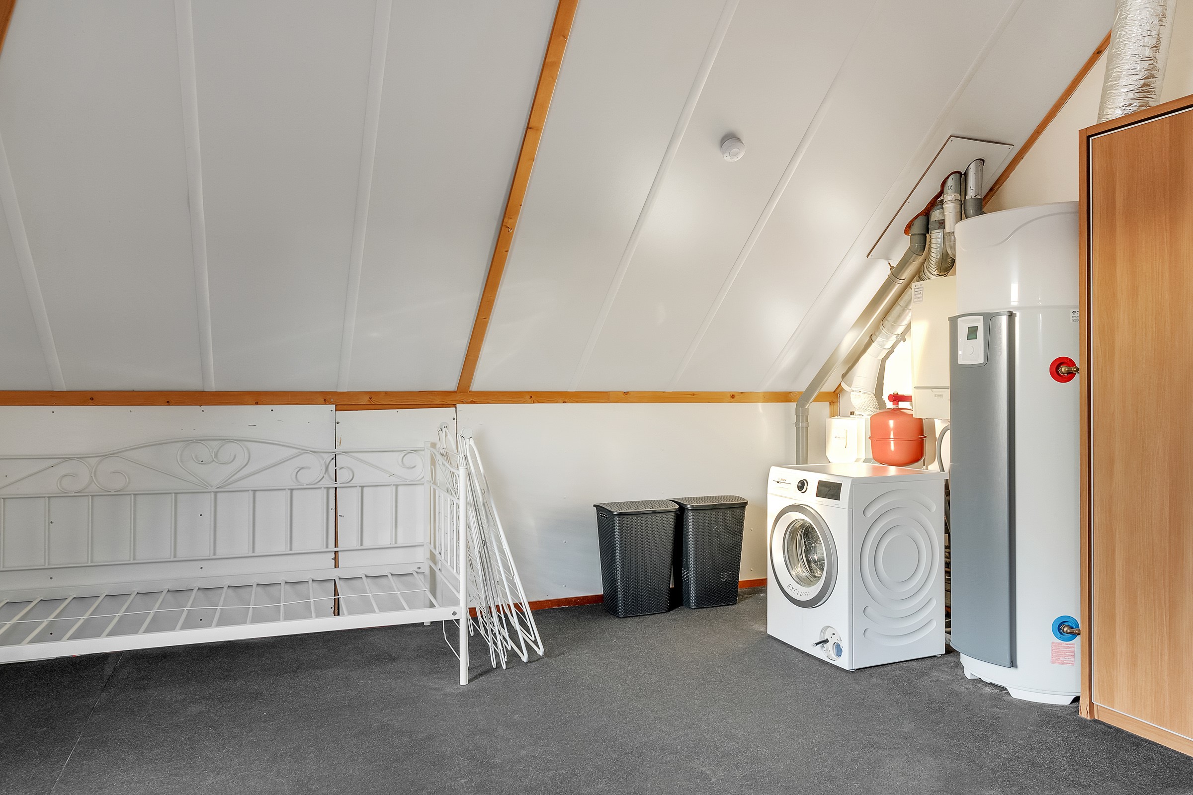 Tweede verdieping: middels vaste trap te bereiken zolder, warmtepomp boiler, cv-installatie, wasmachine-aansluiting, knieschotten.