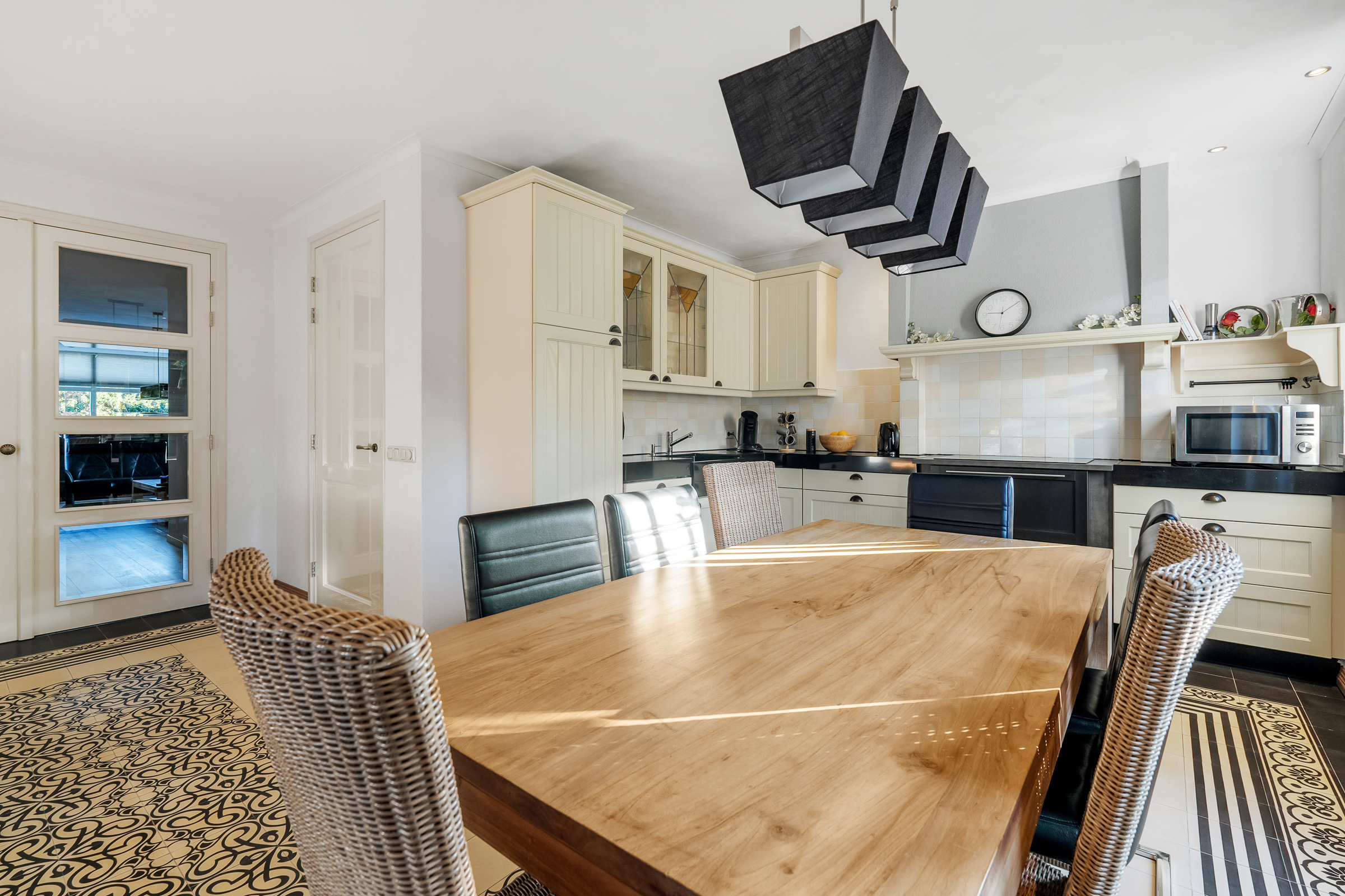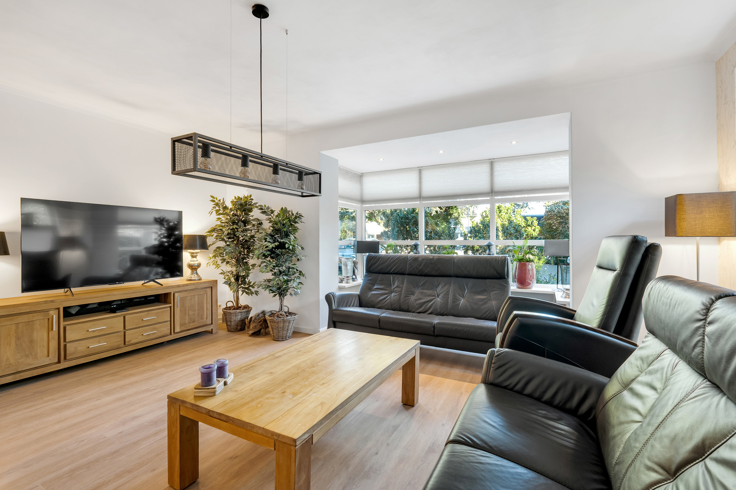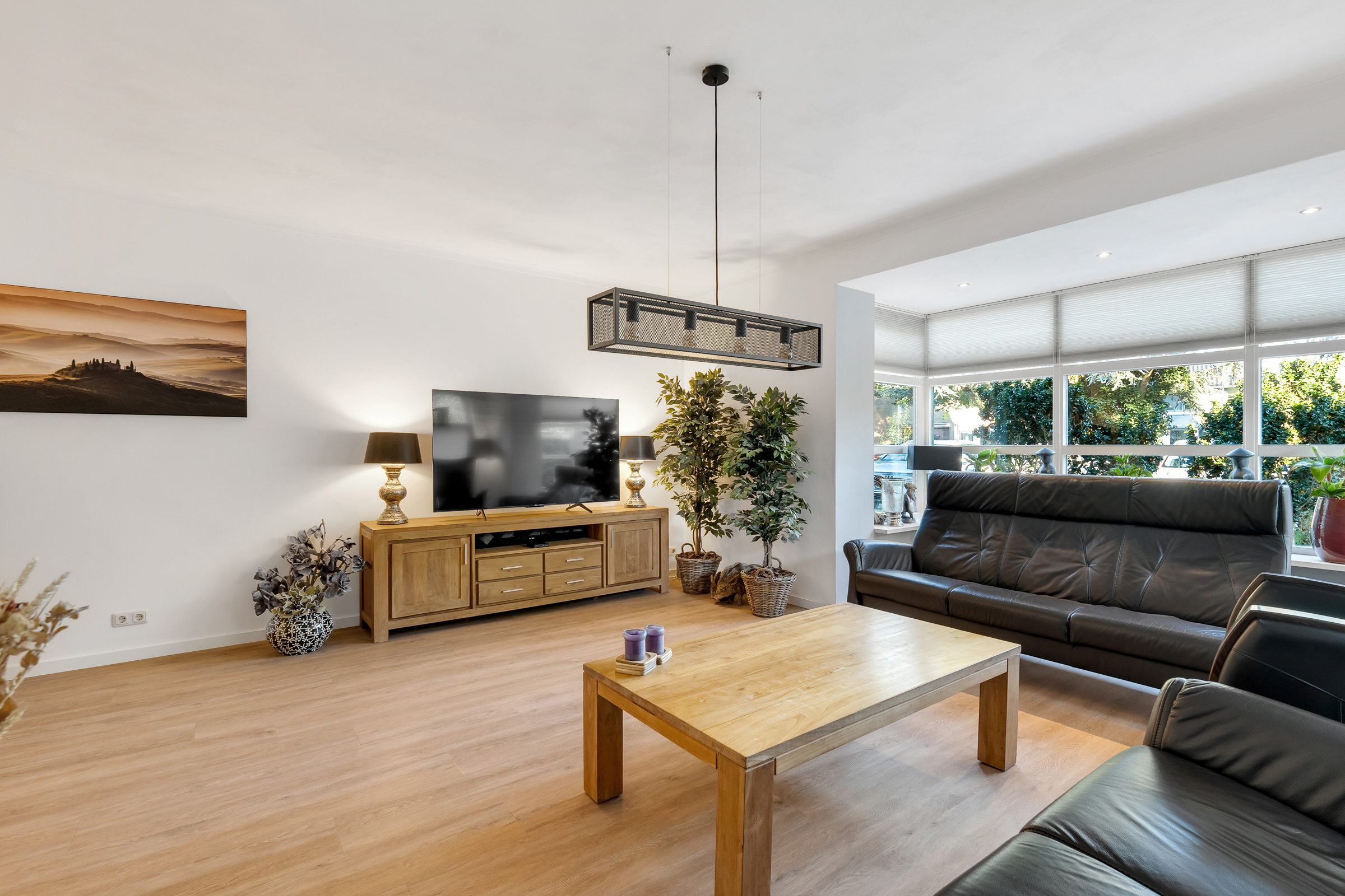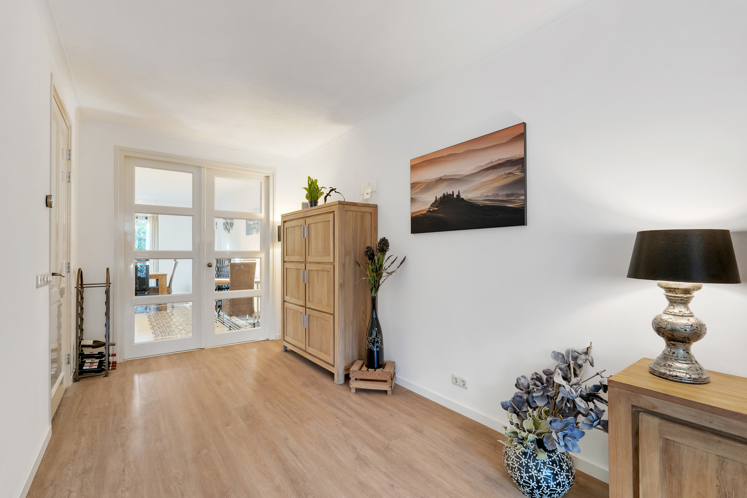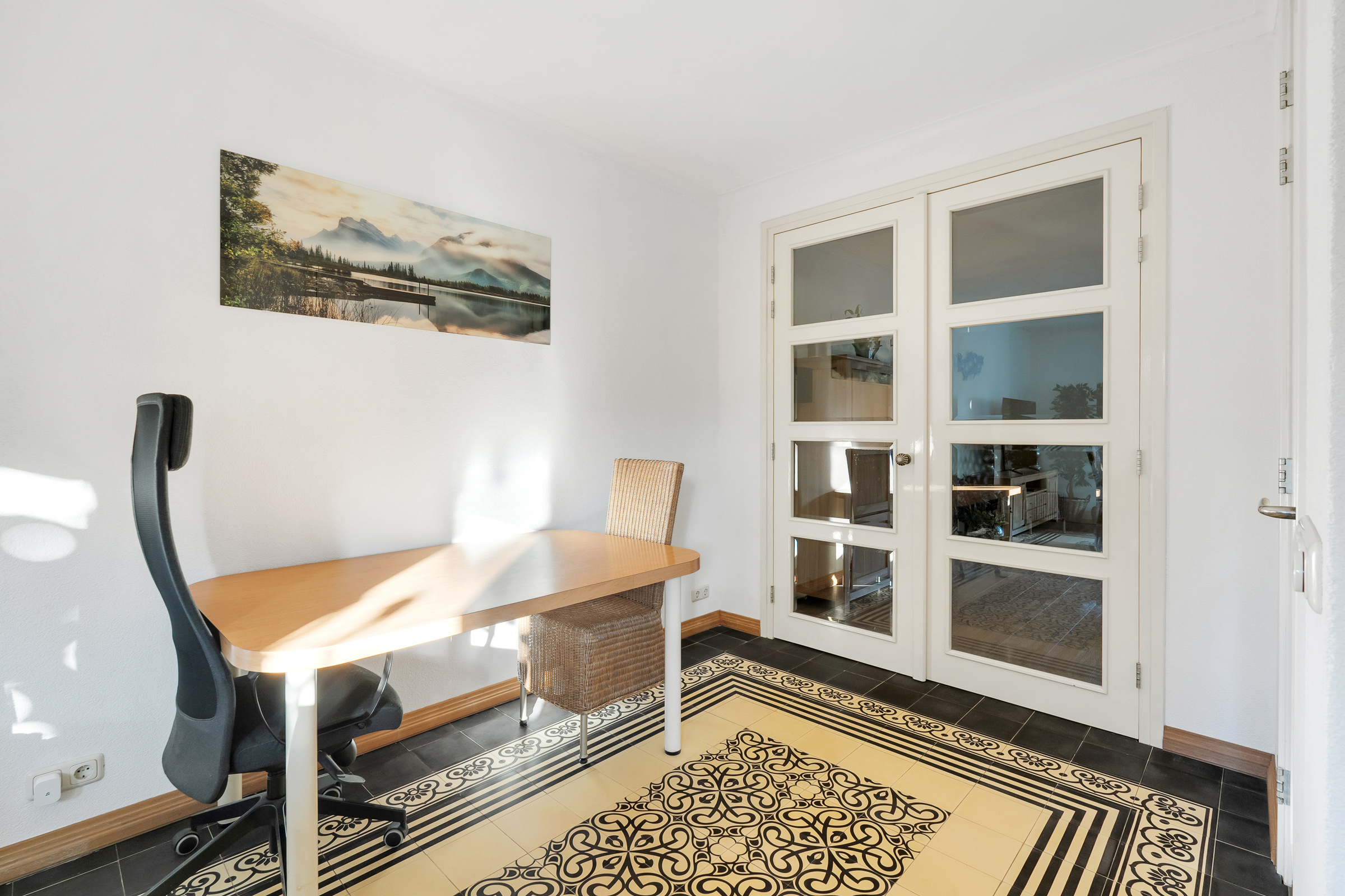 De L-vormige woonkamer en woonkeuken zijn voorzien van vloerverwarming en via de openslaande tuindeuren stap je zo de zonnige achtertuin in. Via een binnendoor komen we in de garage/berging welke bovendien, mede door de aanwezigheid van een extra toilet, geschikt is voor bijvoorbeeld een praktijk aan huis.