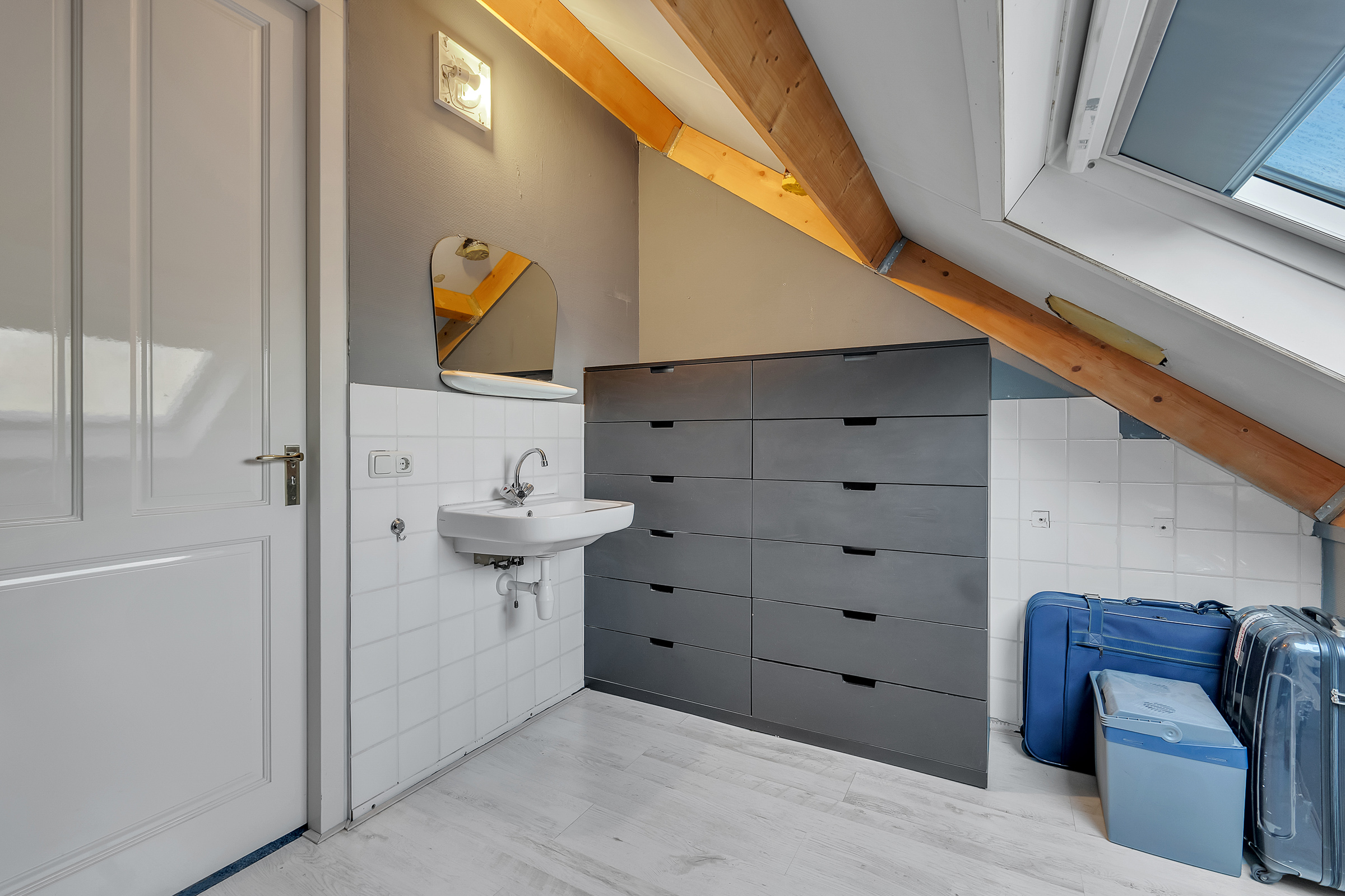 Tweede verdieping: vast trap naar 4e slaapkamer met dakkapel, berging met wastafel en cv-installatie.