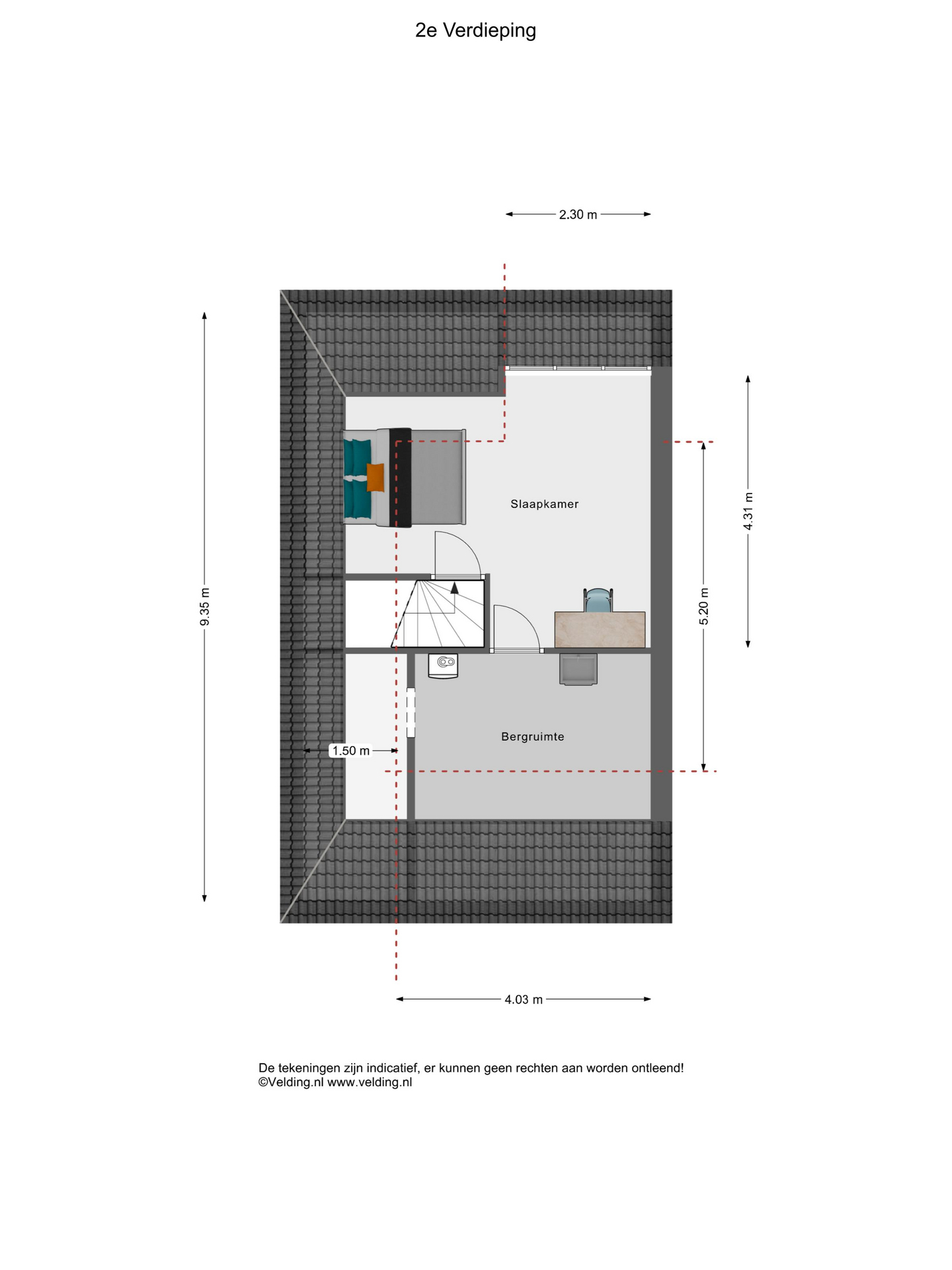 Tweede verdieping: vast trap naar 4e slaapkamer met dakkapel, berging met wastafel en cv-installatie.