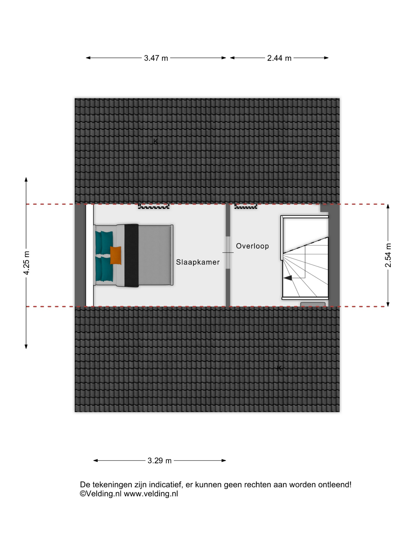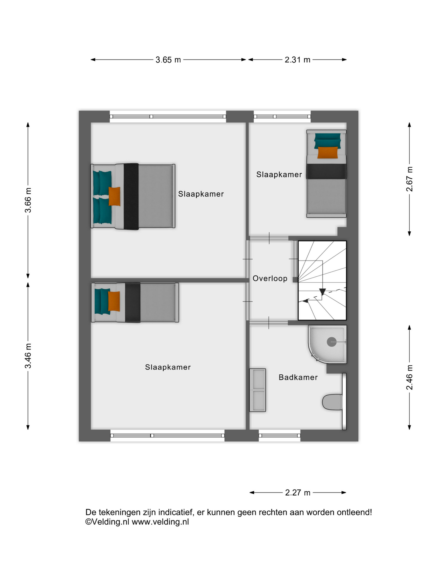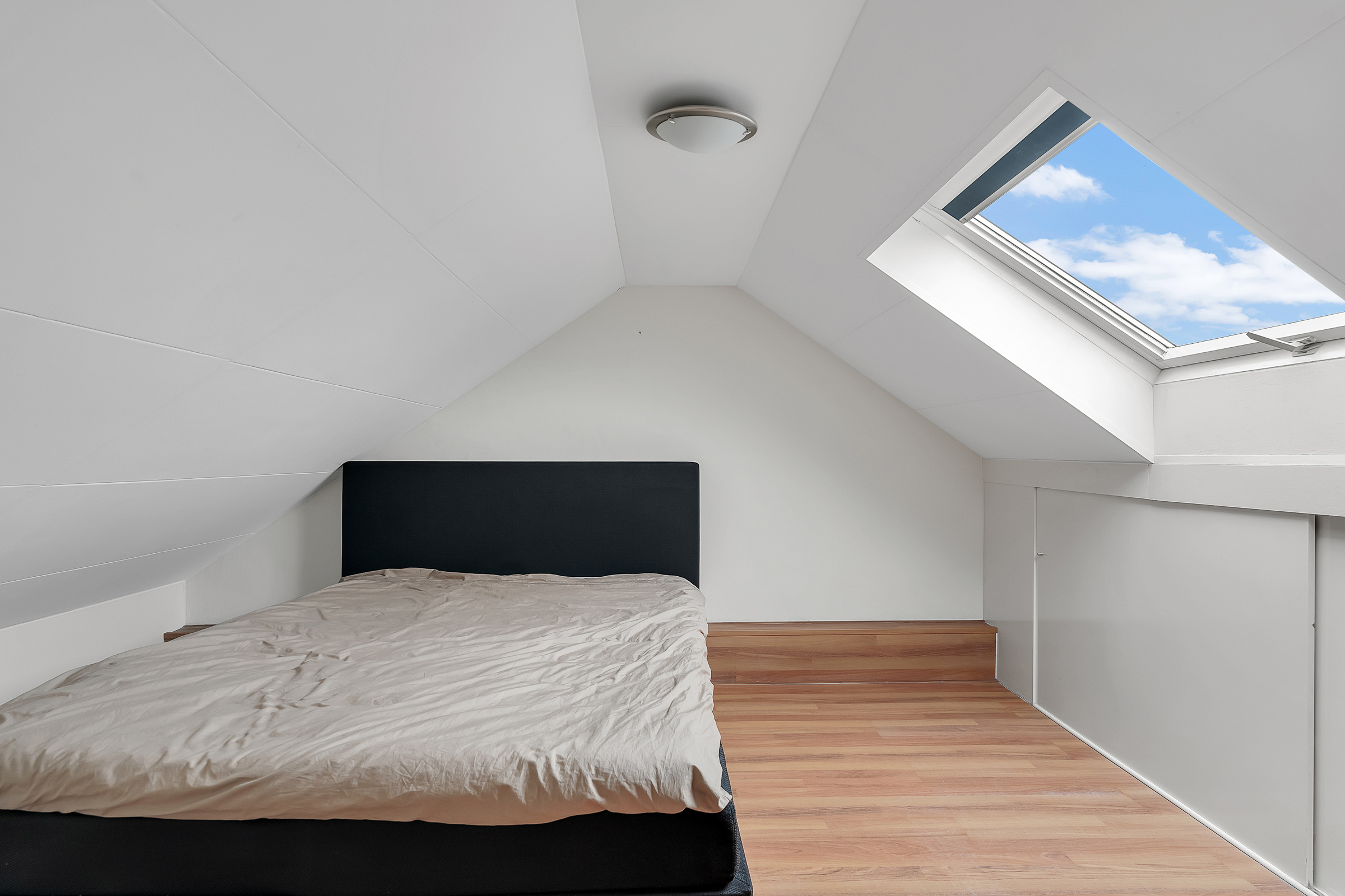 Tweede verdieping: via vaste trap te bereiken overloop, cv-installatie, wasmachineaansluiting, 4e slaapkamer met knieschotten.
