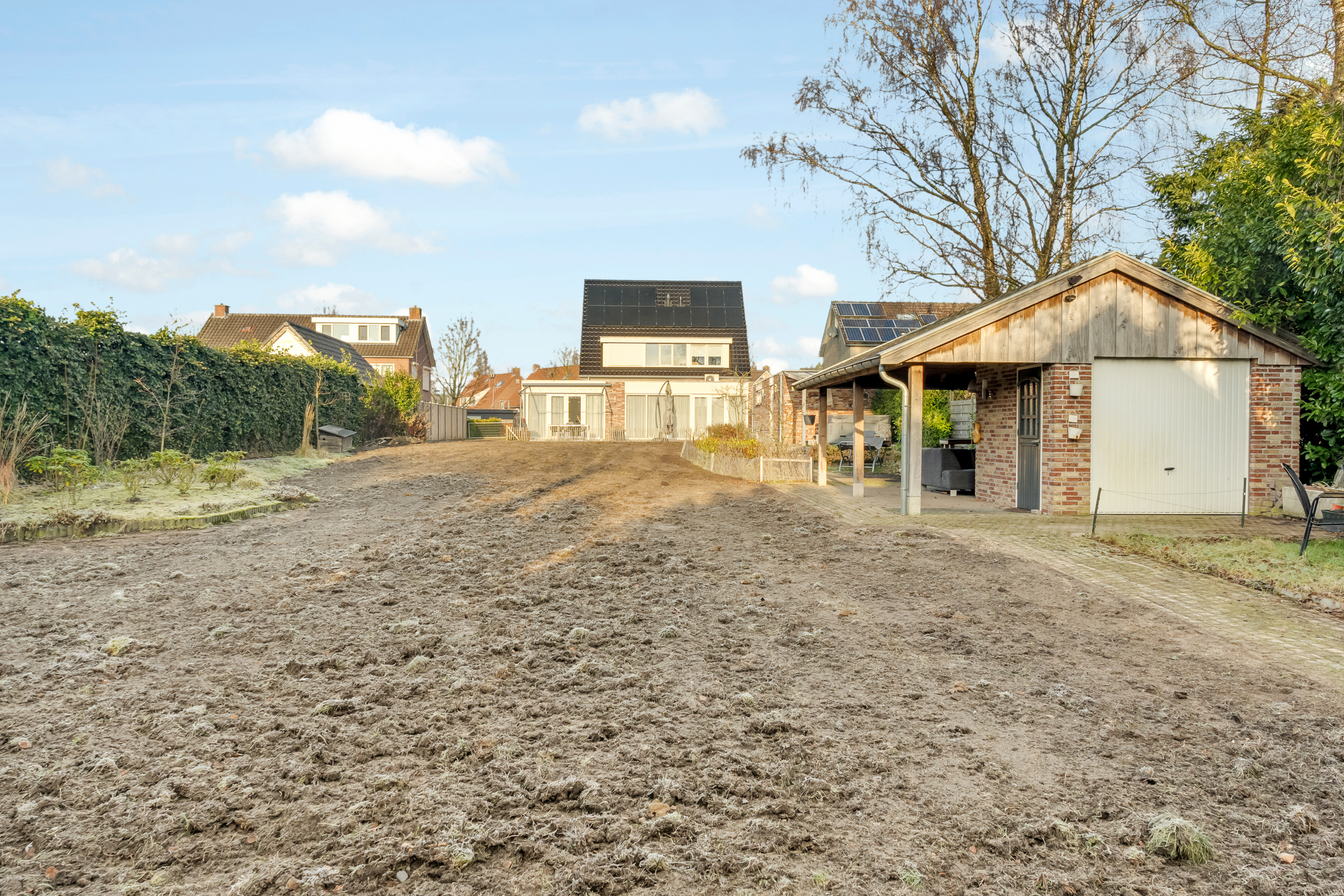 • Achtertuin 1.016 m2 (56 meter diep en 18.15 meter breed)