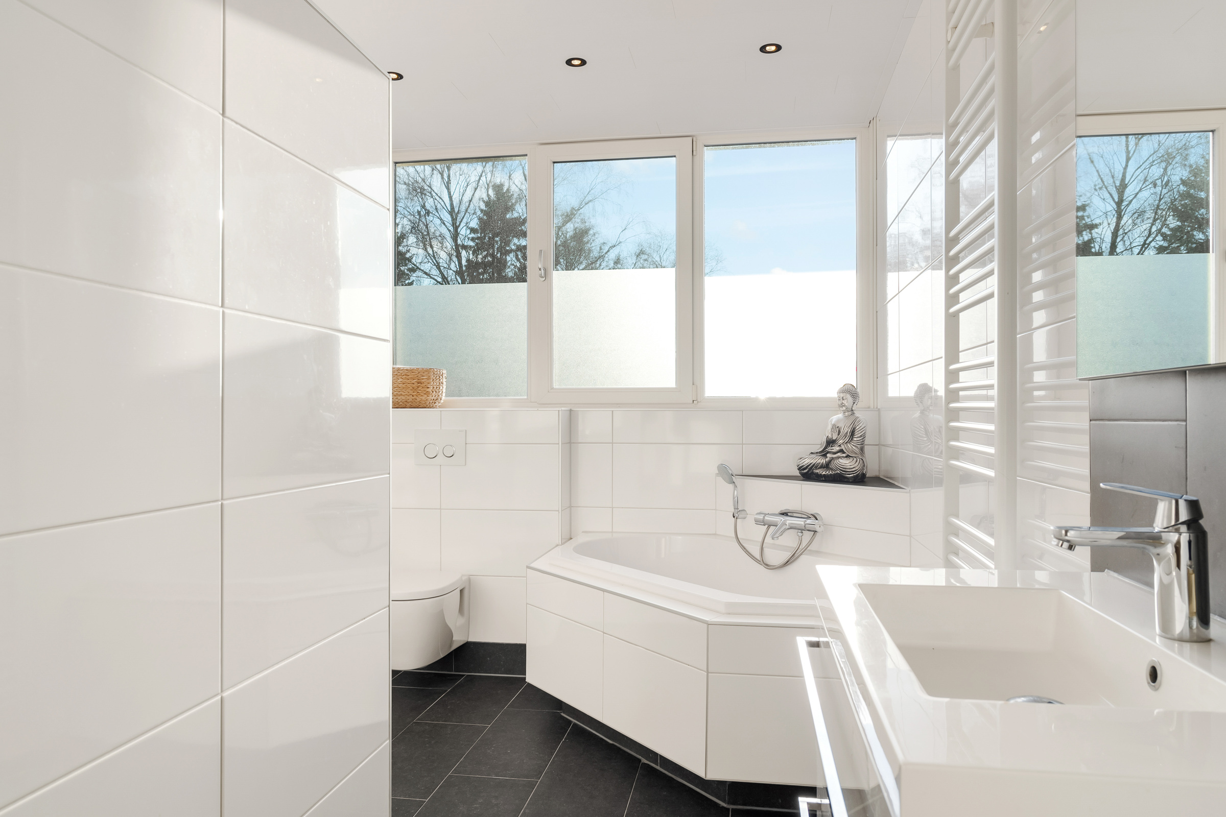 • Badkamervoorzieningen Toilet, Douche, Wastafelmeubel, Ligbad, Wastafel, Inloopdouche, Vloerverwarming