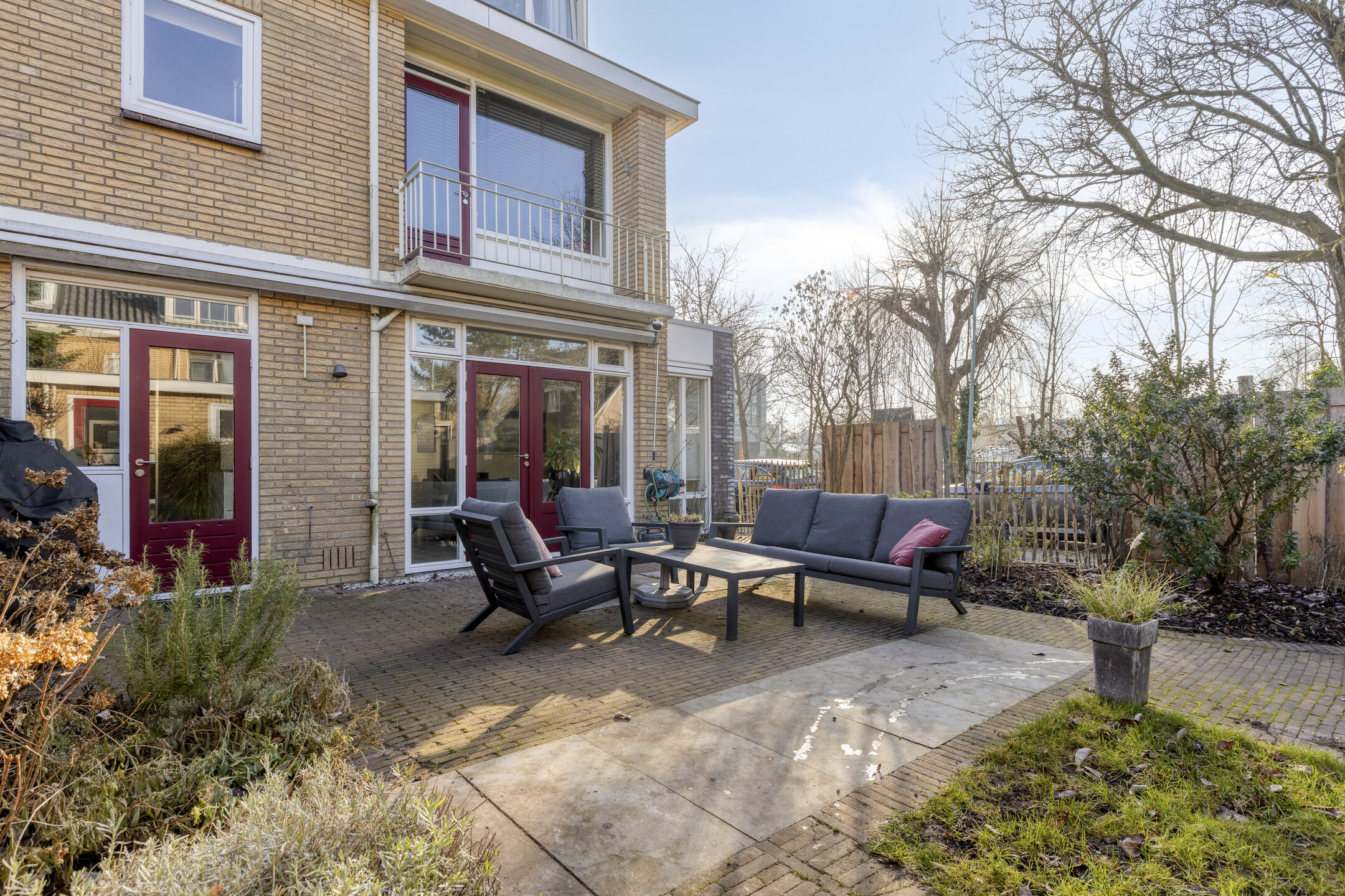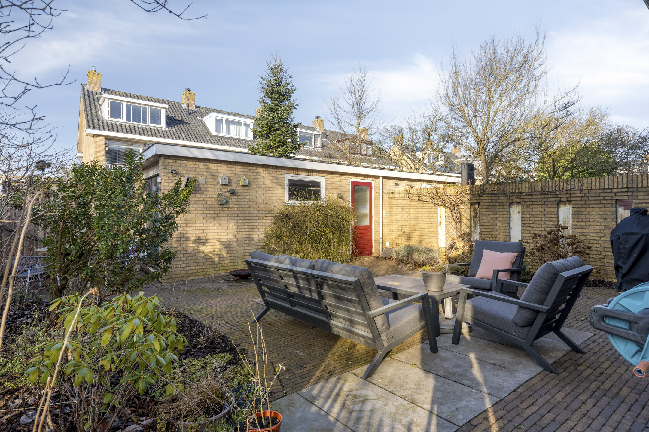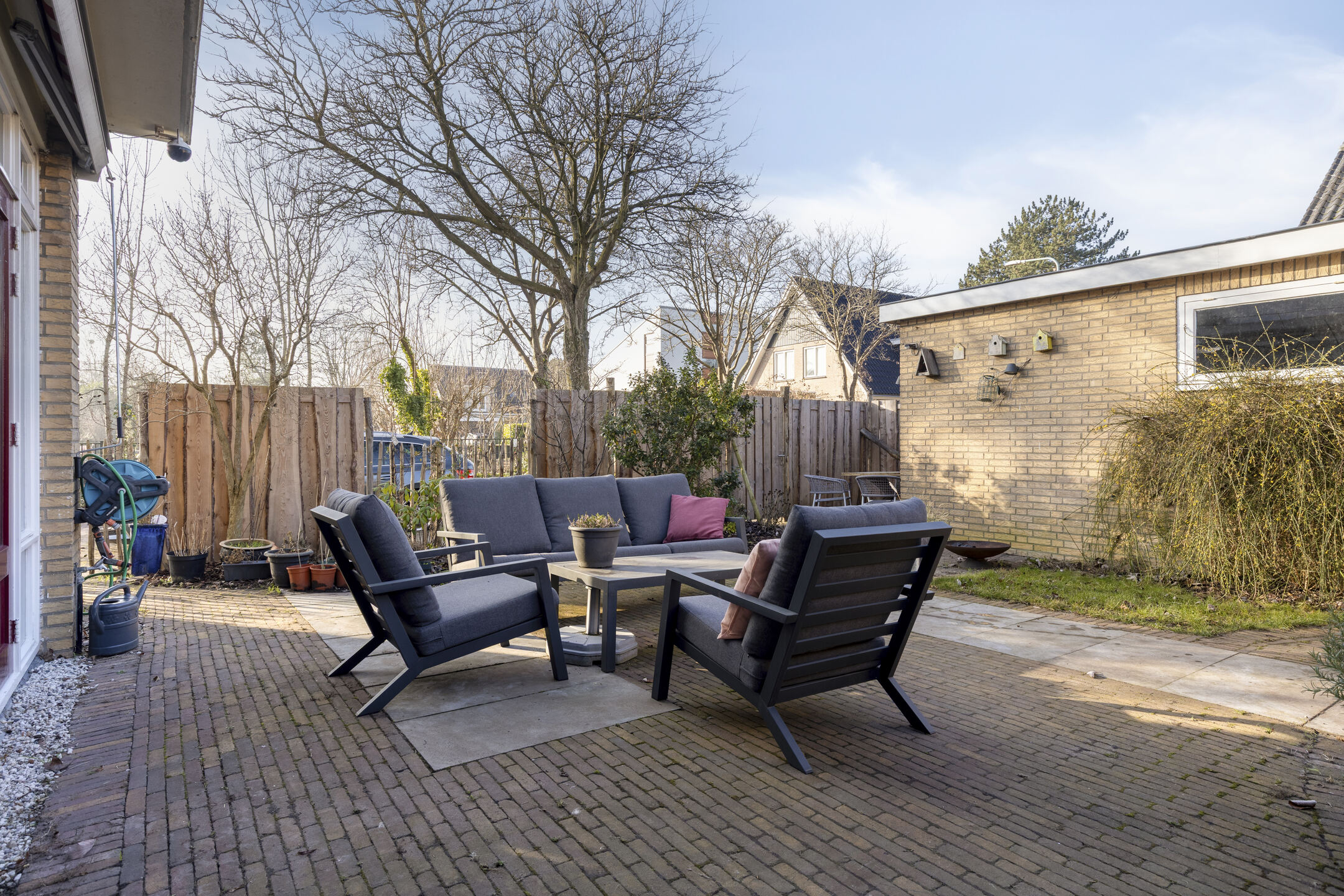 – Zonnige achtertuin met meerdere zitgedeelten.