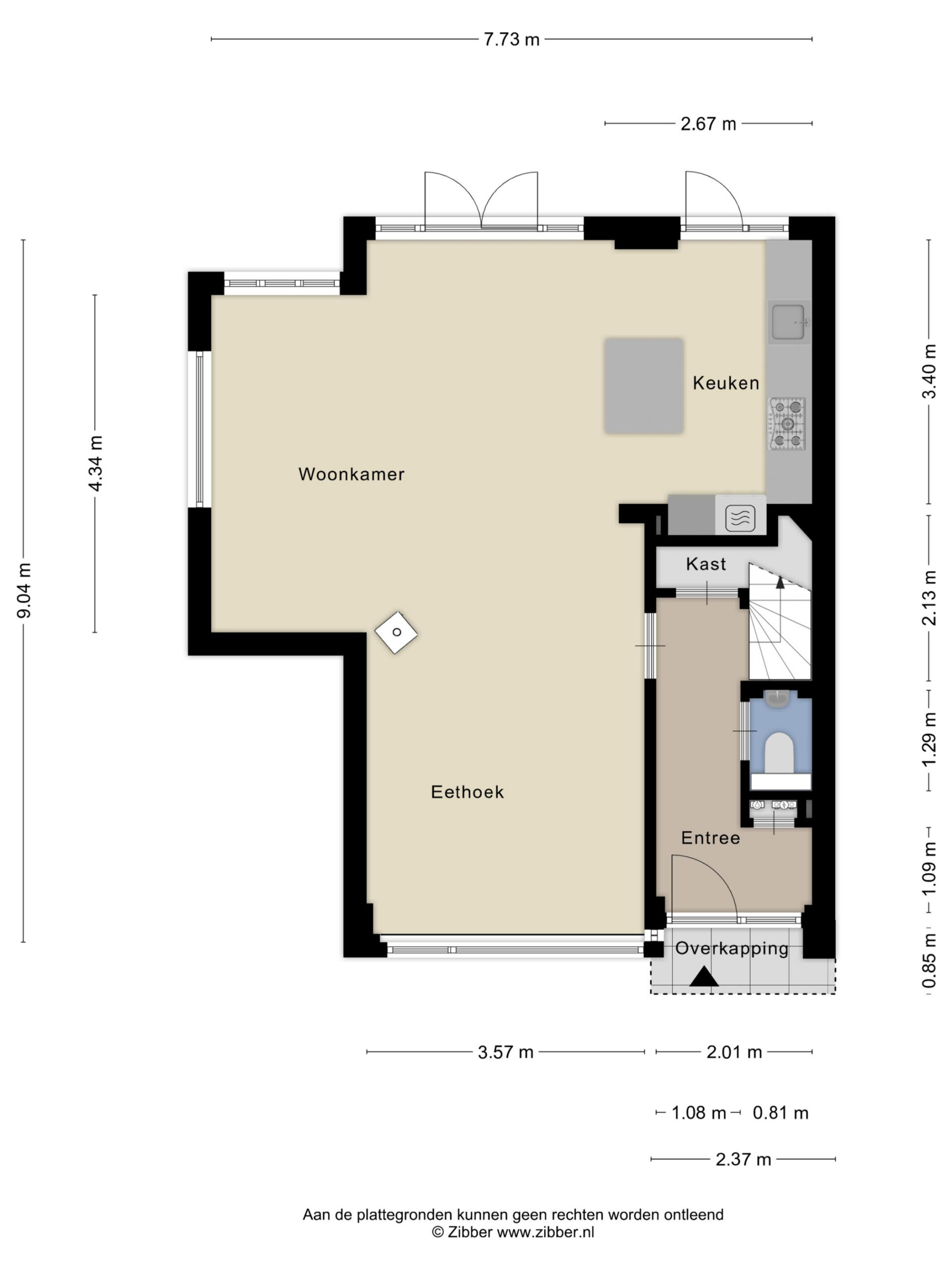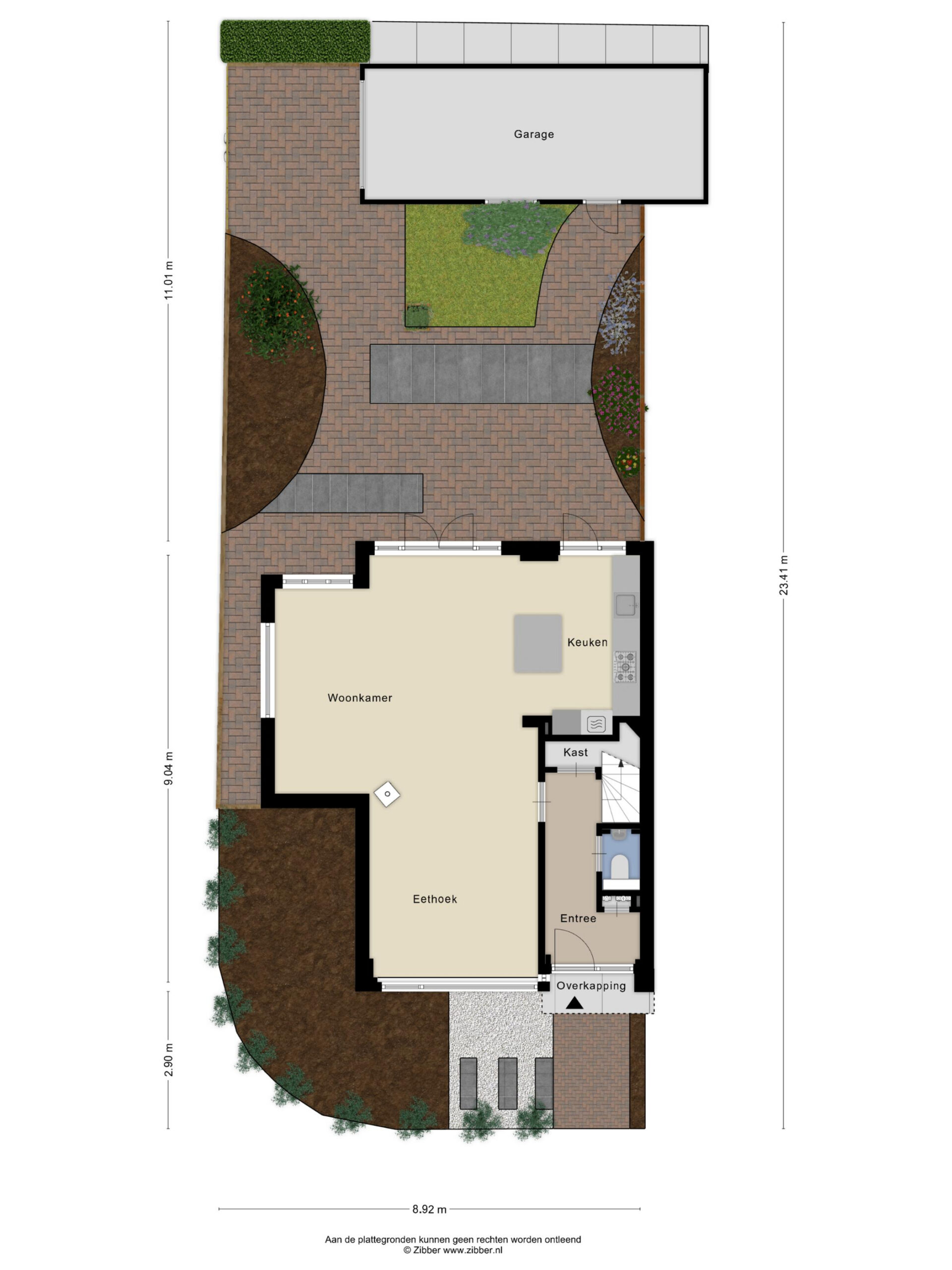 - Achtertuin 80 m2 (11.01 meter diep en 8.92 meter breed)