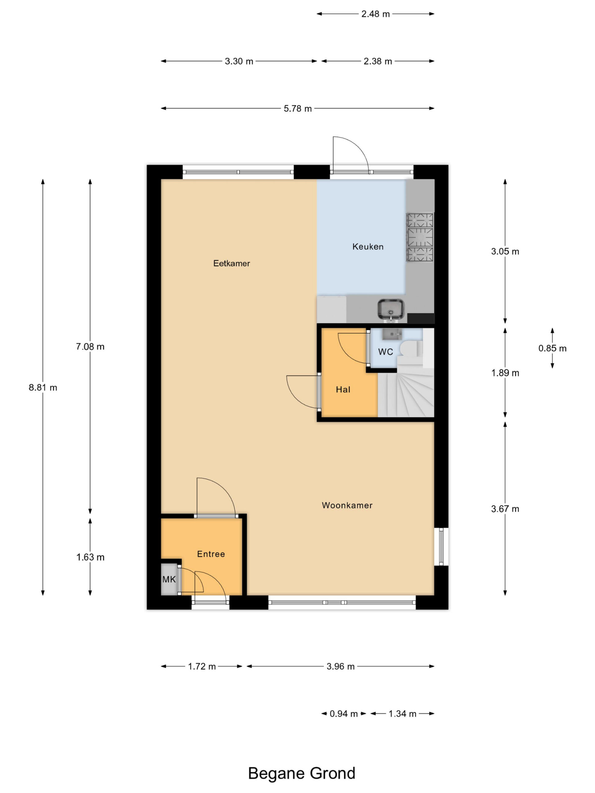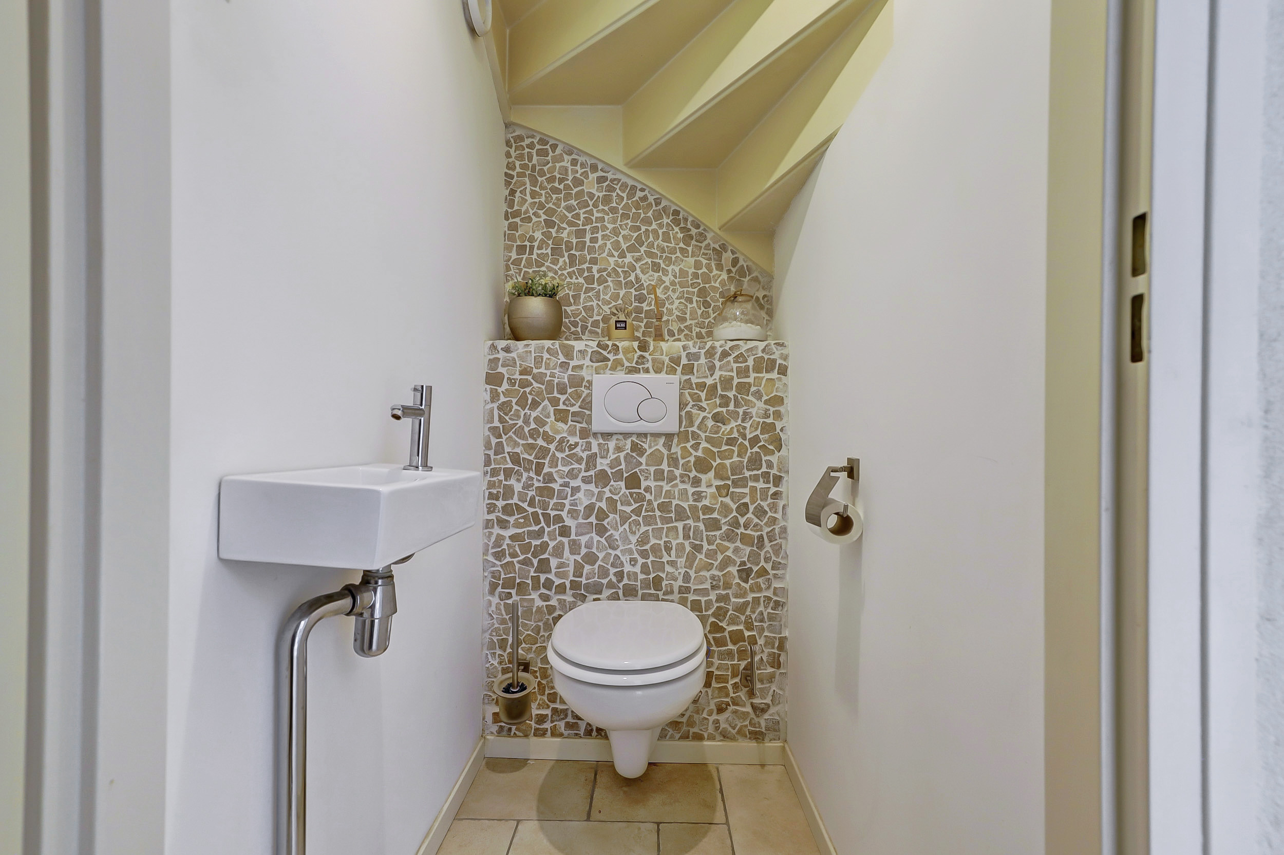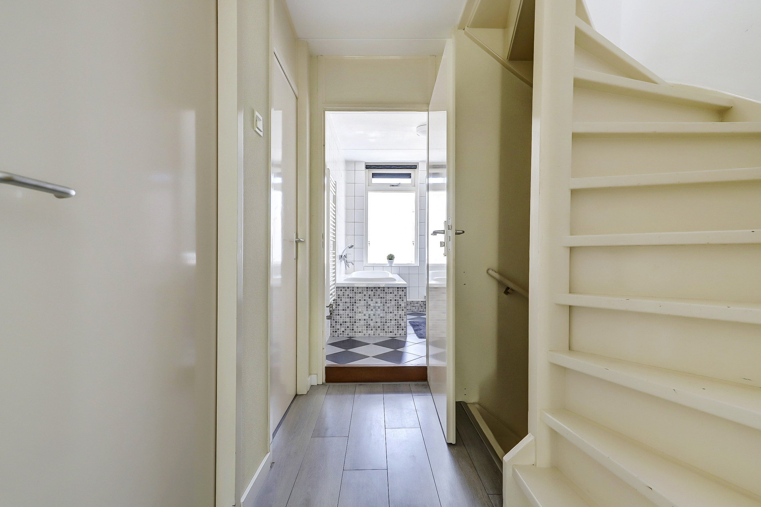 In de tweede hal is het toilet gesitueerd en de trap naar de eerste verdieping.