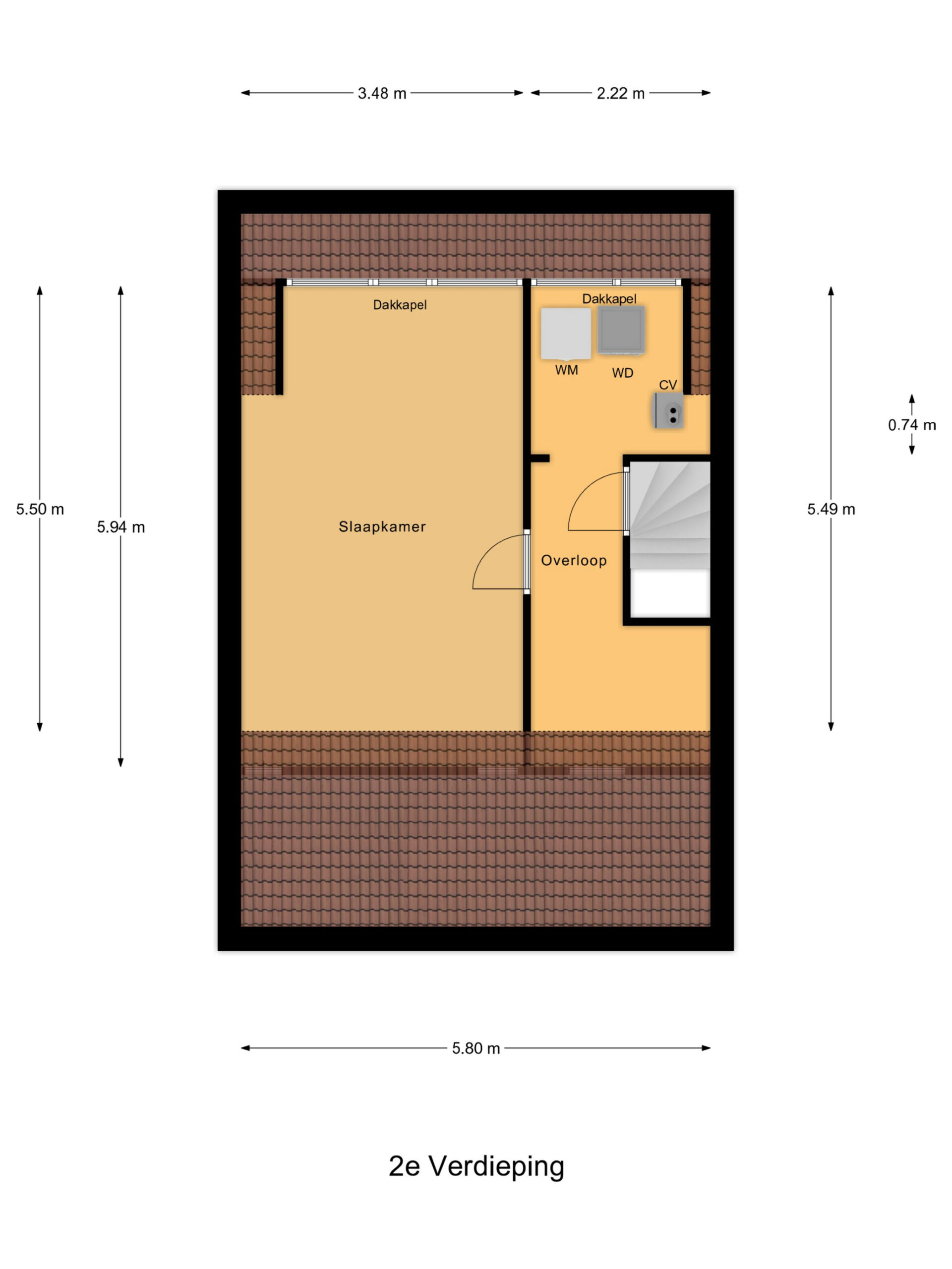* Dakkapel over bijna de gehele breedte van het huis