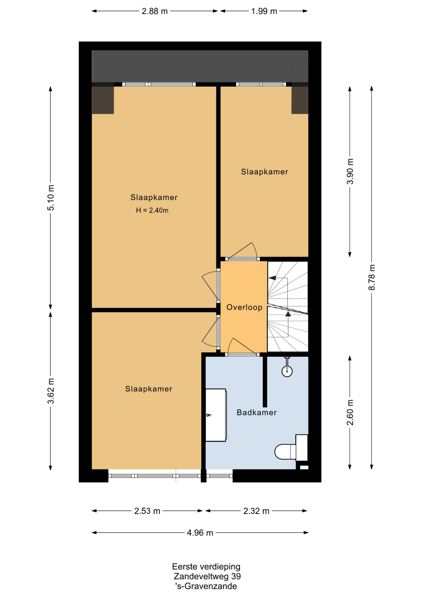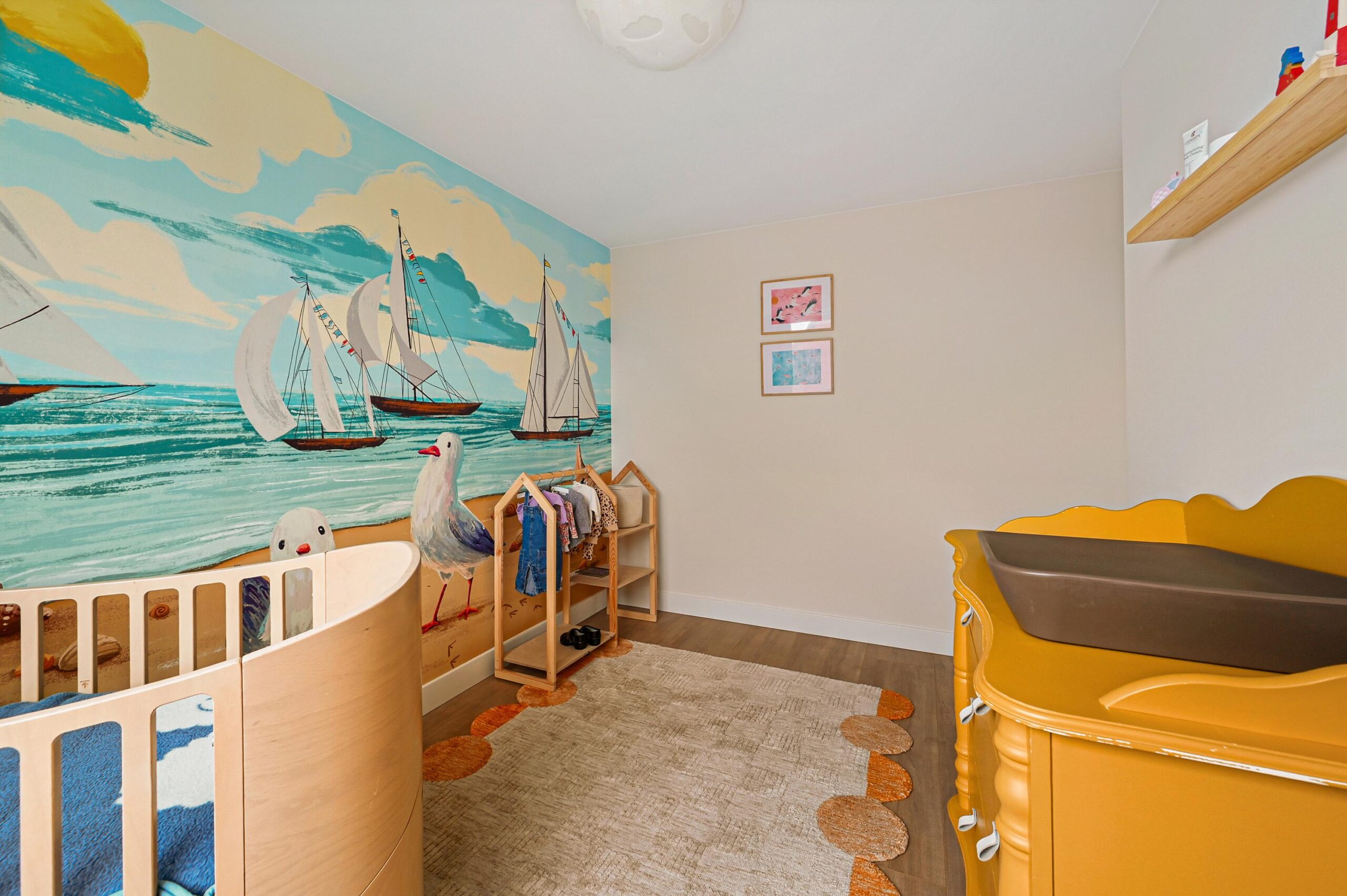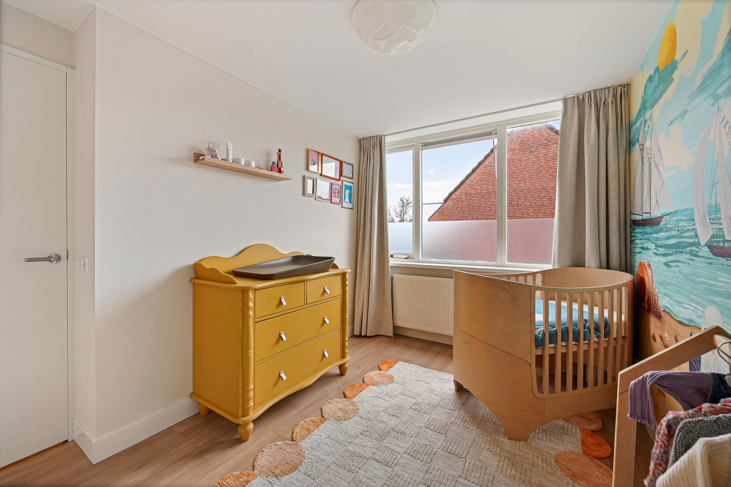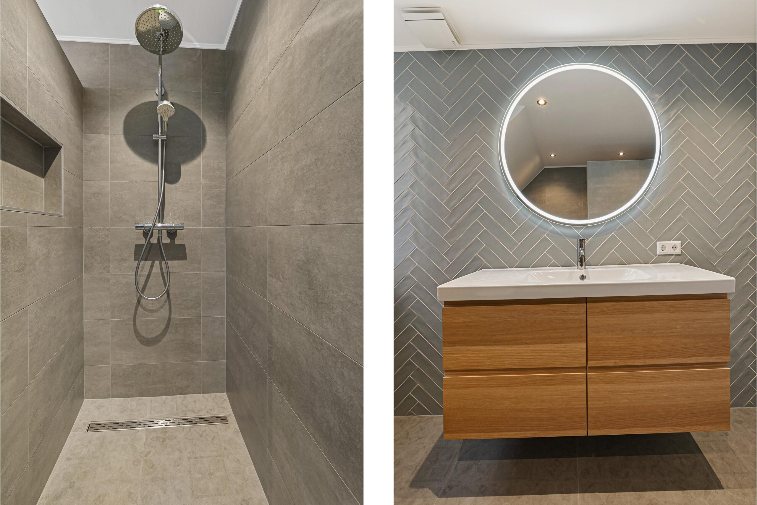 Op de eerste verdieping bevinden zich drie goed bemeten slaapkamers, waaronder een ruime master bedroom, mede dankzij de aanwezige dakkapel aan de achterzijde gerealiseerd in 2021. De andere twee slaapkamers dienen als volwaardige kinderkamer of werkkamer. De luxe badkamer, vernieuwd in 2021, is afgewerkt met rechte geglazuurde tegels en beschikt over een regendouche met drain, een wastafelmeubel in houtlook, radiator en een ronde spiegel met verlichting. Dankzij het raam en de mechanische ventilatie is de badkamer comfortabel en goed geventileerd.