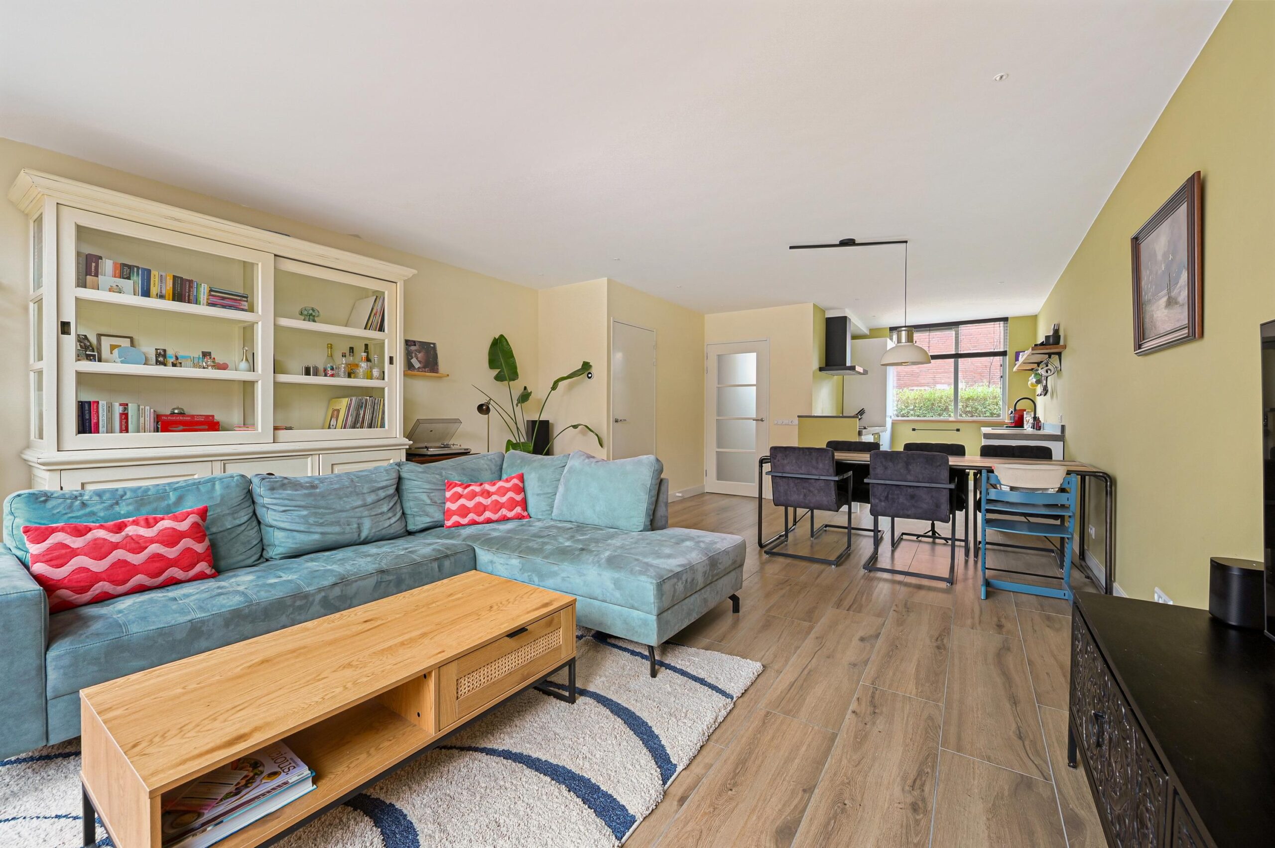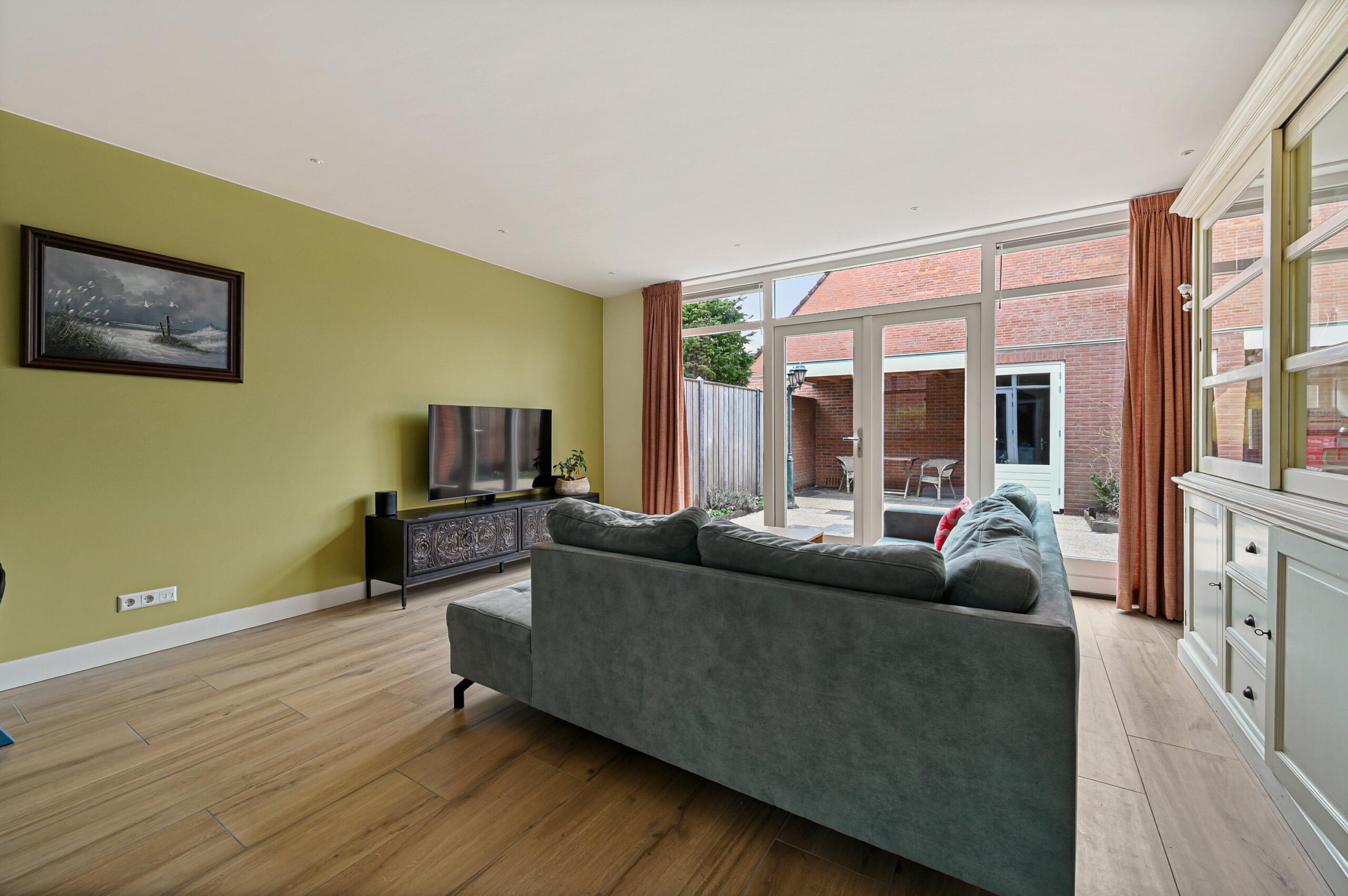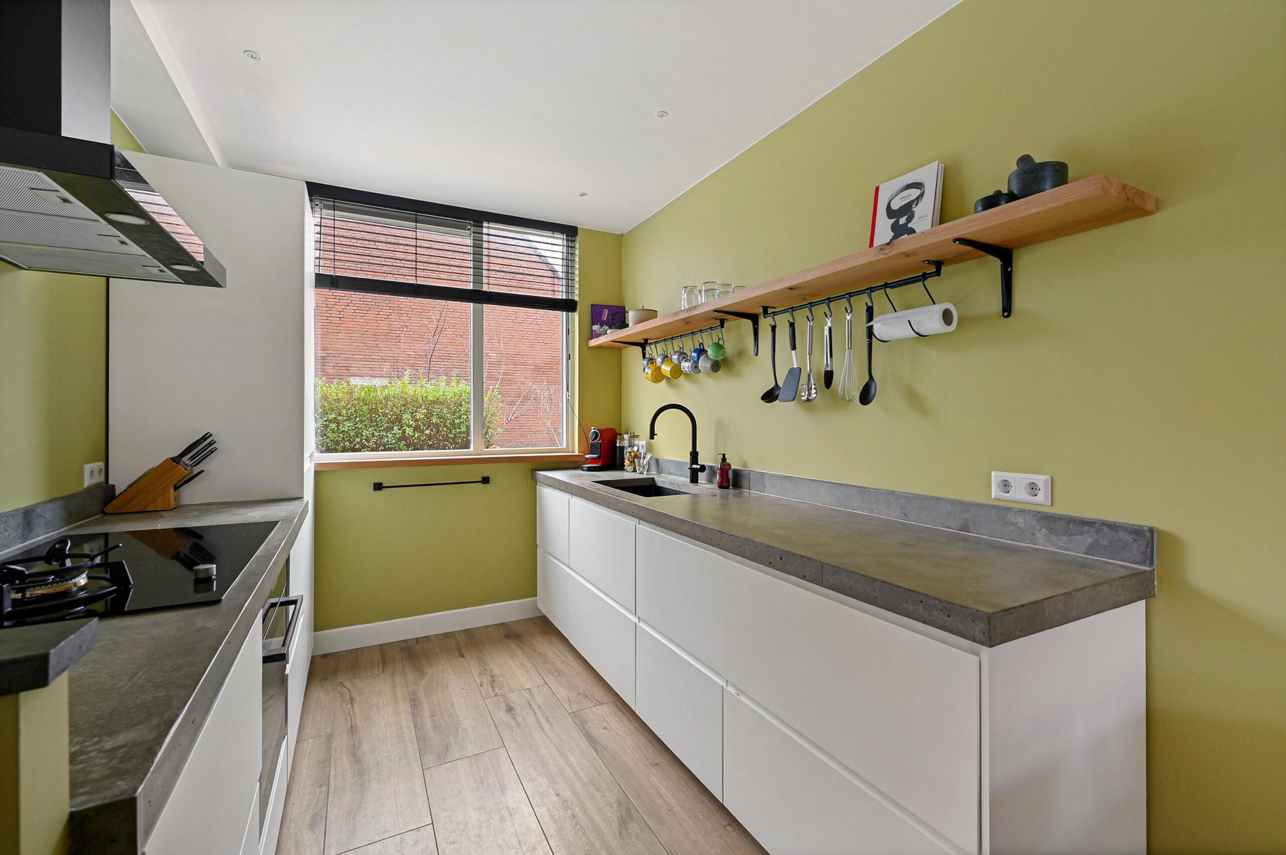 De begane grond biedt een lichte en sfeervolle woonkamer met een luxe plavuizen in houttint met vloerverwarming, strak gestuukte wanden en een geëgaliseerd plafond met inbouwspots. De openslaande deuren naar de tuin zorgen voor veel daglicht en een prettige verbinding tussen binnen en buiten. De halfopen keuken is in 2021 volledig vernieuwd en uitgevoerd in mat wit, gecombineerd met een grijs beton werkblad. De keuken beschikt over diverse AEG inbouwapparatuur, waaronder een AEG inductiekookplaat met wokpit, oven, vaatwasser, Quooker, een ruime koelkast en een separate vriezer. Het geheel heeft een strakke en luxe uitstraling en biedt veel werk- en bergruimte. Het toilet op de begane grond is eveneens vernieuwd en voorzien van een raam en toiletkraan.
