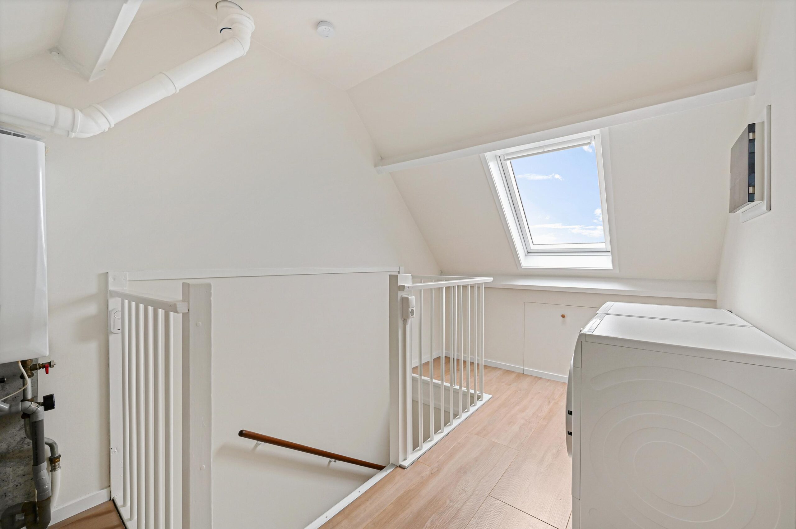 De zolderverdieping beschikt over een volwaardige vierde slaapkamer. Deze ruimte is uitstekend geschikt als extra slaapkamer, werkkamer of logeerkamer. In 2023 is er een nieuw dakraam geplaatst wat voor veel echte licht zorgt. Op de overloop bevinden zich de aansluitingen voor wasmachine en droger, met aanvullende bergruimte.