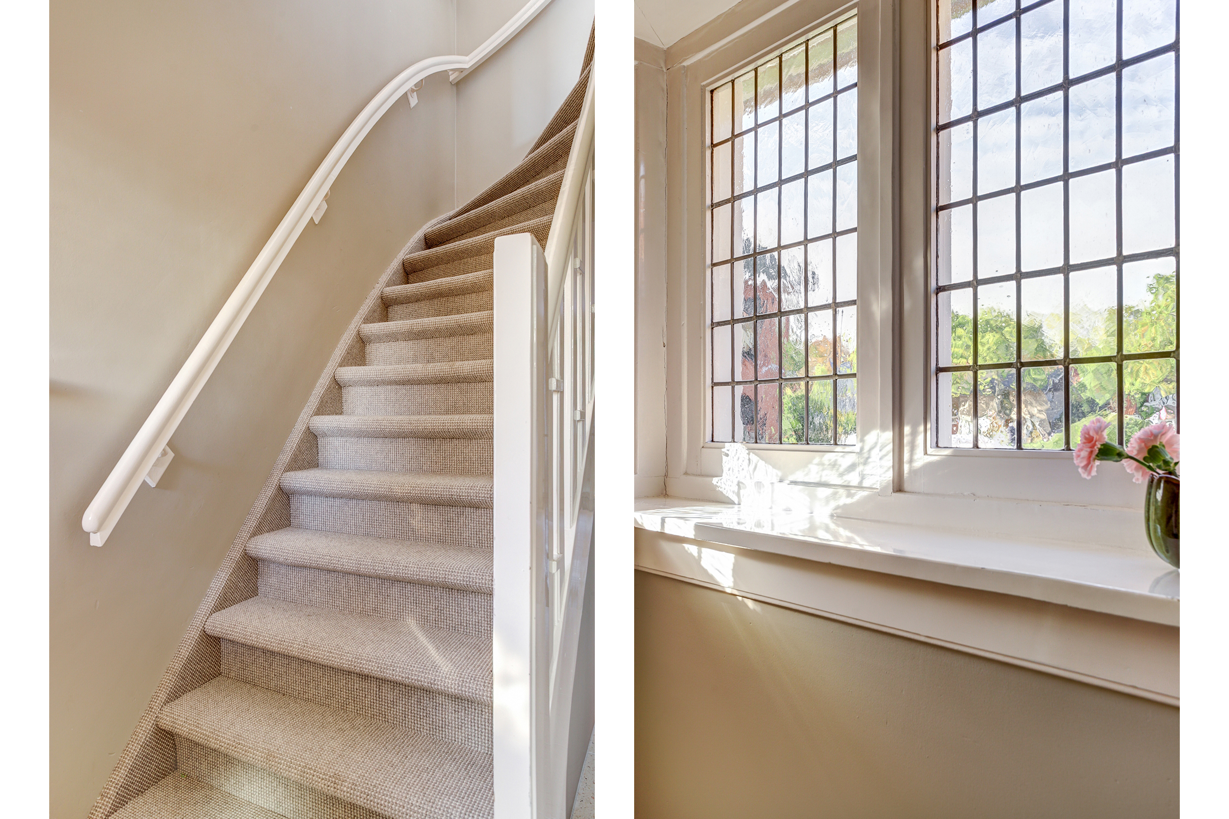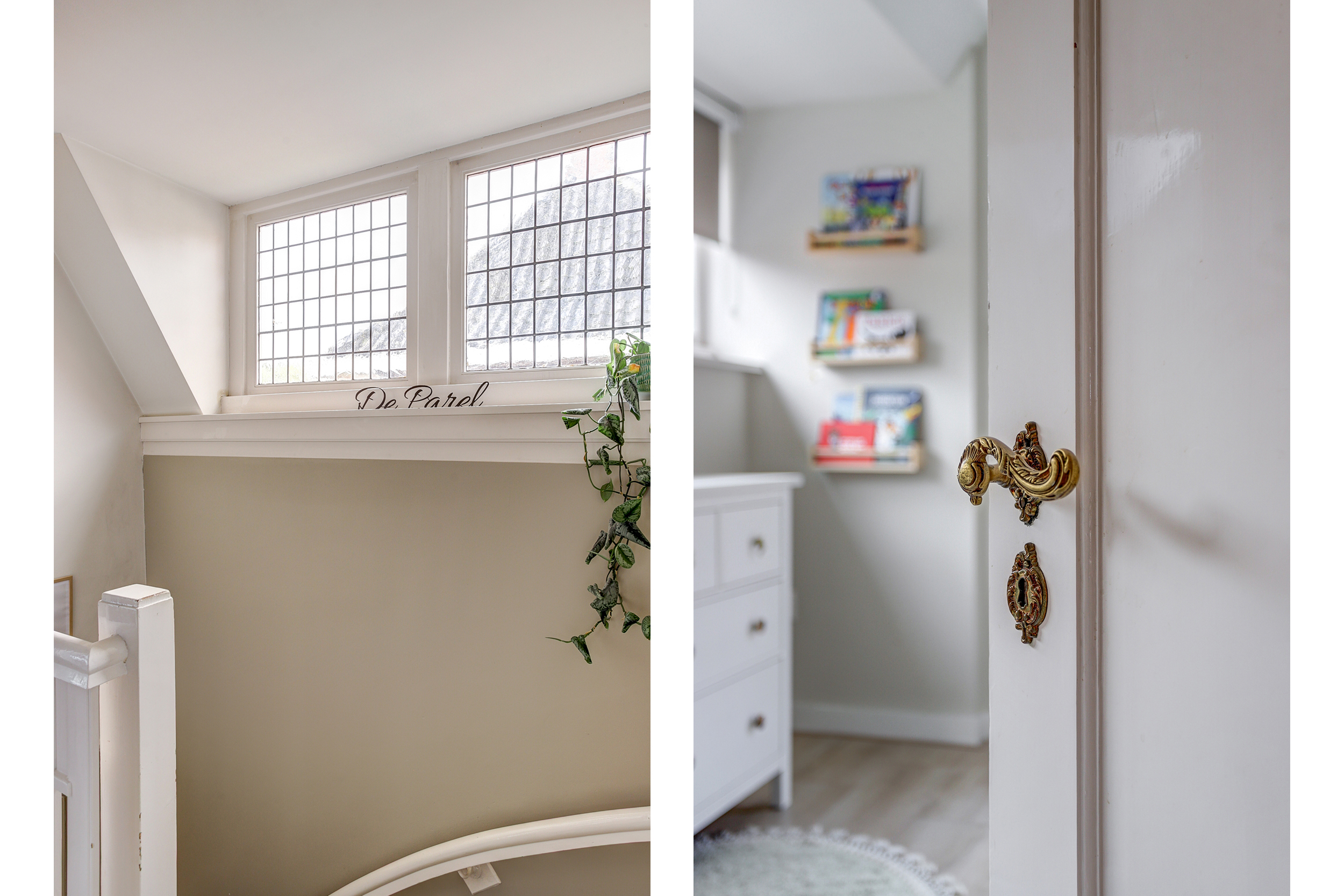 • Authentieke details behouden zoals glas-in-lood, open haard en erker