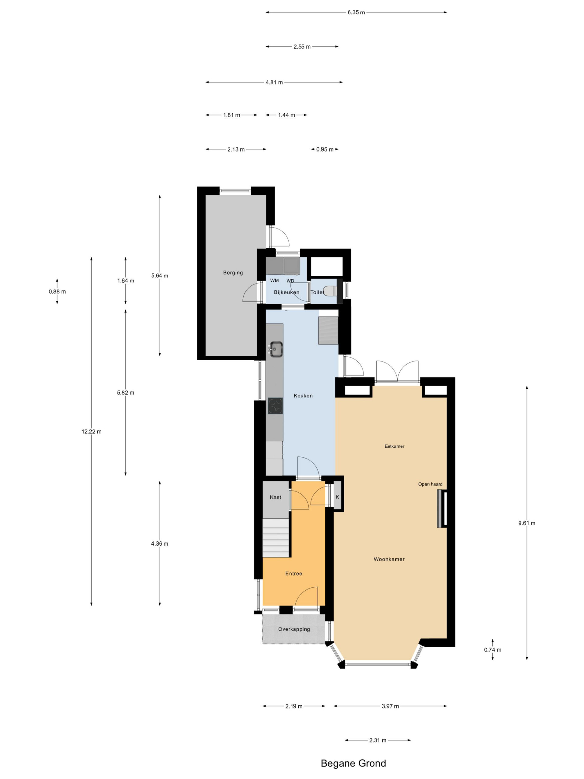 Via de mooie entreeportiek kom je binnen in de hal met een prachtige terrazzo tegelvloer, meterkast en handige voorraadkast. Door de stijlvolle glazendeur in houten look betreed je de keuken met aansluitend de woonkamer. De hele begane grond is voorzien van vloerverwarming.