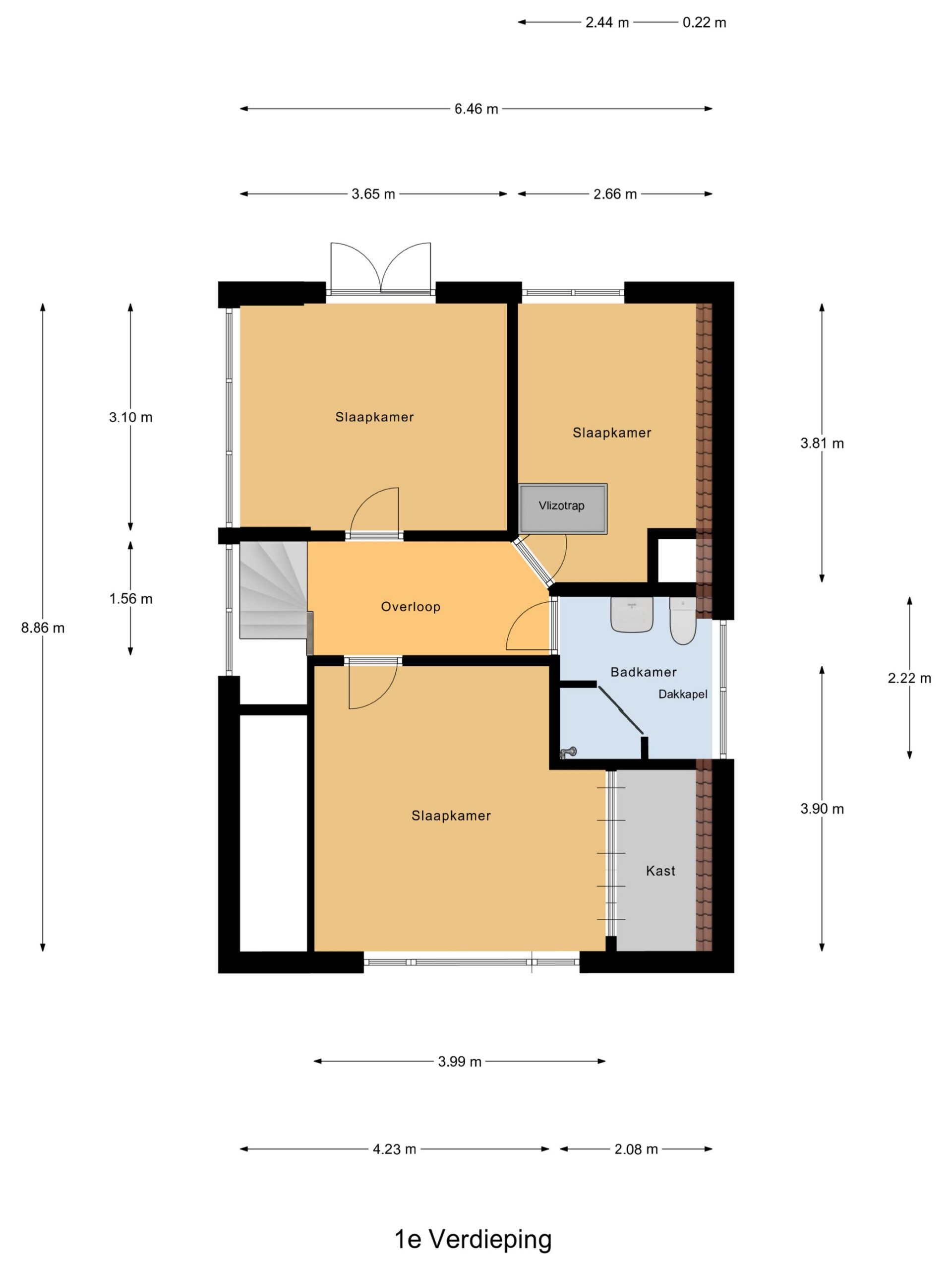 Op de eerste verdieping bevinden zich drie prima slaapkamers, waarvan één met openslaande deuren naar een eventueel te realiseren balkon. De kamers zijn licht, strak afgewerkt en behouden de originele jaren ’30-uitstraling. De badkamer is functioneel en netjes, met mogelijkheden om naar eigen wens te moderniseren.