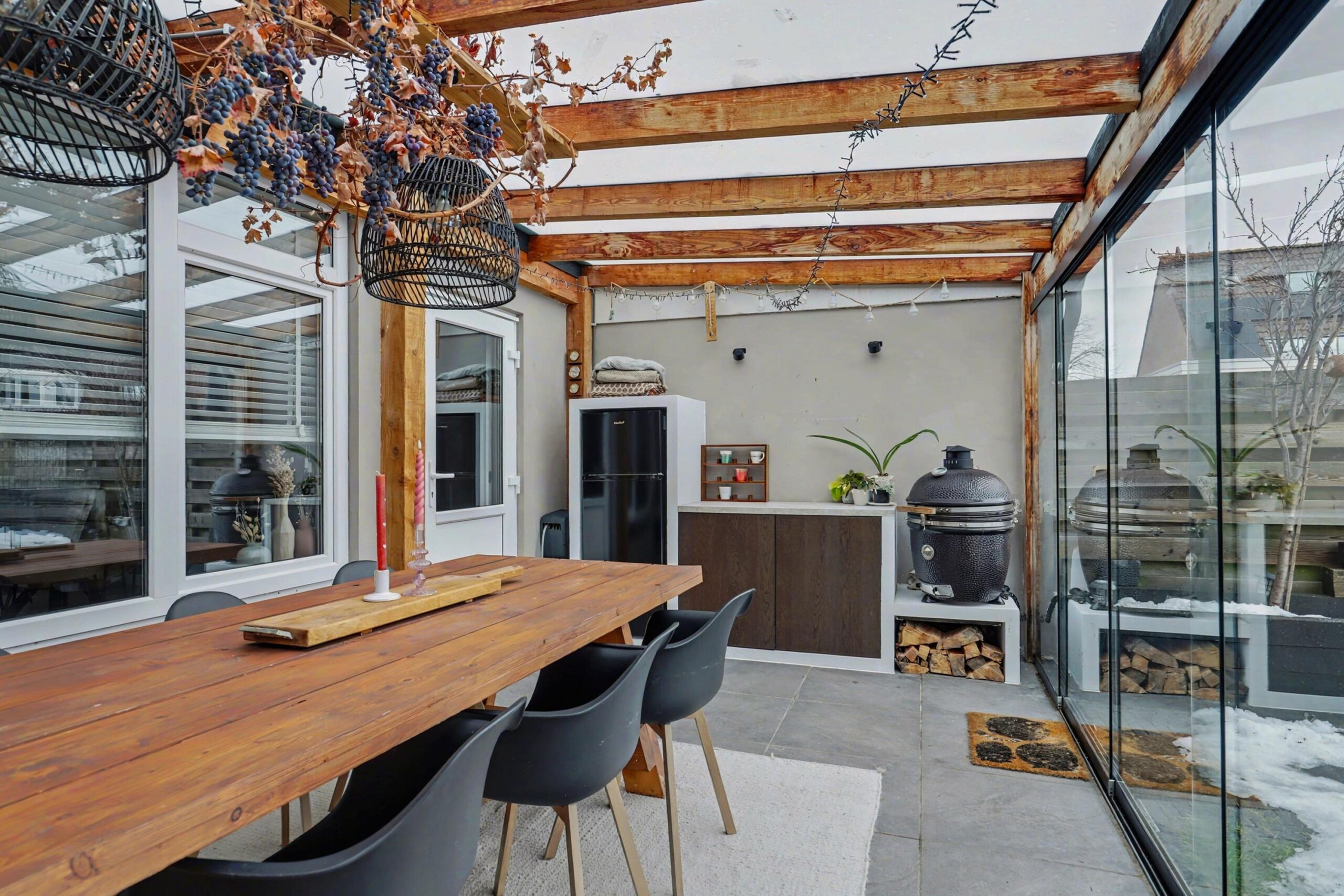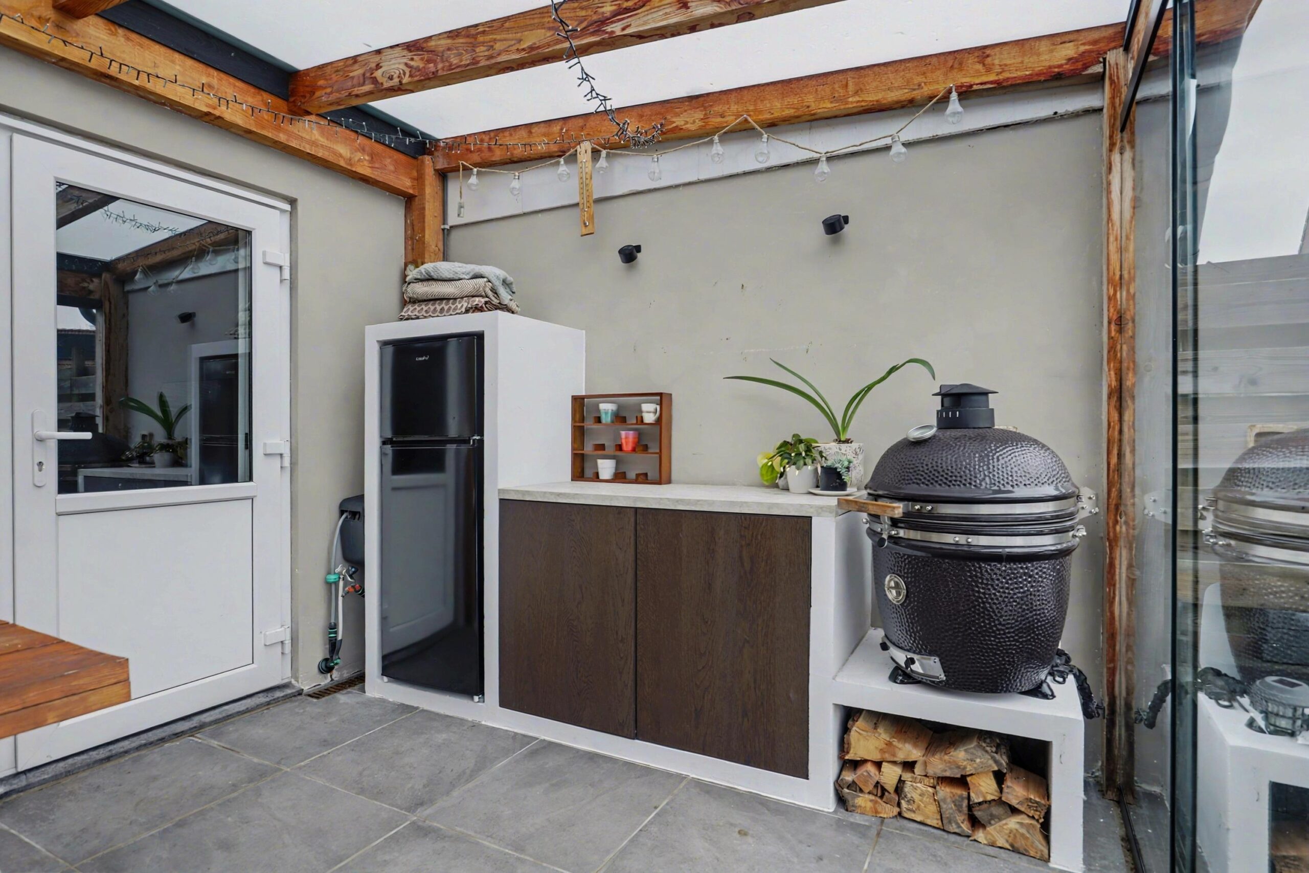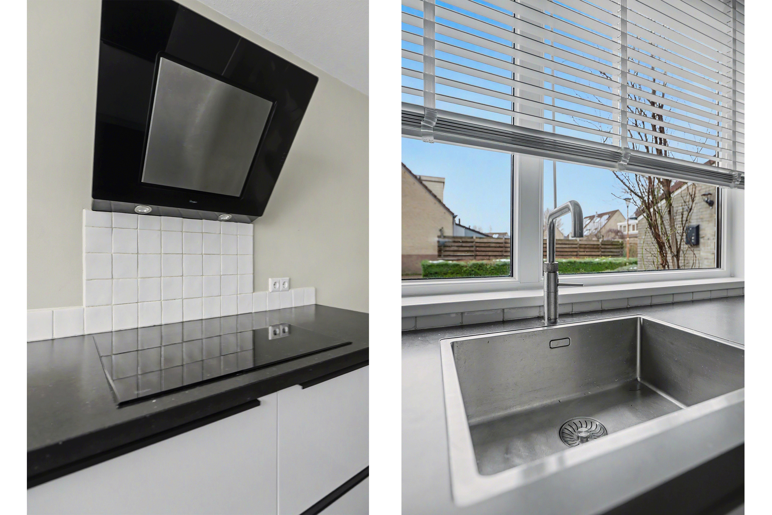 De open keuken is uitgevoerd in een moderne U-opstelling en geplaatst in 2020. De keuken is voorzien van een composiet werkblad, inductiekookplaat, afzuigkap, vaatwasser, combi-oven en een koel-vriescombinatie. Dankzij de vele lades en kasten is er volop bergruimte.
