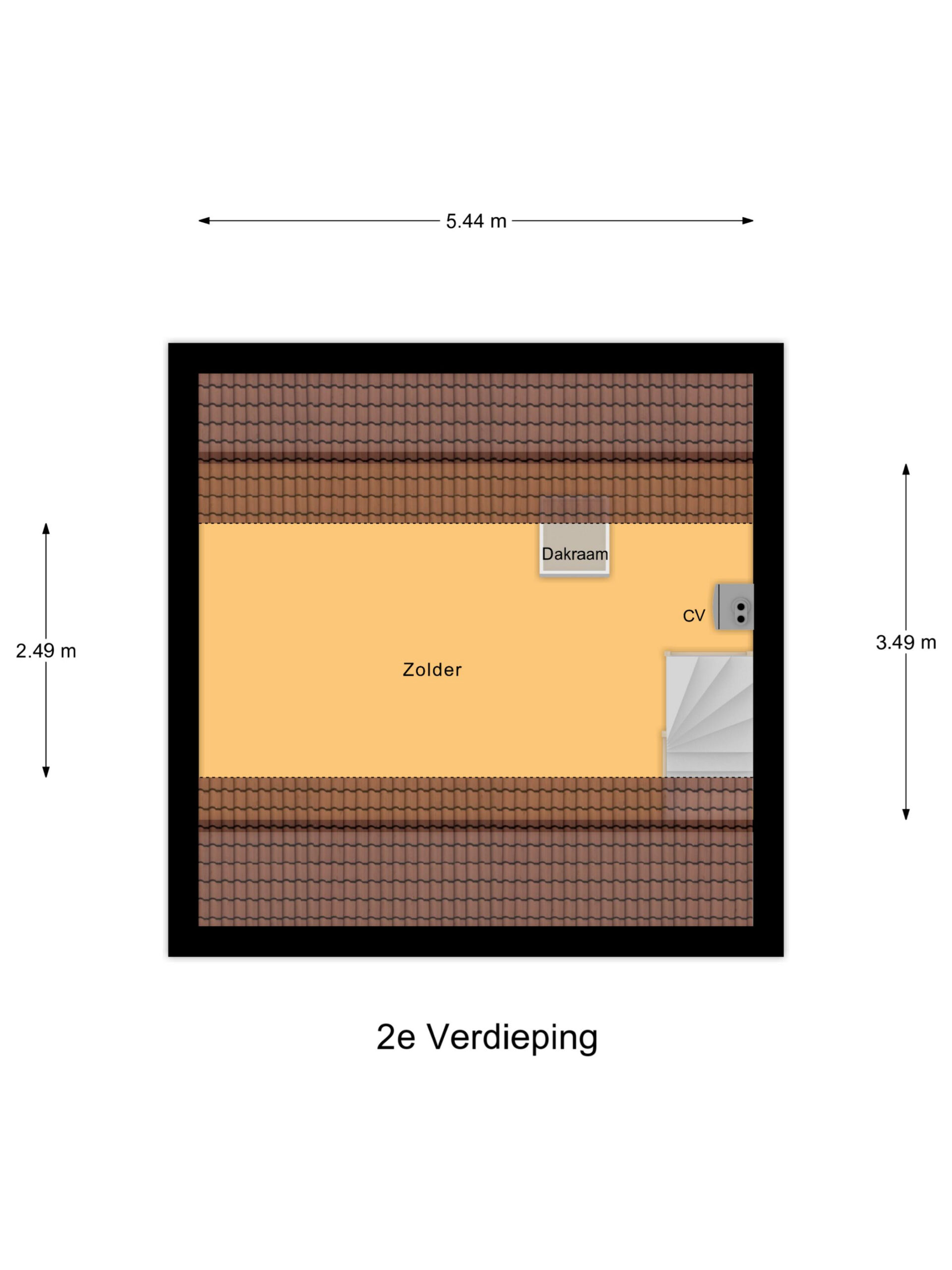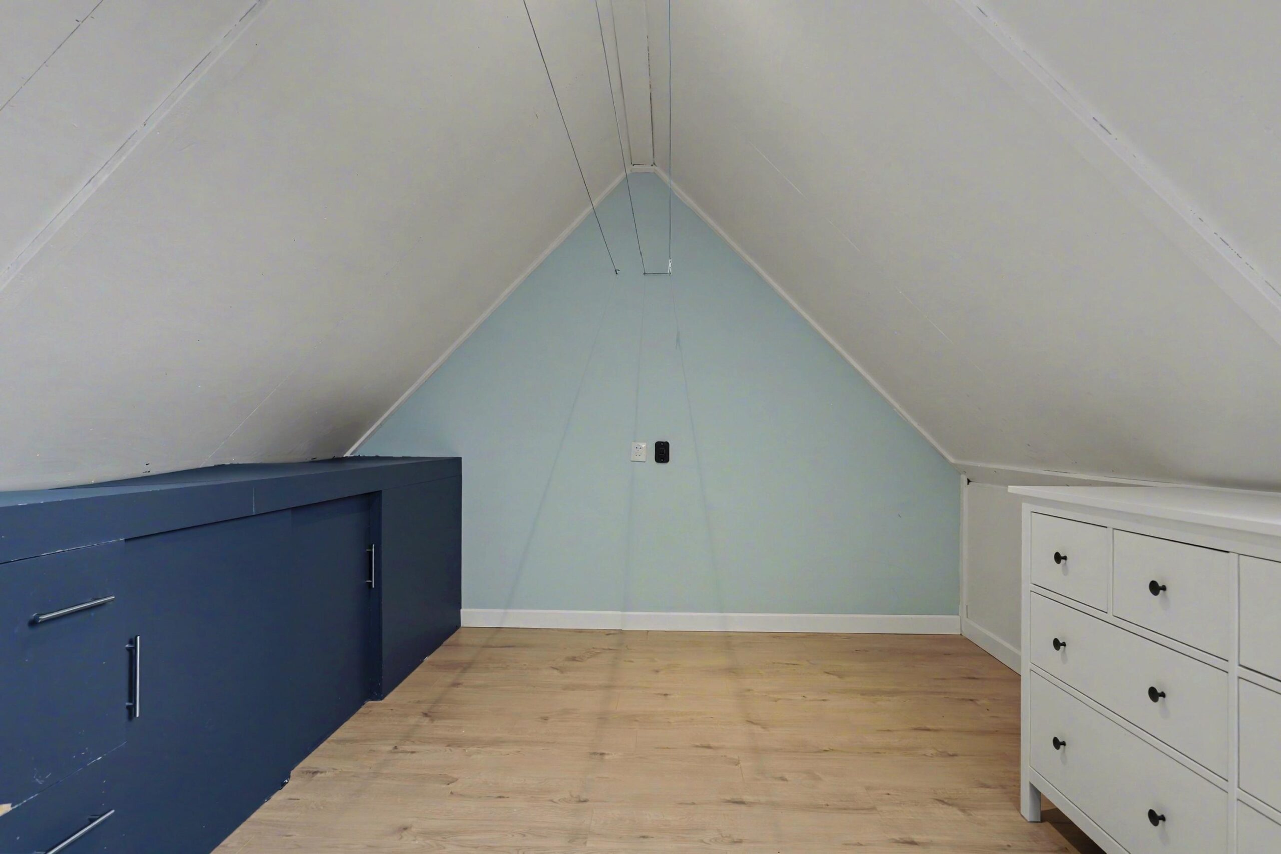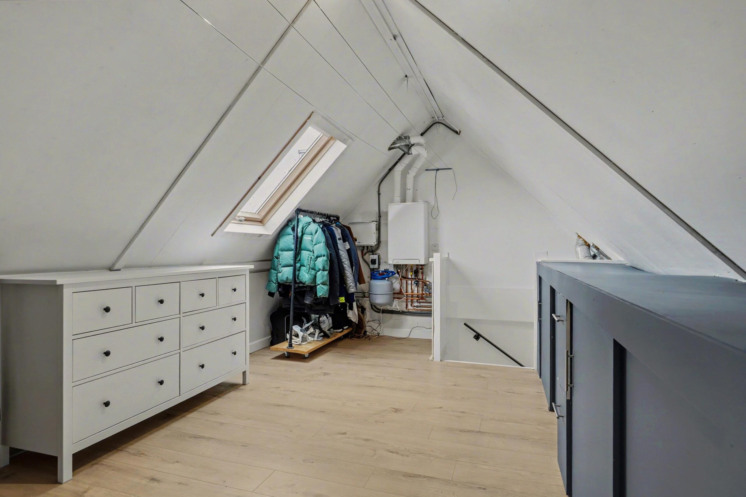 De tweede verdieping is bereikbaar via een vaste trap en bestaat uit een ruime, open zolder. Hier bevinden zich de wasmachine- en drogeropstelling, de cv-ketel (2021), de omvormer van de zonnepanelen en een dakraam. Deze verdieping is desgewenst goed in te delen als vierde slaapkamer of werkruimte.