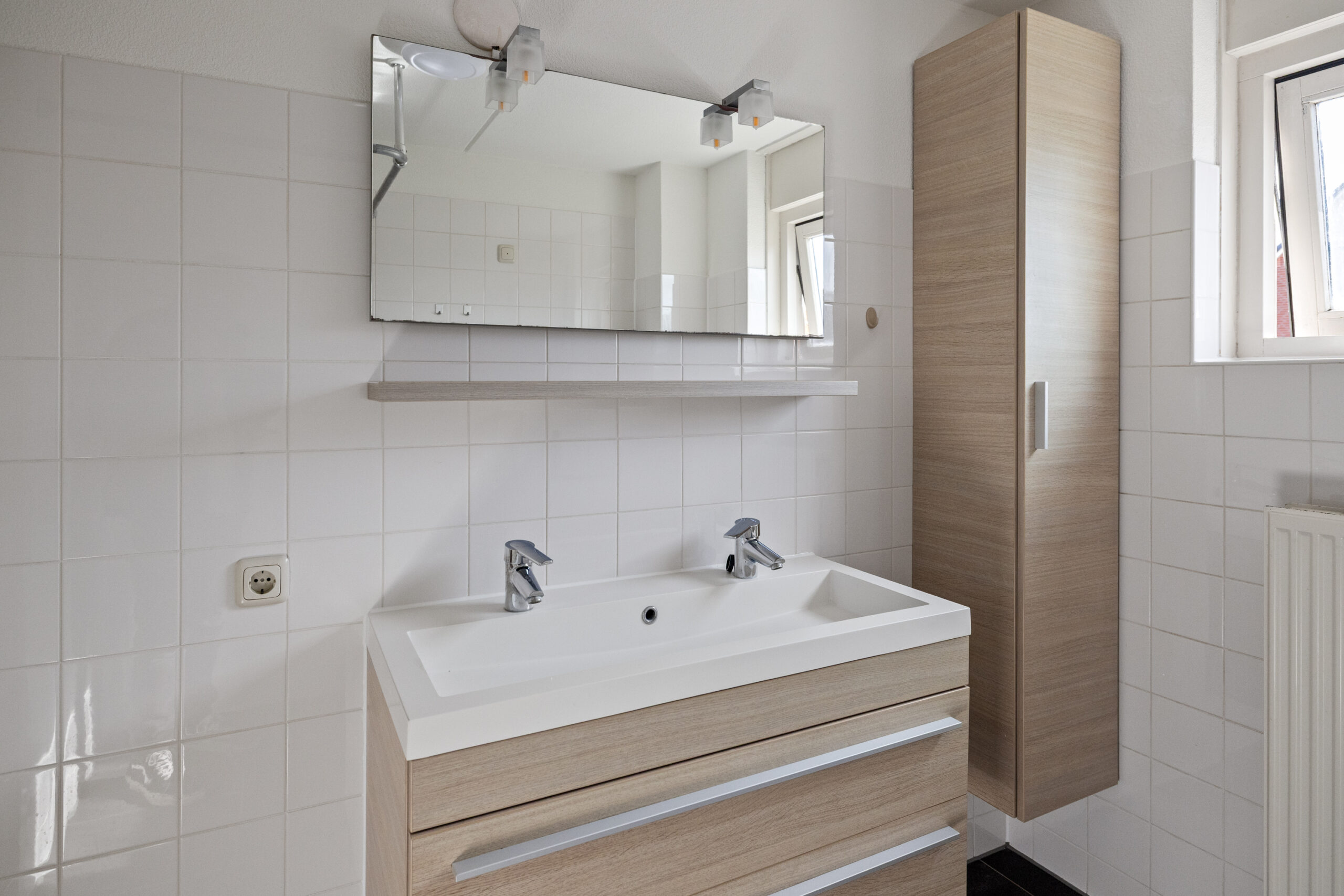Op de eerste etage bevinden zich drie ruime slaapkamers en een moderne badkamer. Deze is stijlvol afgewerkt en voorzien van een douche, wastafelmeubel en tweede toilet.