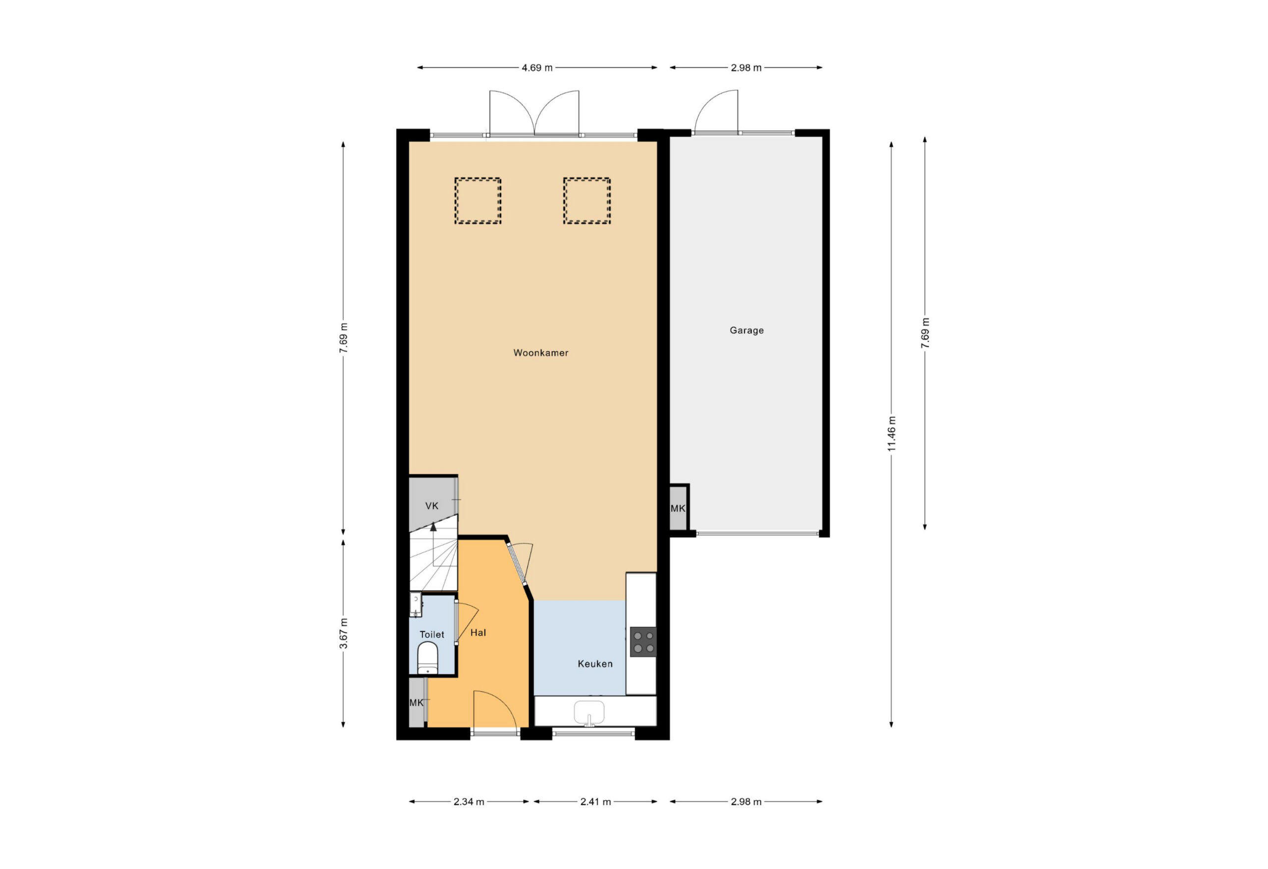 2. De overige inpandige ruimtes is 23 m² (garage);