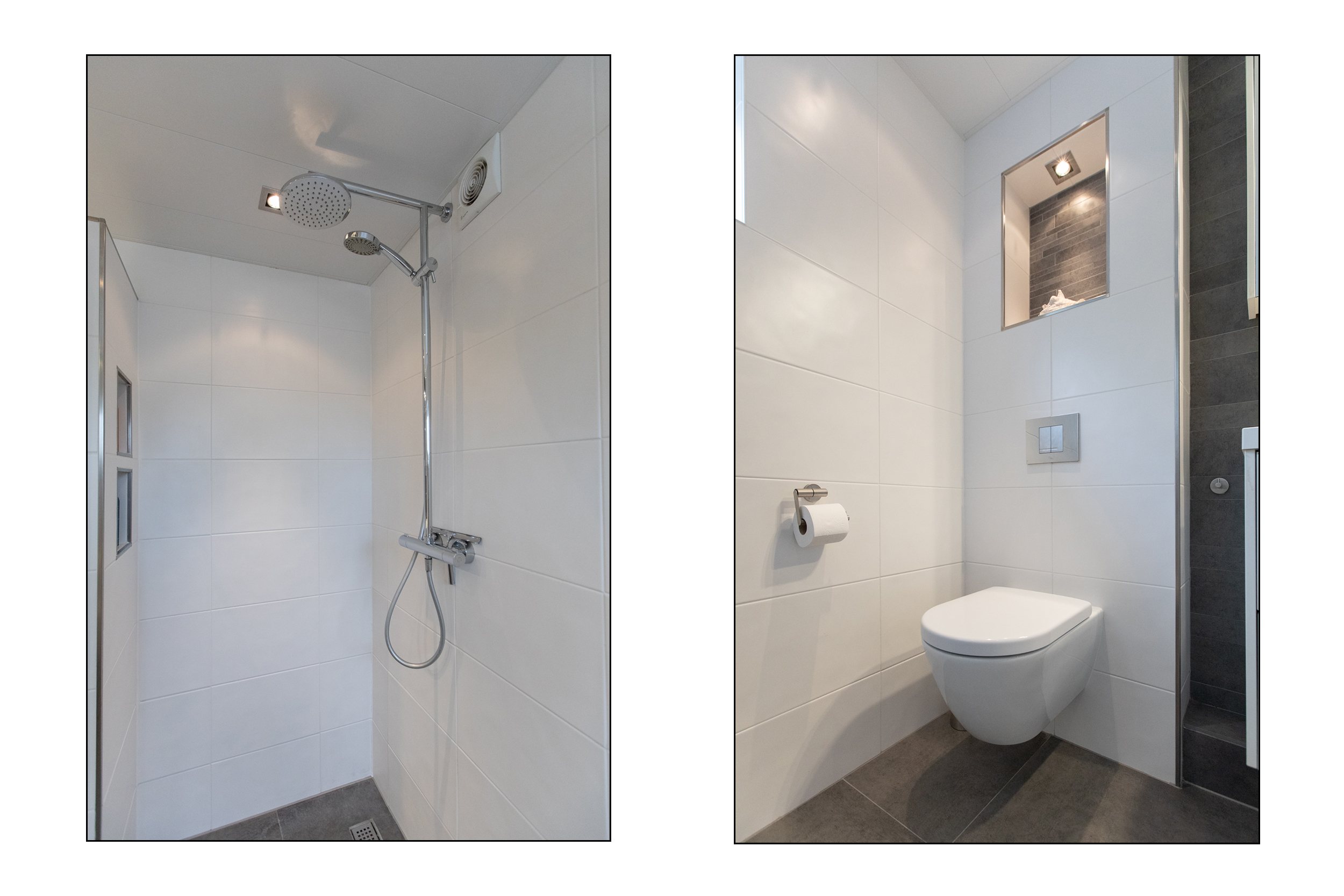 • Badkamervoorzieningen Toilet, Wastafel, Wastafelmeubel, Inloopdouche, Vloerverwarming