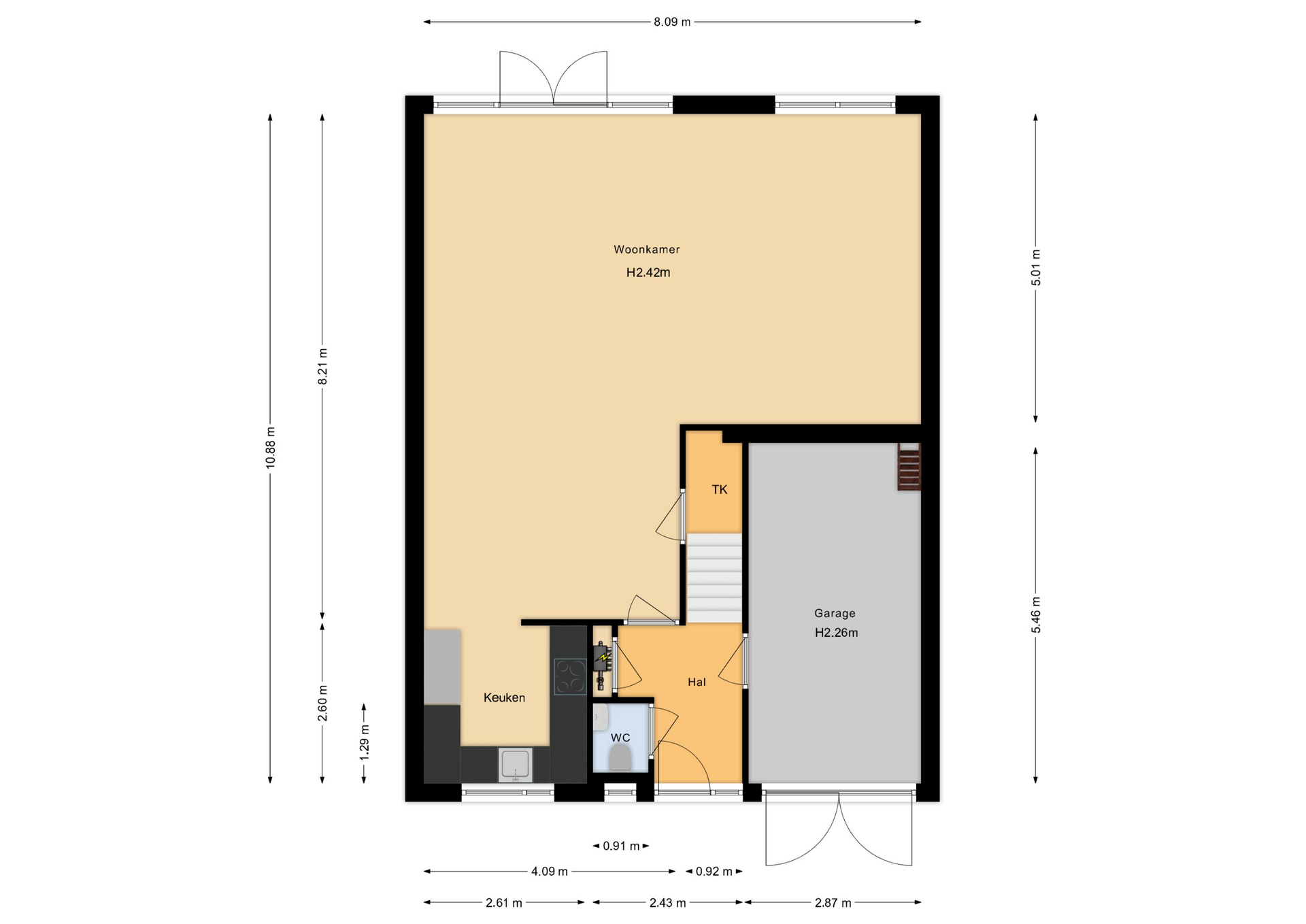 • Achtertuin 64 m2 (7.53 meter diep en 8.5 meter breed)