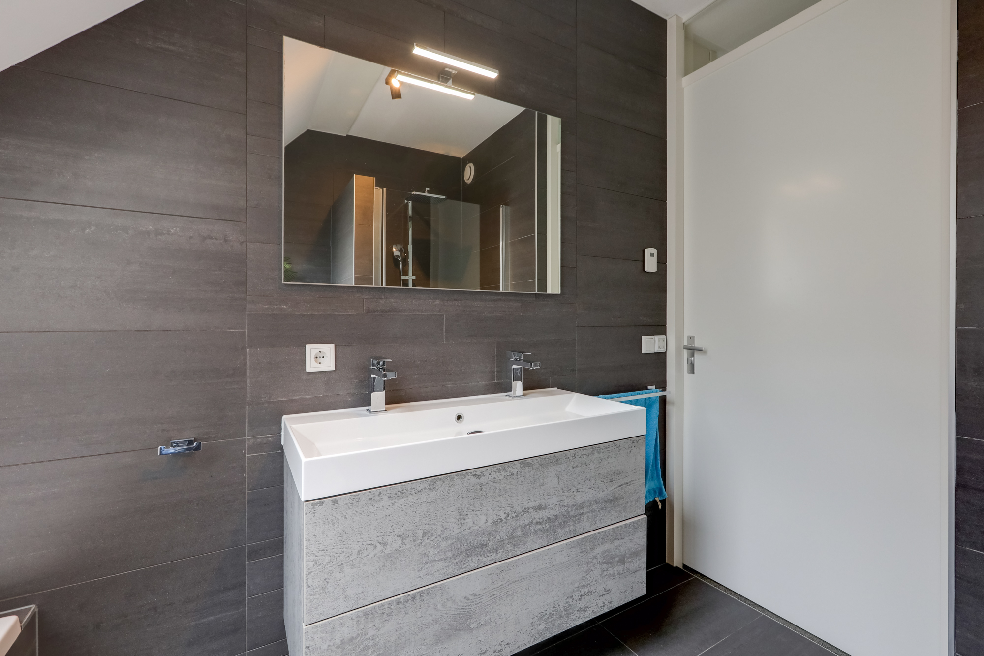 Via de overloop bereik je drie ruime slaapkamers. De moderne badkamer is voorzien van een ruime inloopdouche, een ligbad, dubbele wastafel met meubel en een tweede toilet.