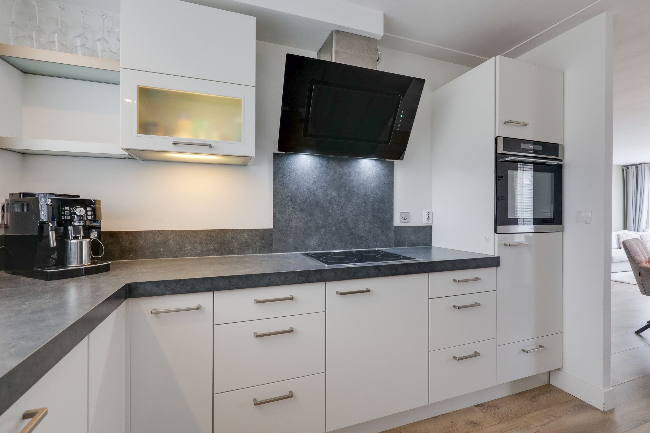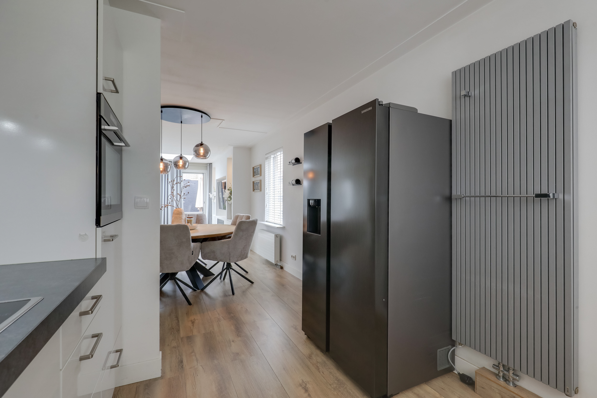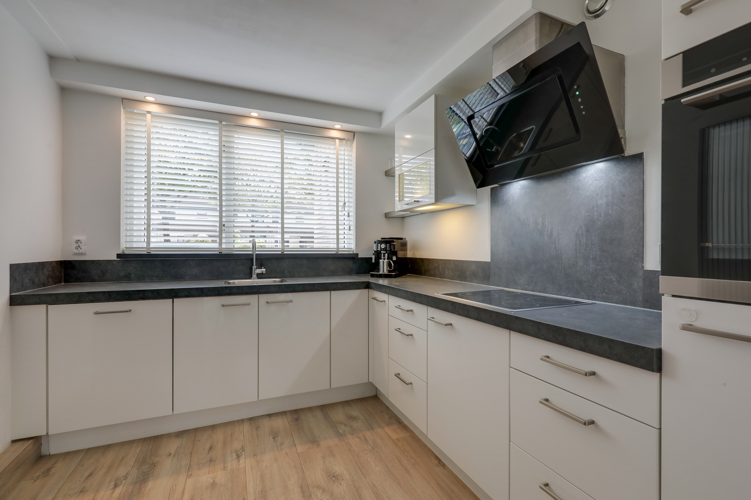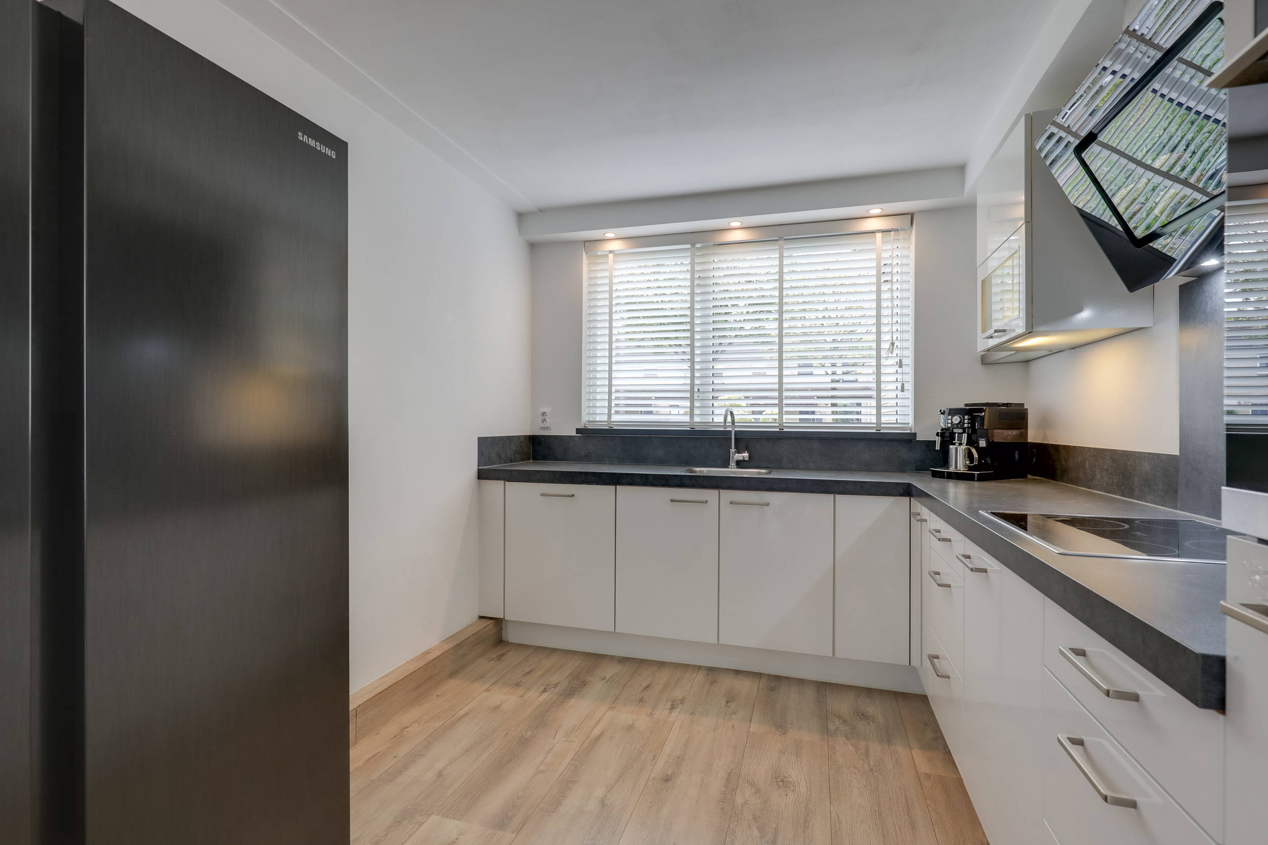 De hoekkeuken (circa 2010) is uitgevoerd in een neutrale kleurstelling en voorzien van diverse inbouwapparatuur zoals een vaatwasser, combi-oven/magnetron, afzuigkap en keramische kookplaat. Aan de voorzijde is de hal in 2024 uitgebouwd, wat zorgt voor een ruim en praktisch entreegedeelte.