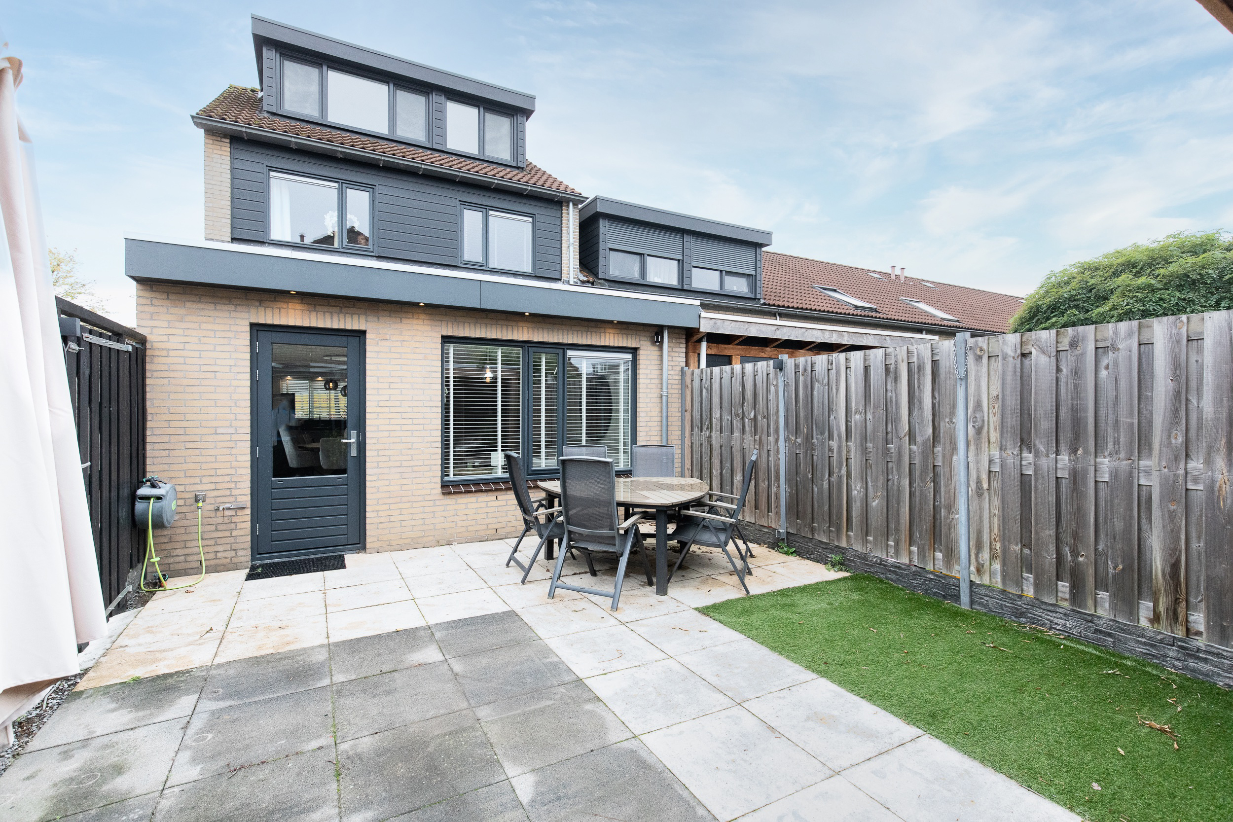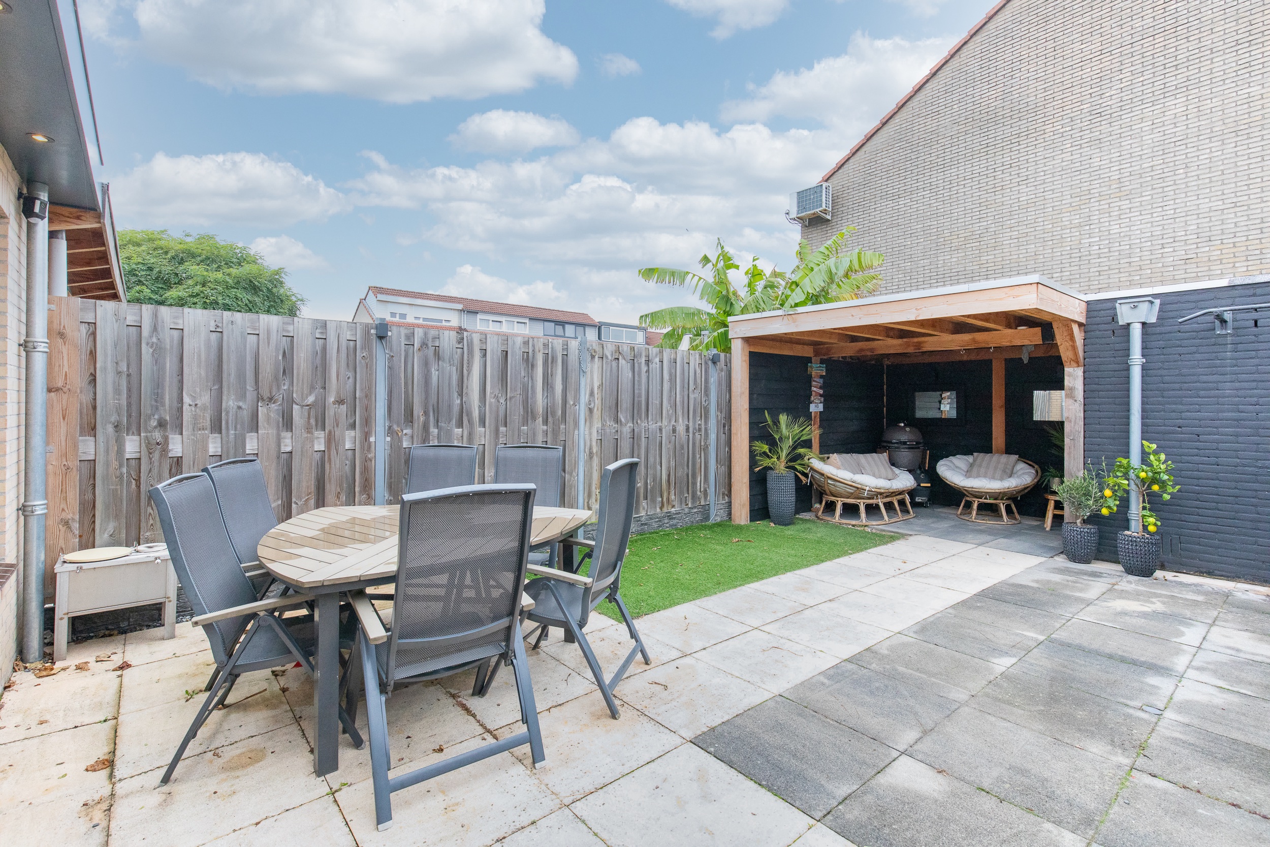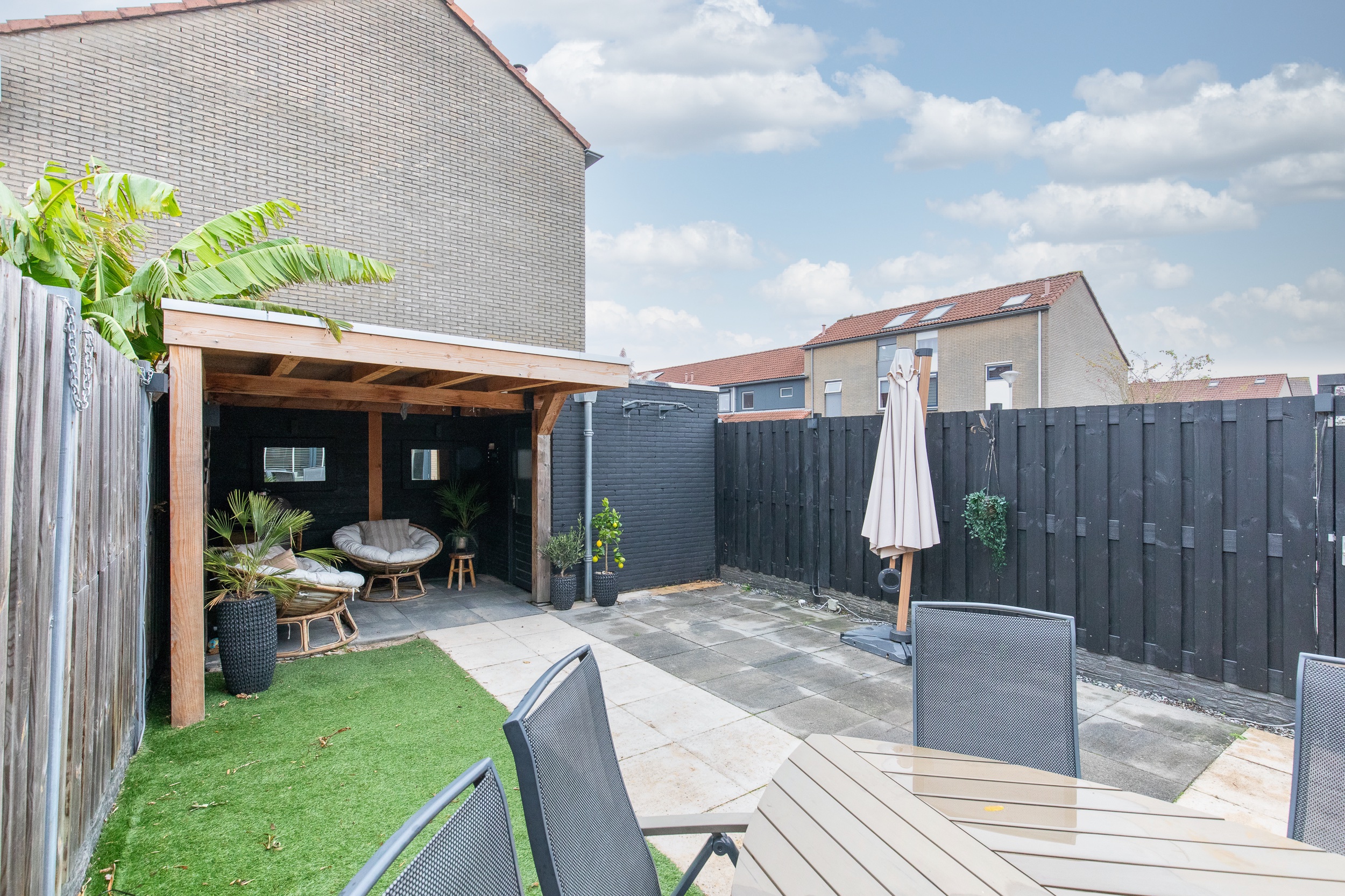 De achtertuin is modern aangelegd met vernieuwde schuttingen, een overkapping aan de berging en meerdere stroompunten. Een heerlijke plek om te ontspannen of gezellig buiten te zitten.