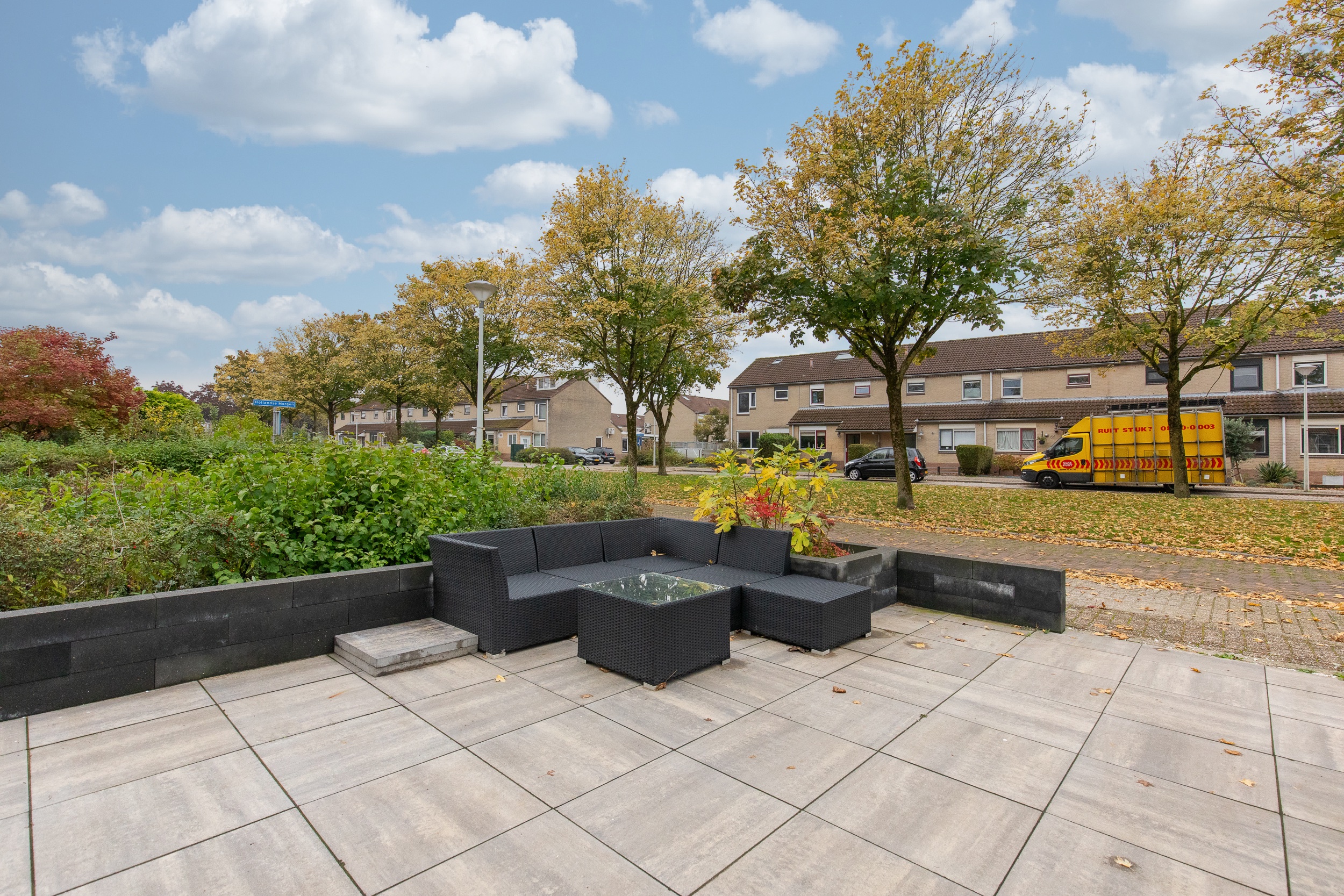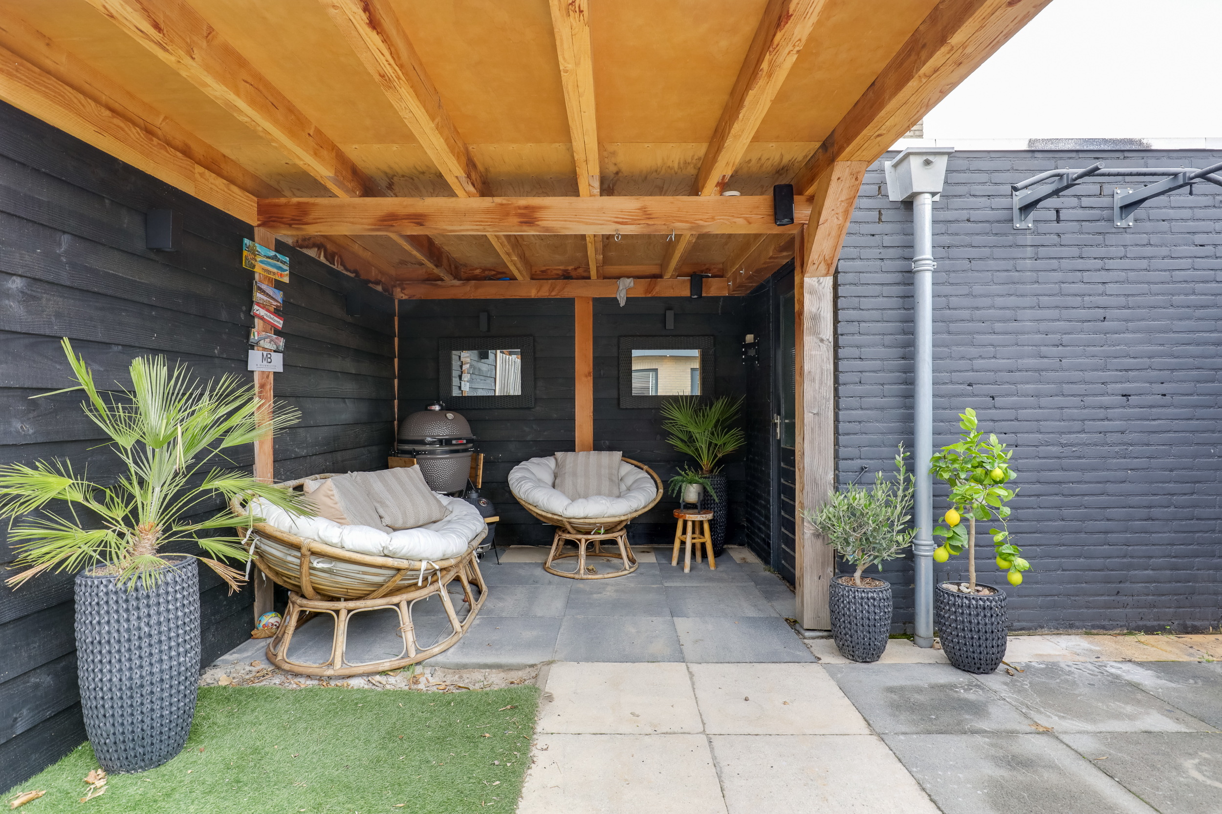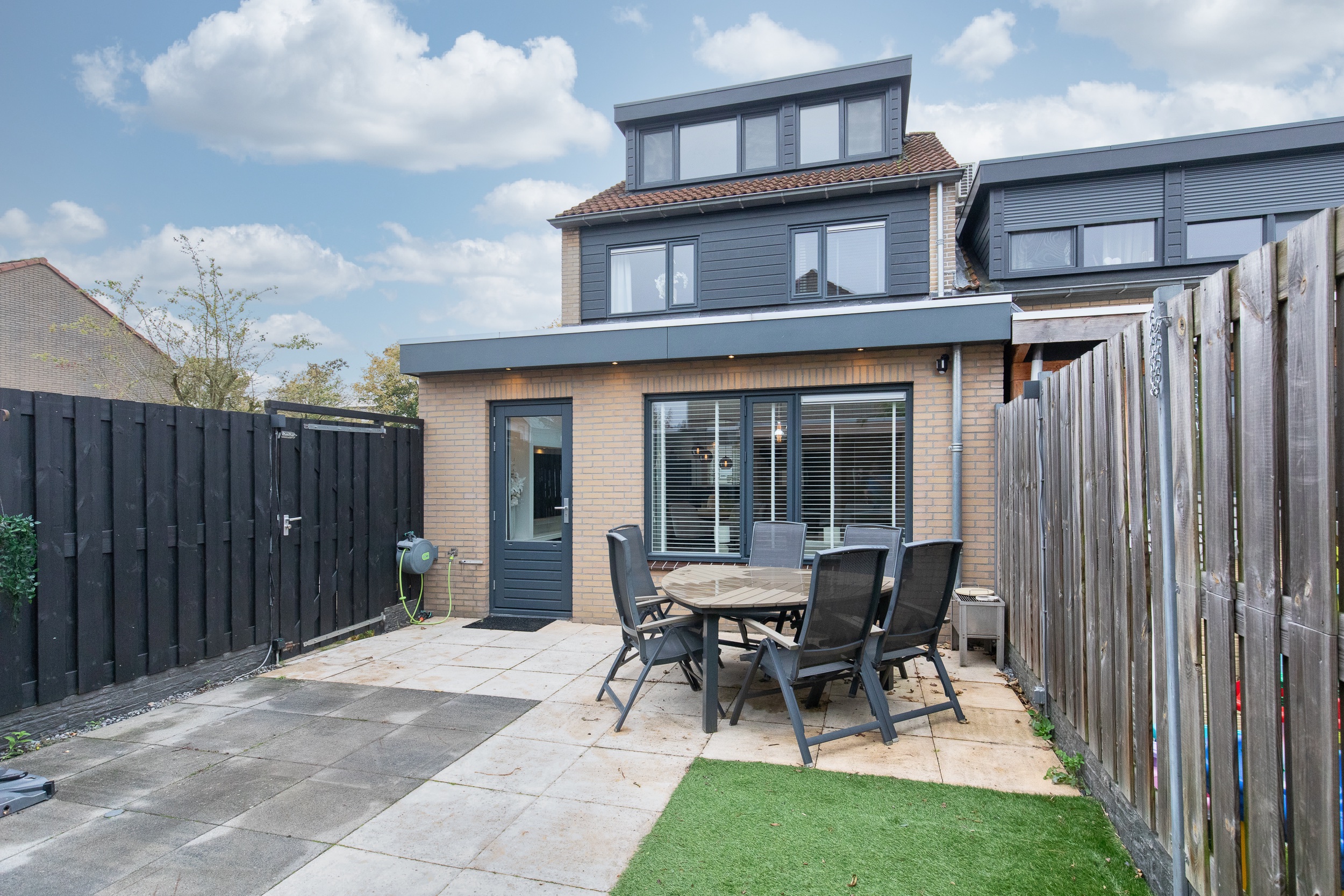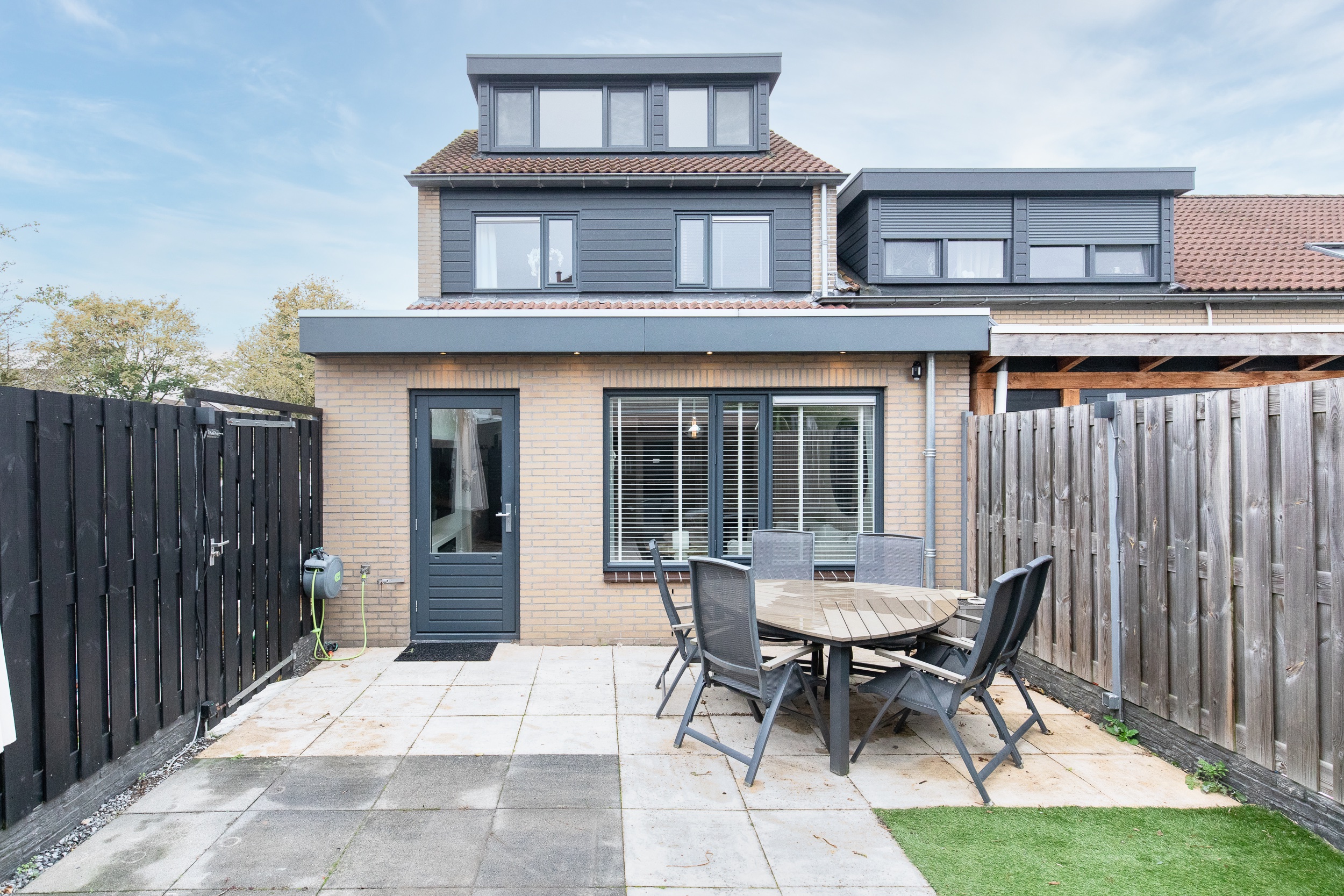 De achtertuin is modern aangelegd met vernieuwde schuttingen, een overkapping aan de berging en meerdere stroompunten. Een heerlijke plek om te ontspannen of gezellig buiten te zitten.