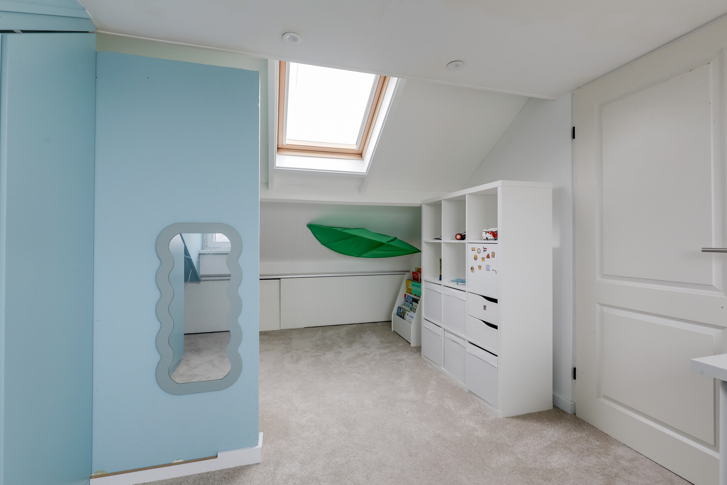 De tweede verdieping is bereikbaar via een vaste trap en in 2021-2022 gemoderniseerd. Hier vind je een kunststof dakkapel, airconditioning, rolluiken en voldoende ruimte voor een vierde slaapkamer of werkkamer.