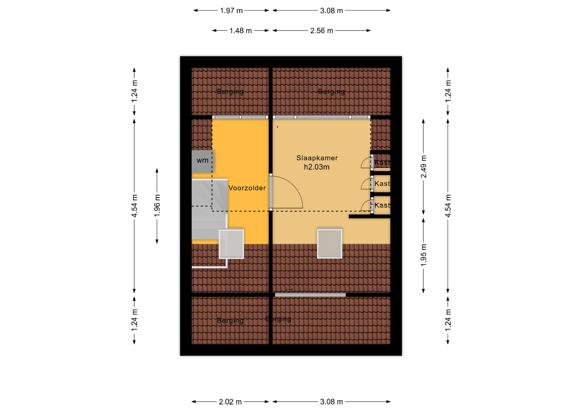 De tweede verdieping is bereikbaar via een vaste trap en in 2021-2022 gemoderniseerd. Hier vind je een kunststof dakkapel, airconditioning, rolluiken en voldoende ruimte voor een vierde slaapkamer of werkkamer.