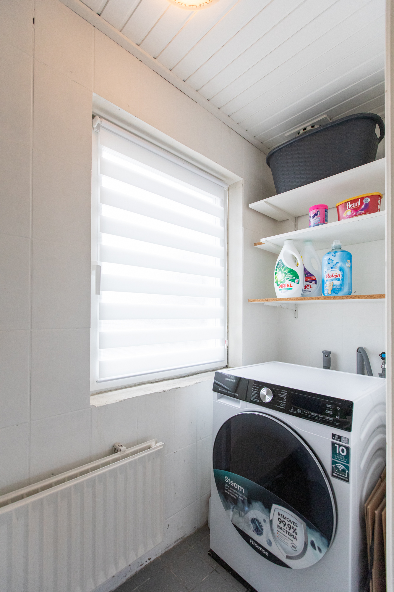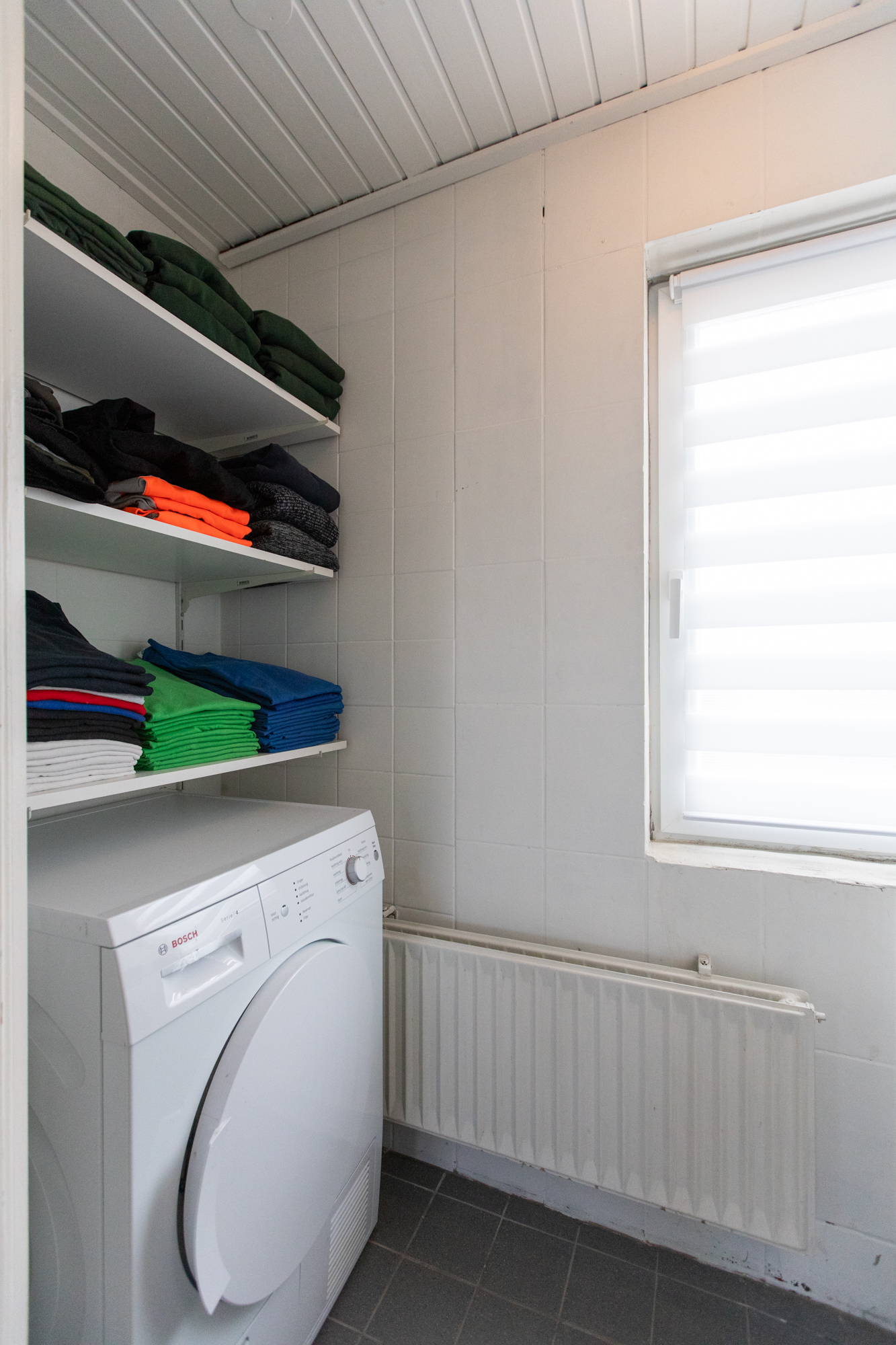 • Voormalige doucheruimte aan de voorzijde is omgebouwd tot wasruimte met aansluiting voor wasmachine en droger
