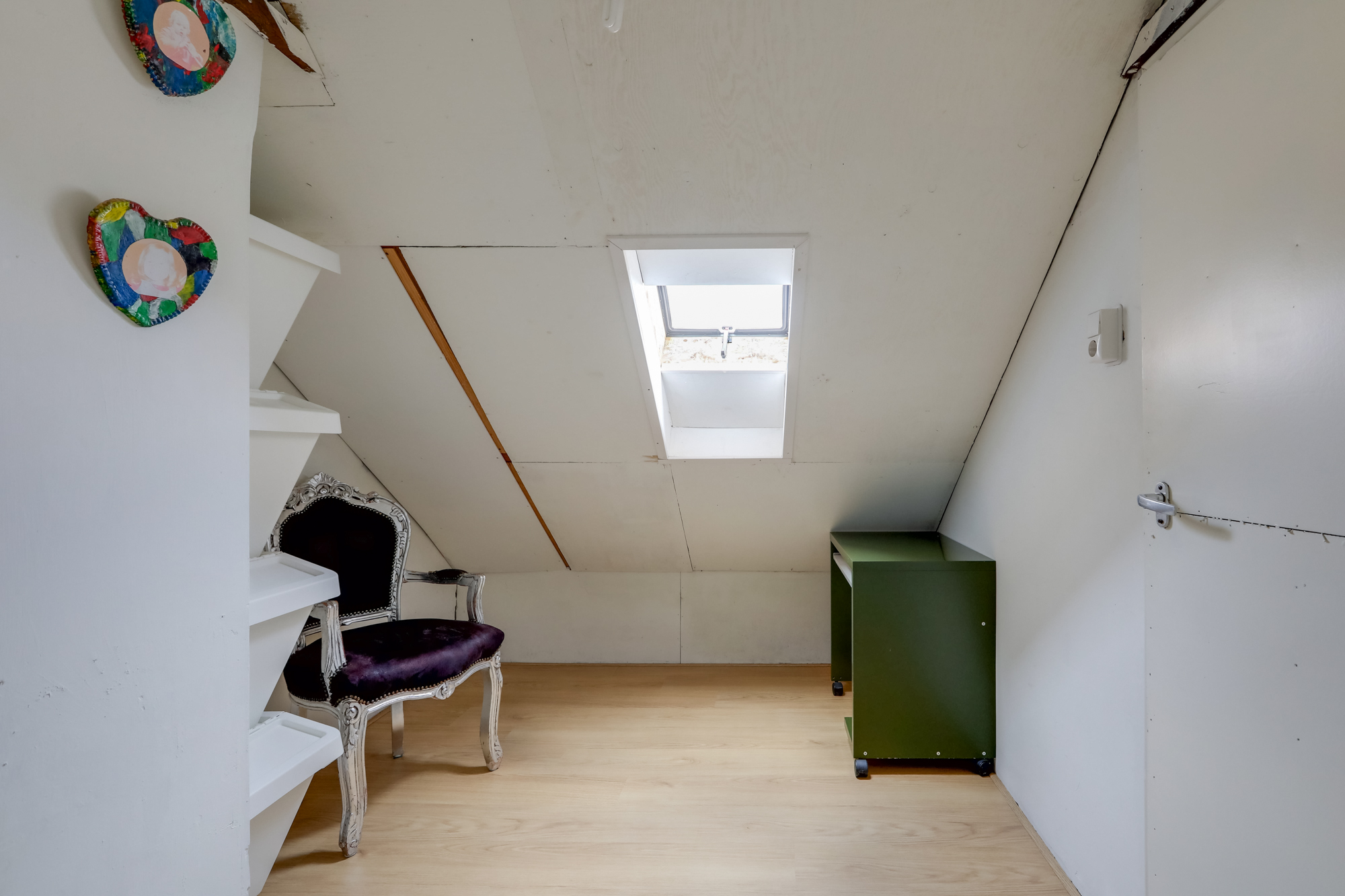 • Via vaste trap te bereiken voorzolder met knieschotten voor extra bergruimte