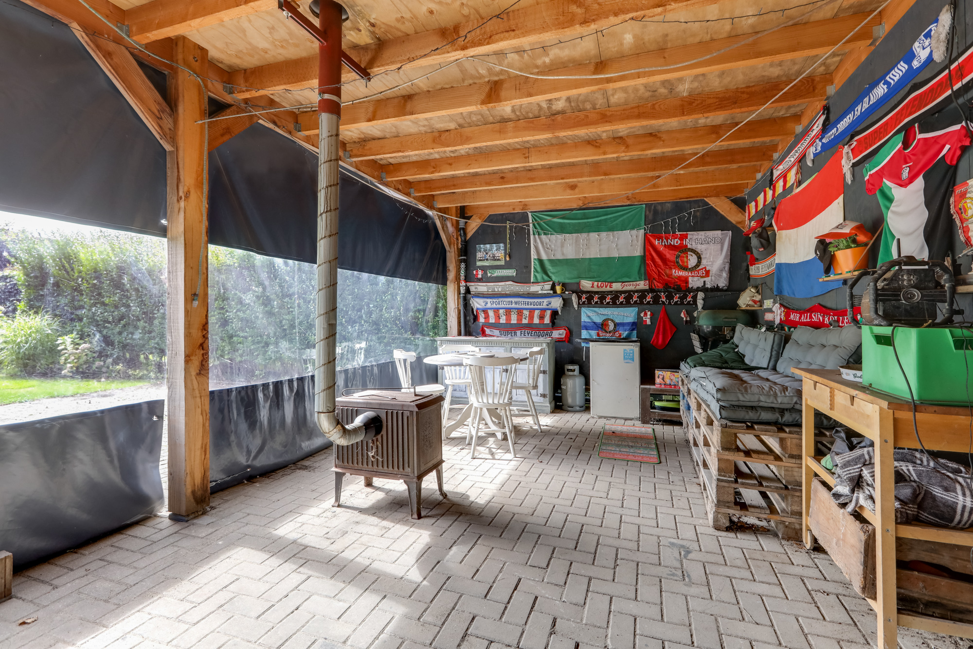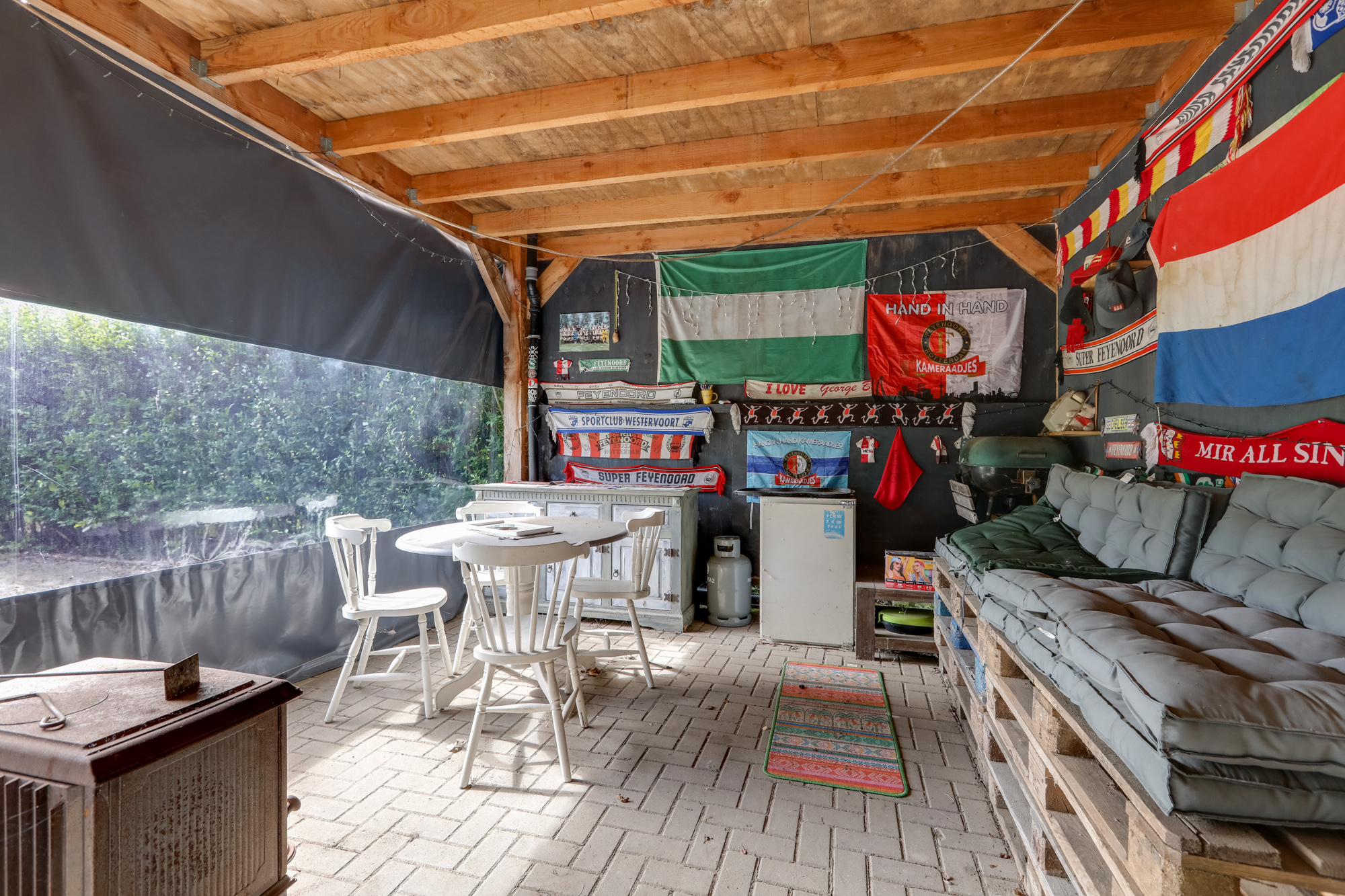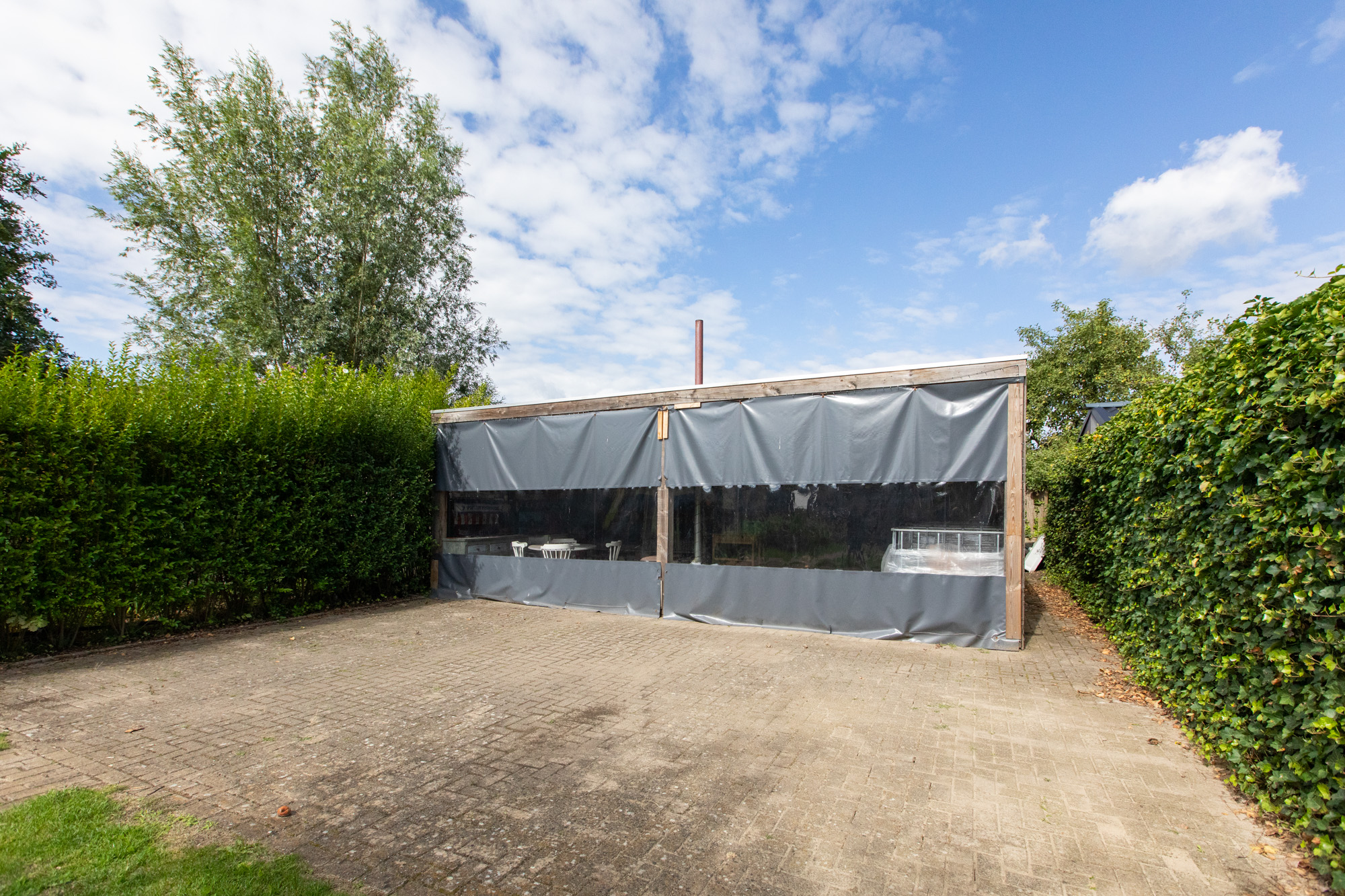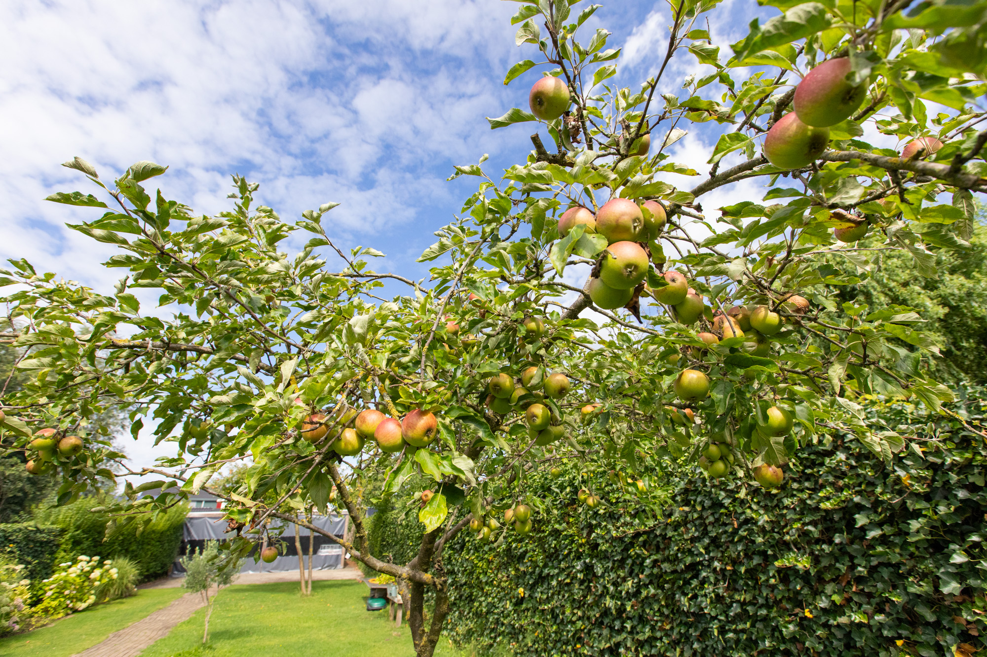Riante achtertuin met fraaie vrije ligging, voorzien van diverse vaste beplanting, fruitbomen en een groot gazon. Achterin de tuin bevindt zich een grote overkapping / schuur met veel opslagruimte, ideaal voor hobby’s of als opslagplek voor zzp’ers. Aan de voorzijde van de woning is een ruime oprit aanwezig.