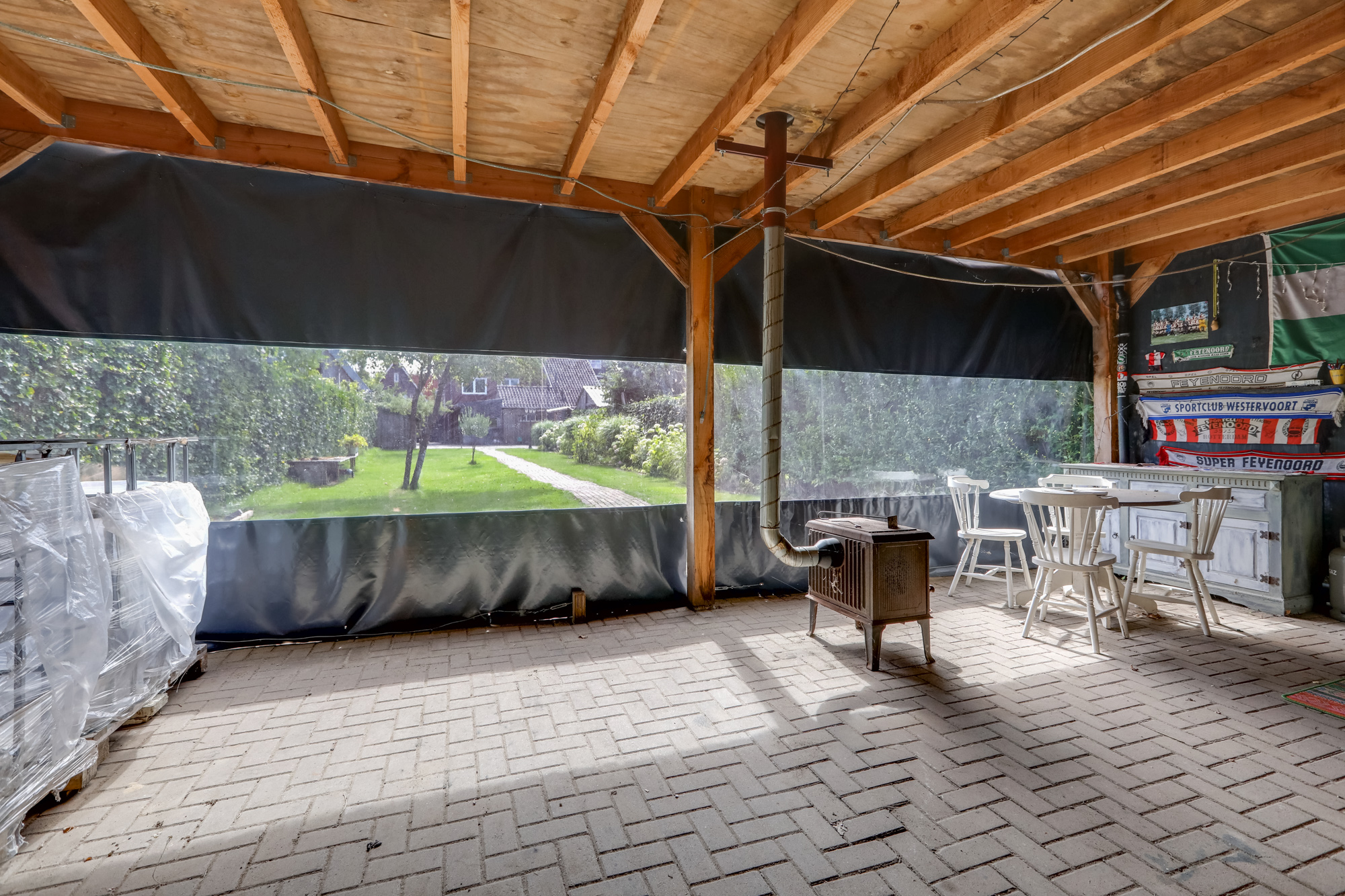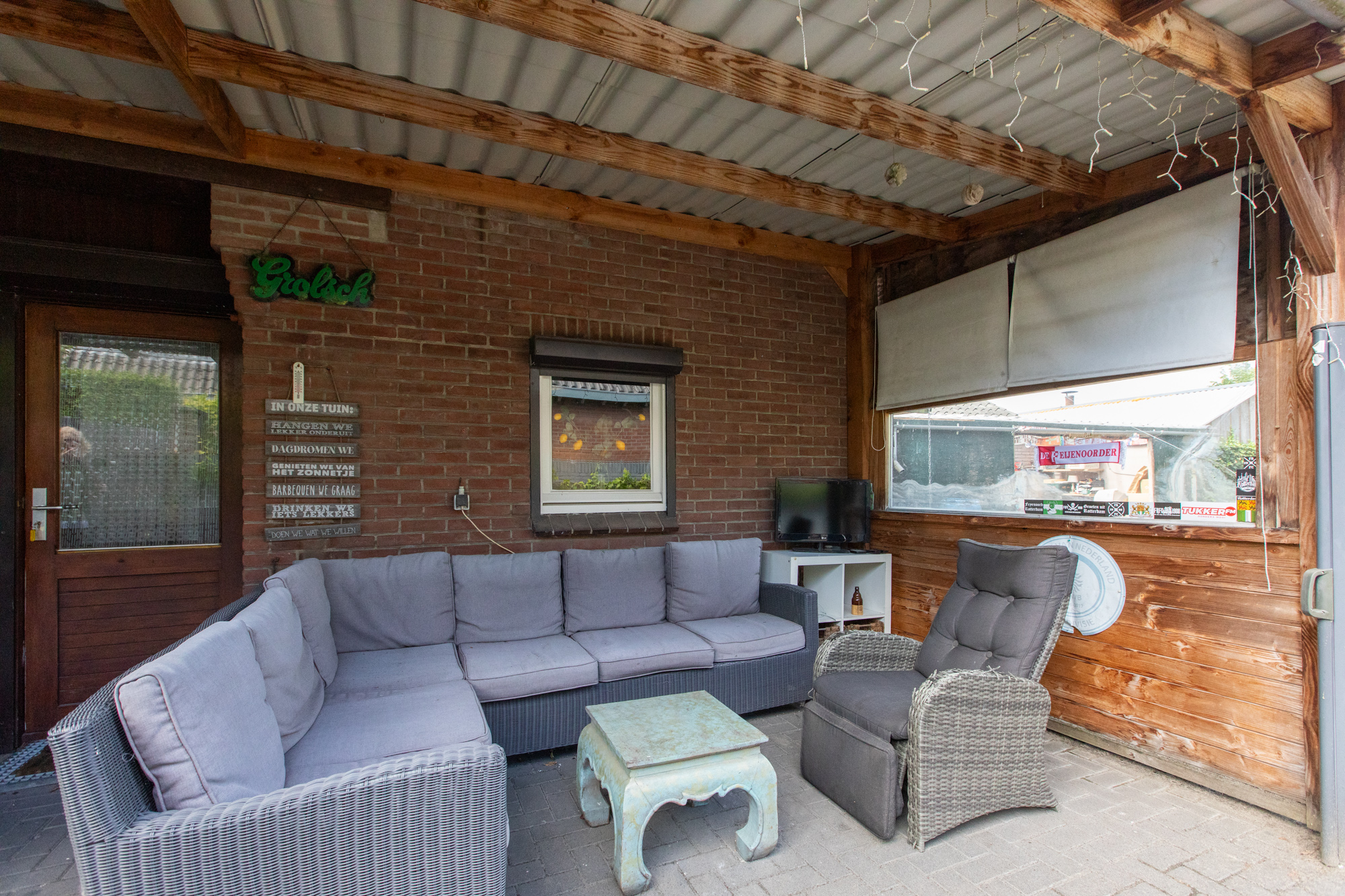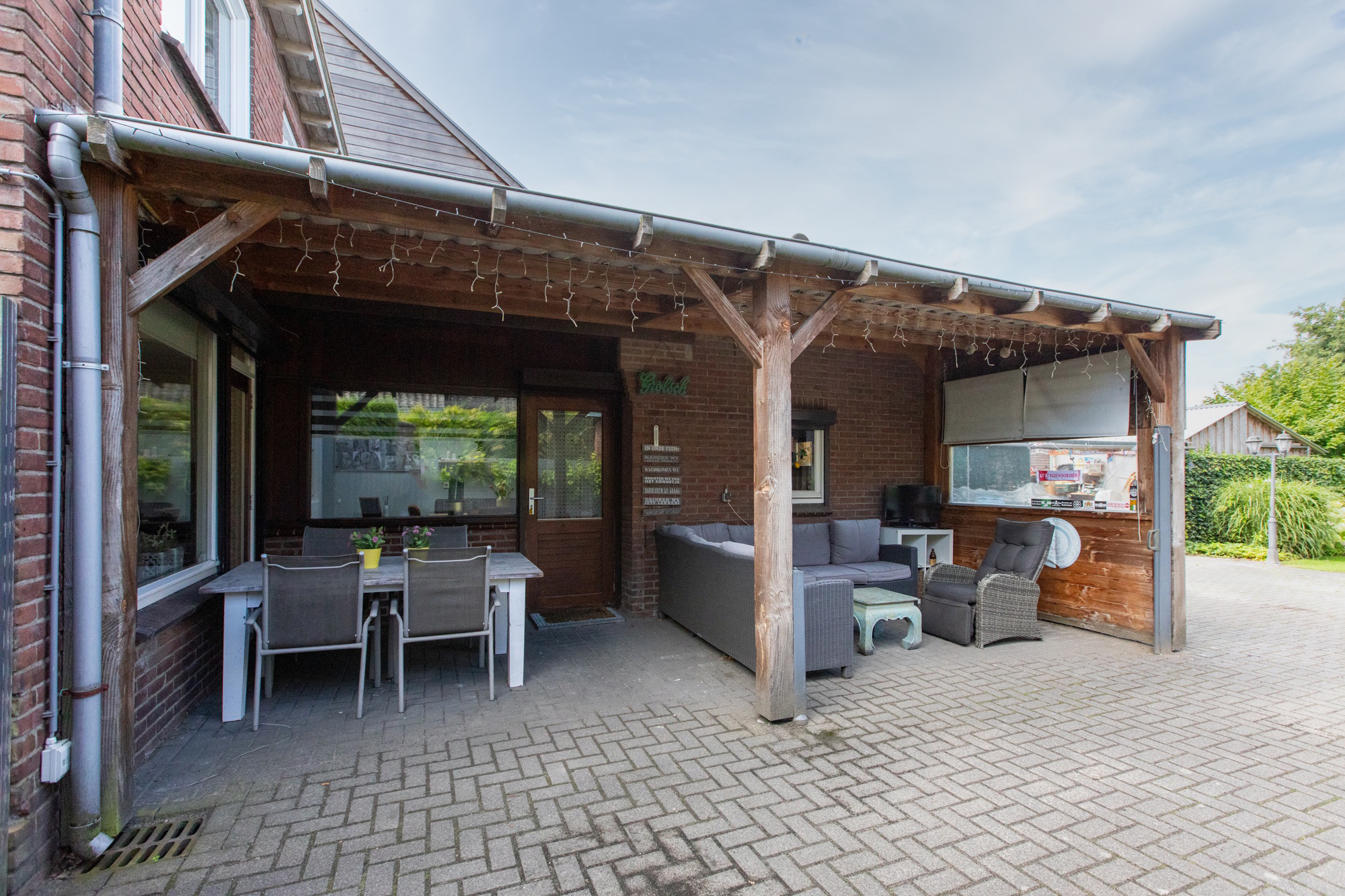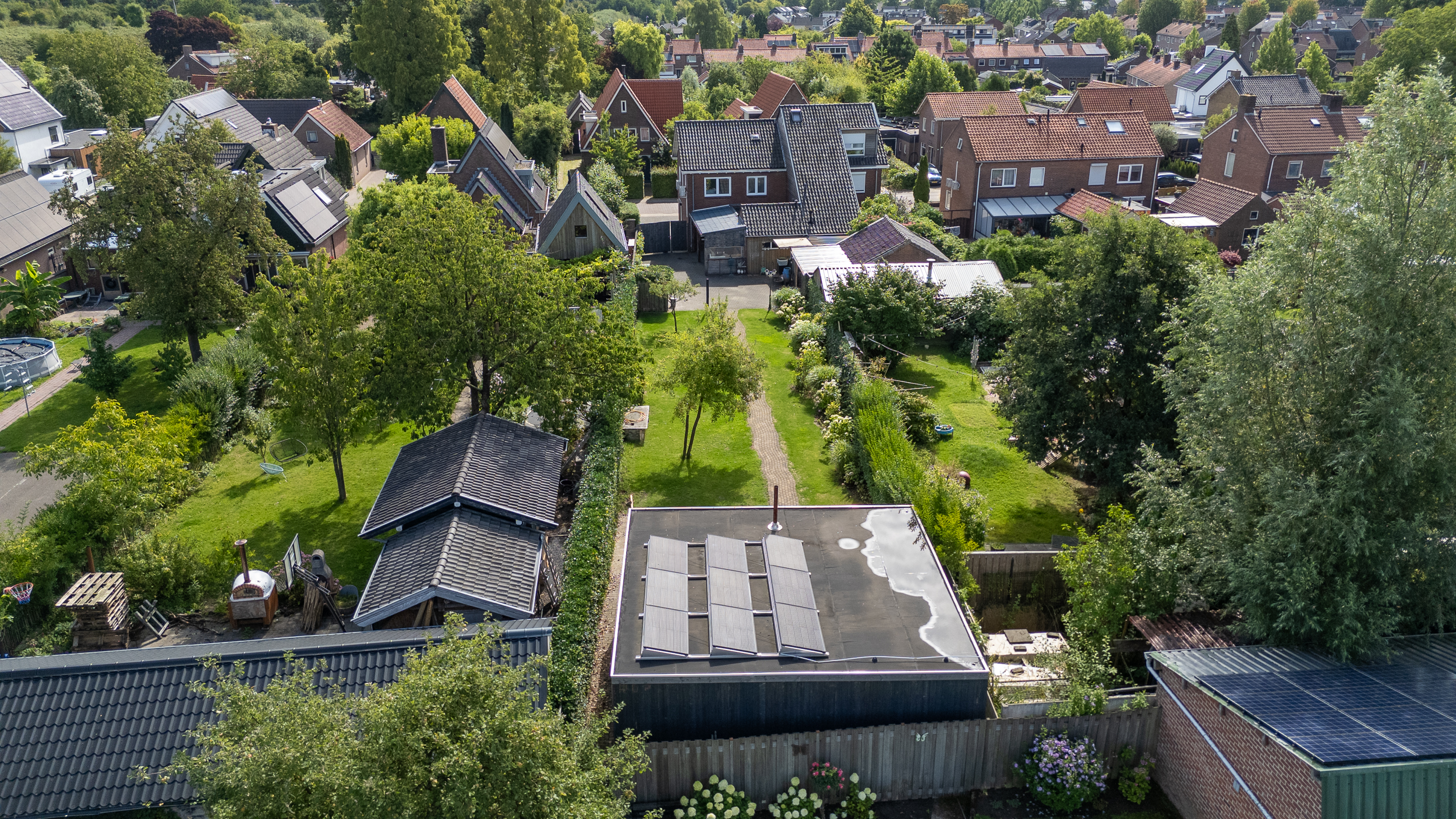 • 9 zonnepanelen op de achtertuinoverkapping