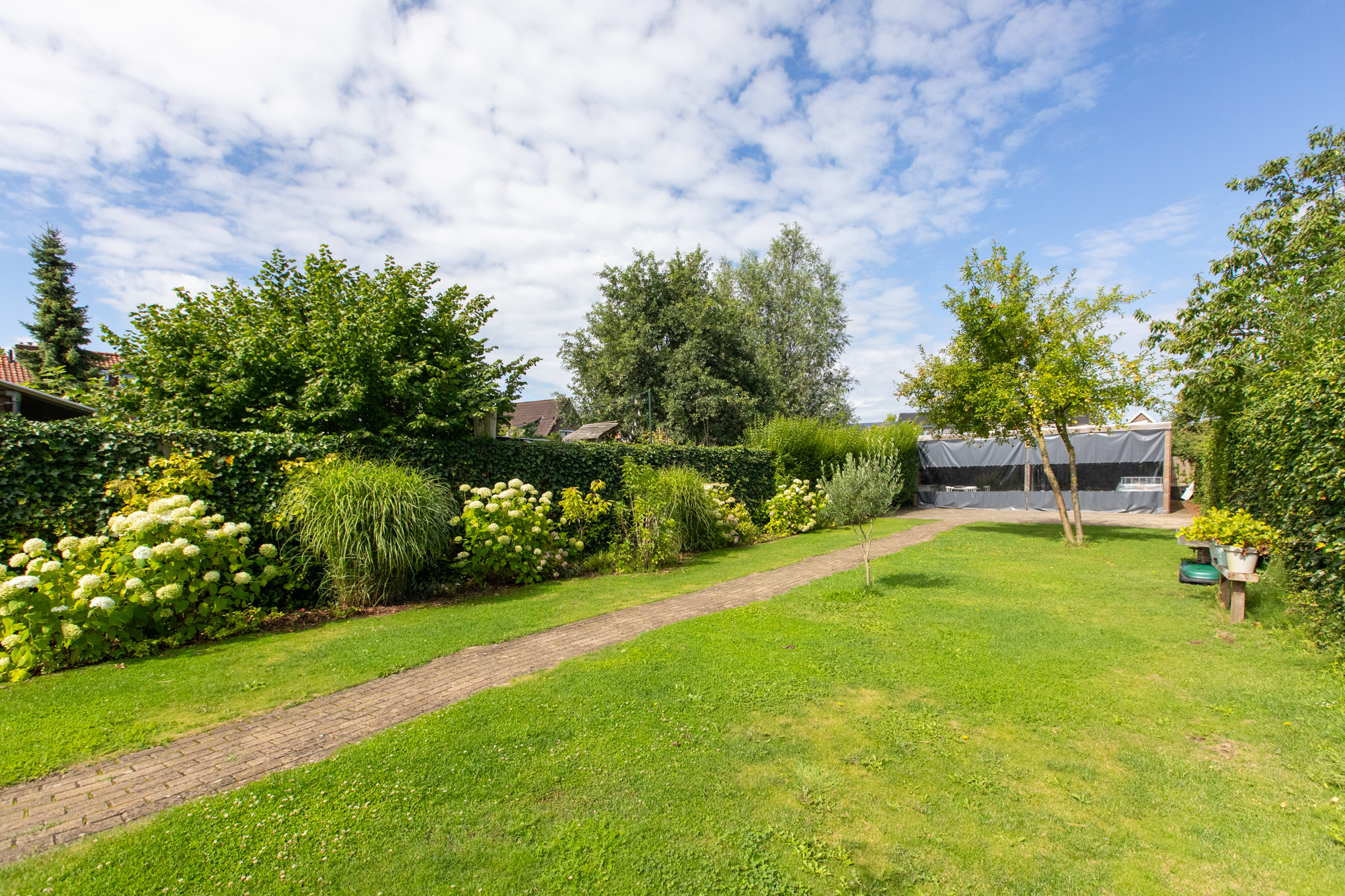 - Achtertuin 414 m2 (45 meter diep en 9.2 meter breed)