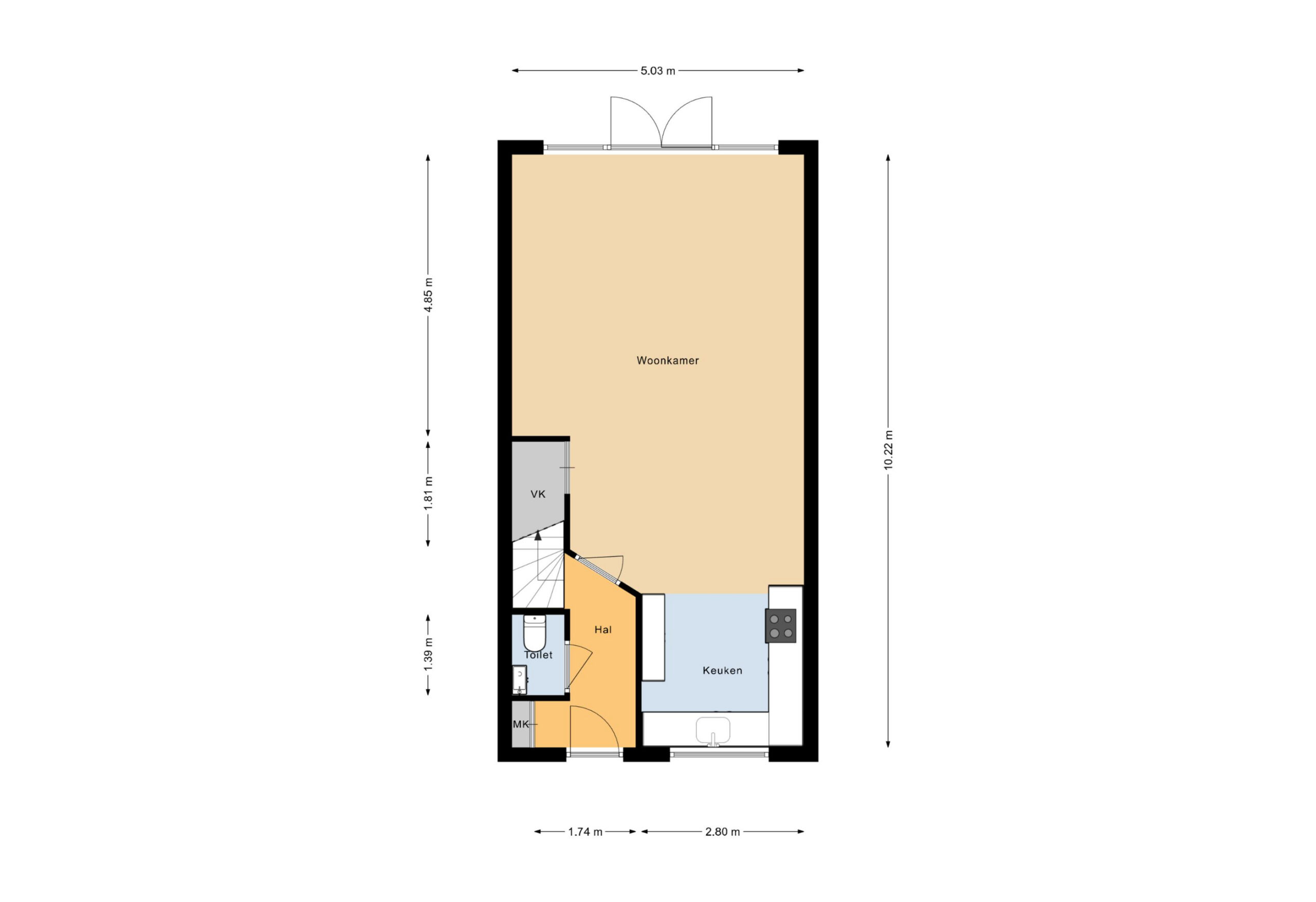 • Achtertuin 86 m2 (16 meter diep en 5.4 meter breed)