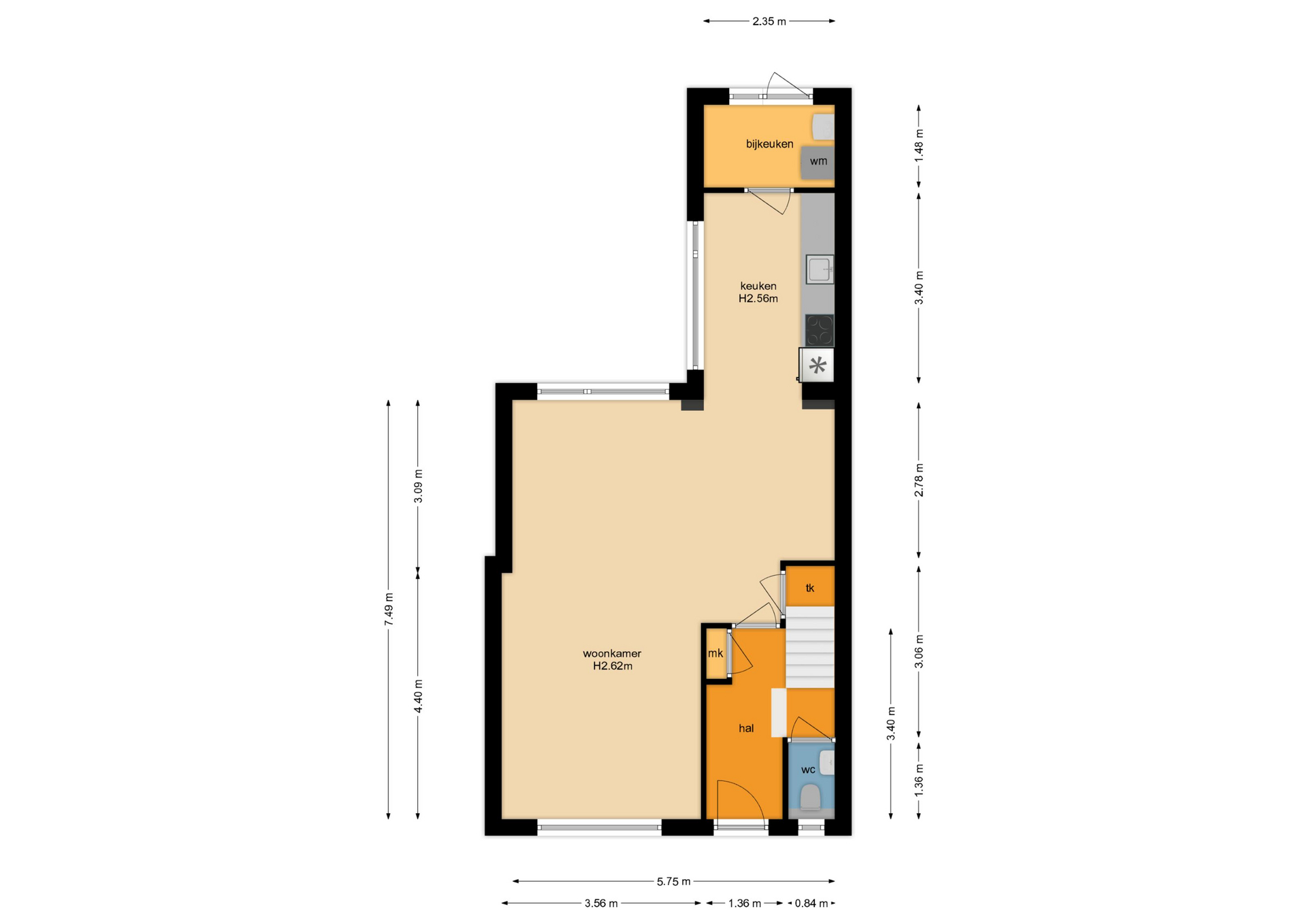 • Achtertuin 78 m2 (13 meter diep en 6 meter breed)