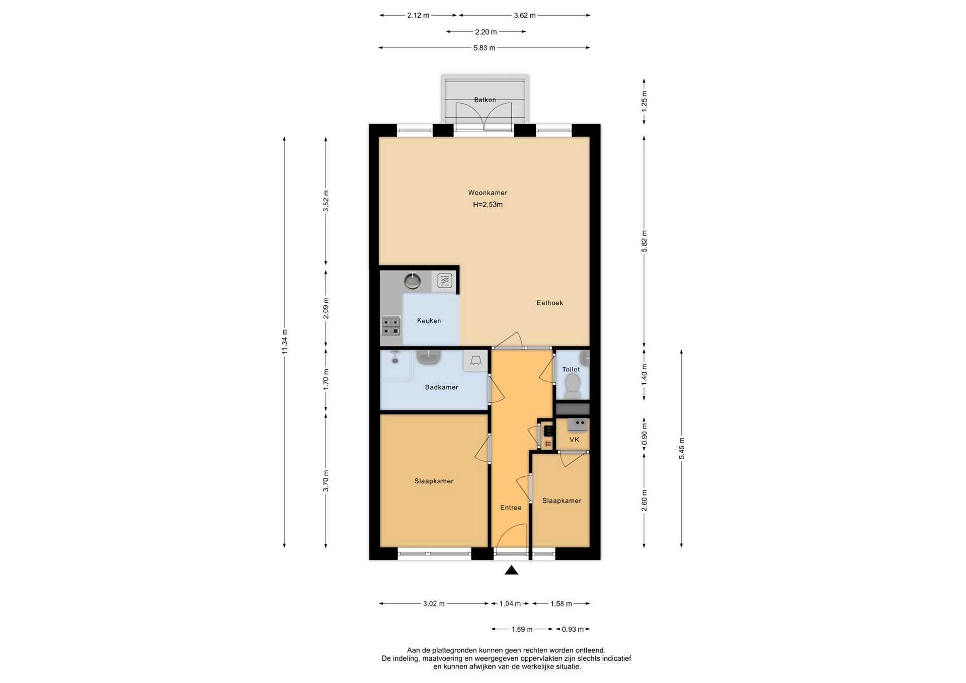 - Totaal kamers 3 kamers (2 slaapkamers)