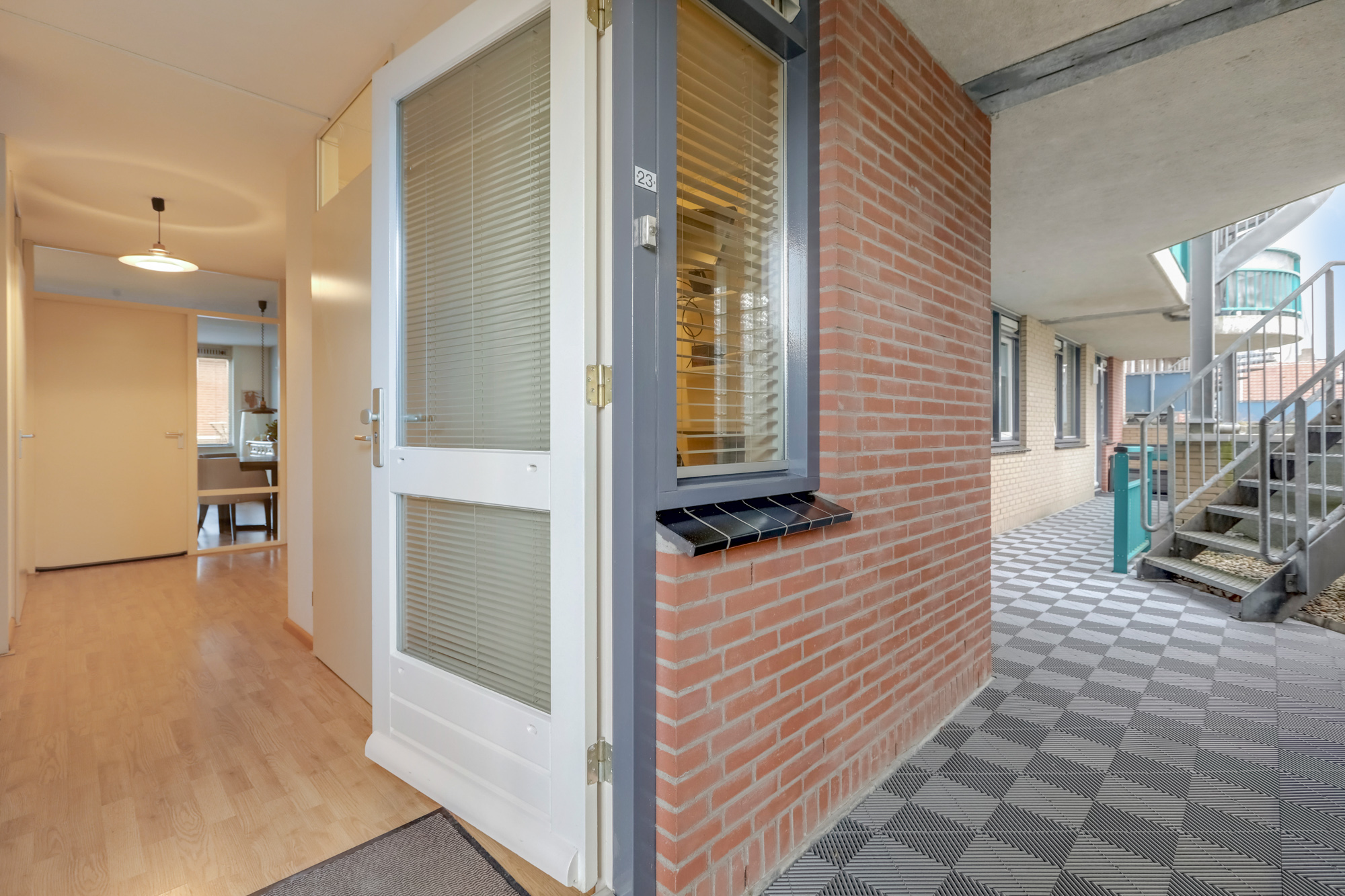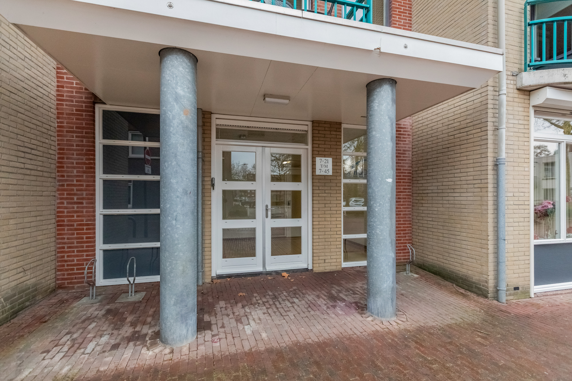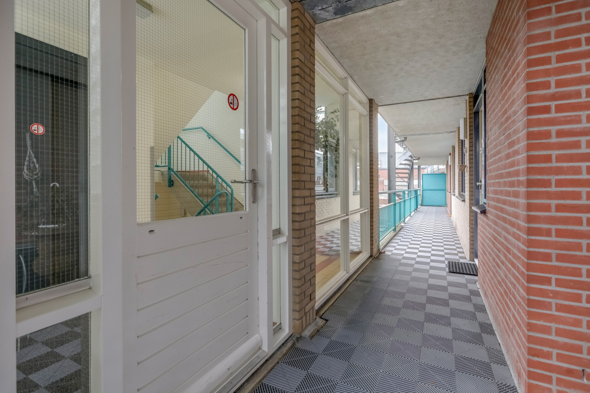 Afgesloten centrale entree met brievenbussen, video-intercominstallatie, lift, trappenhuis en toegang tot de bergingen.